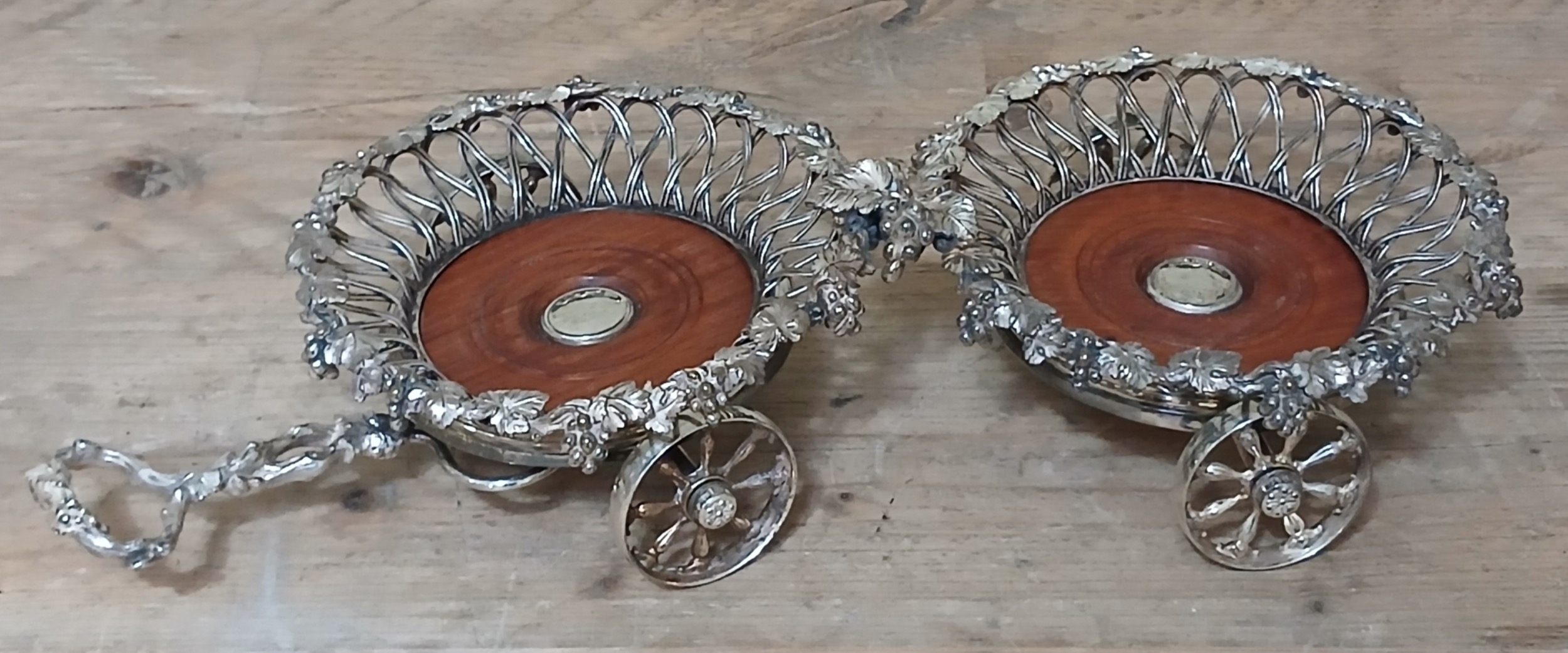 A mid 19th century silver plated wine carriage, Elkington & Co, Sheffield 1859, length 48cm.