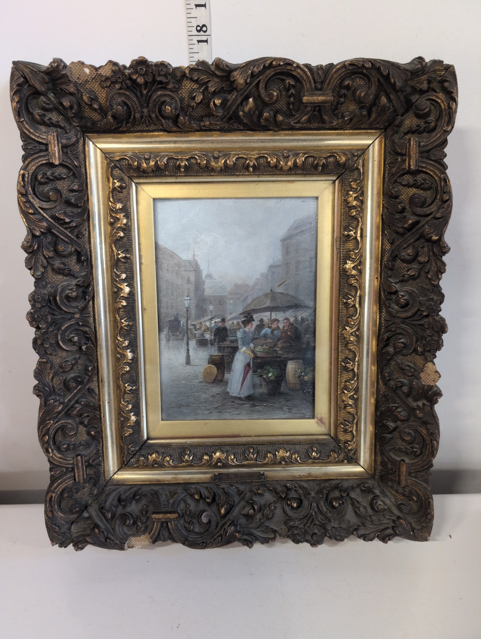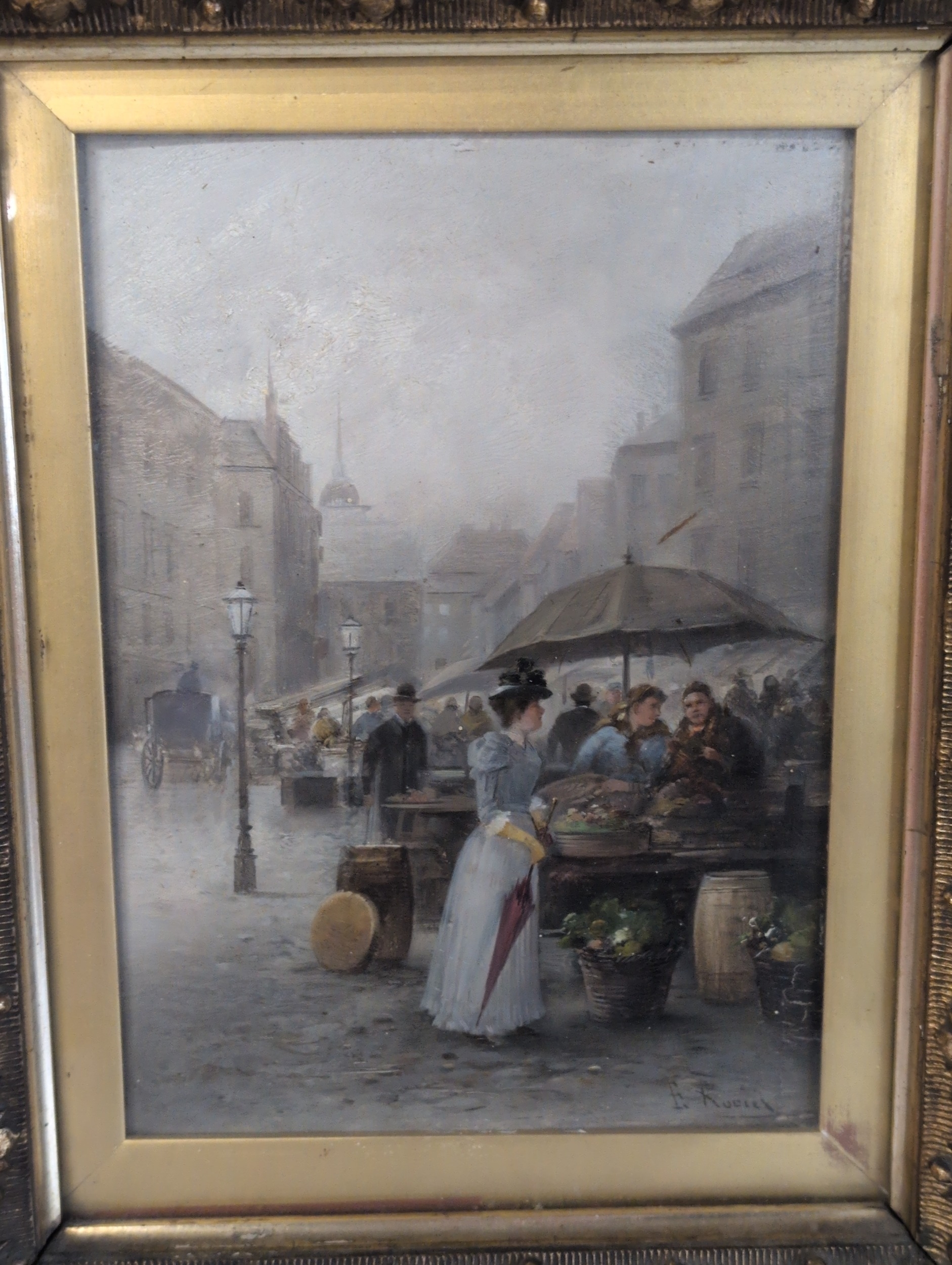 Emile Rovier 19th Century, European Market Scene Signed Lower Right with Indistinct Title Verso