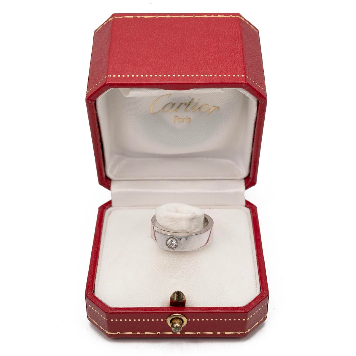 Cartier, an 18ct white gold and diamond ring, the brilliant cut diamond measuring approx. 0.07ct, engraved AR9110 52, with Swiss gold hallmarks signed Cartier 750, in original red leather box, size K, 11.7 grams.