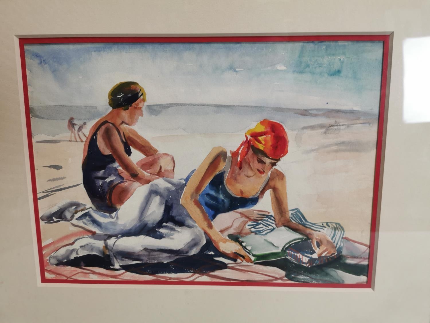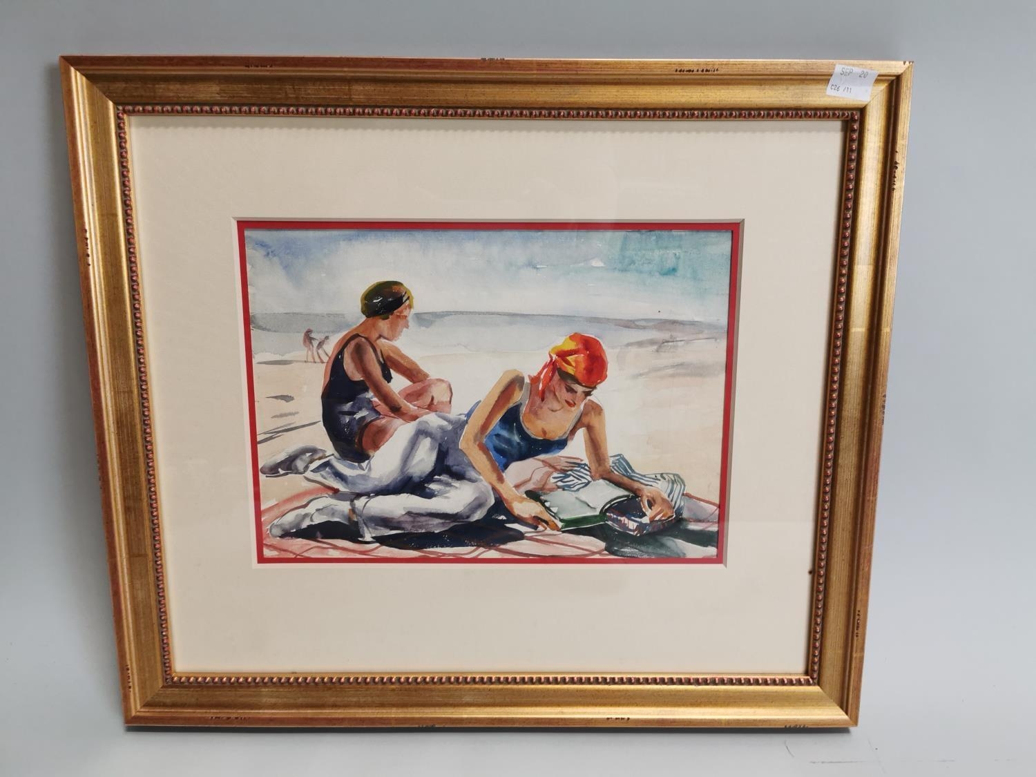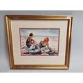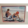 Framed watercolour of a Seaside Scene. {50 cm H x 57 cm W}.