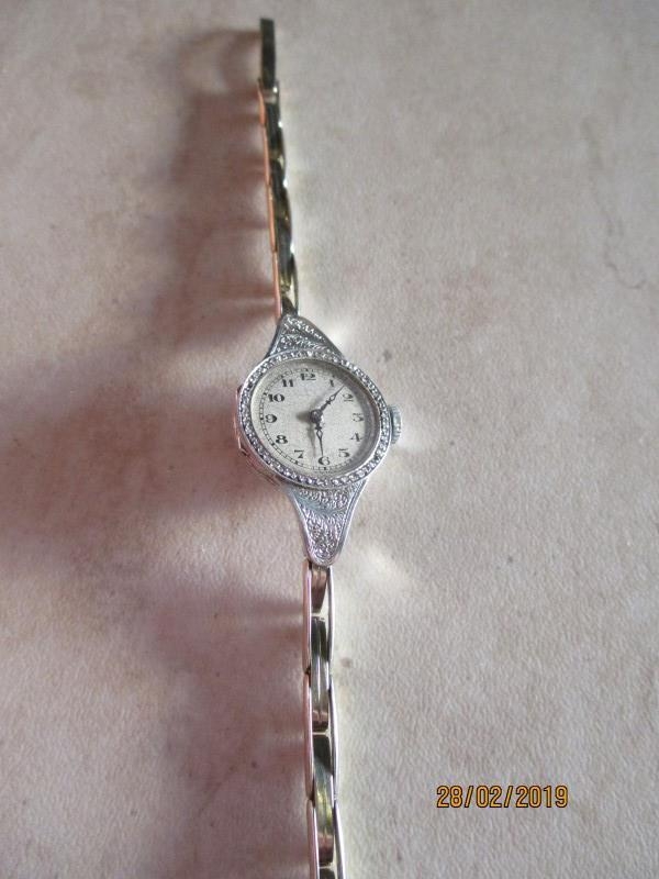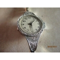 Vintage White Metal Ladies Cocktail Watch - Not Running (Some Stones Missing)