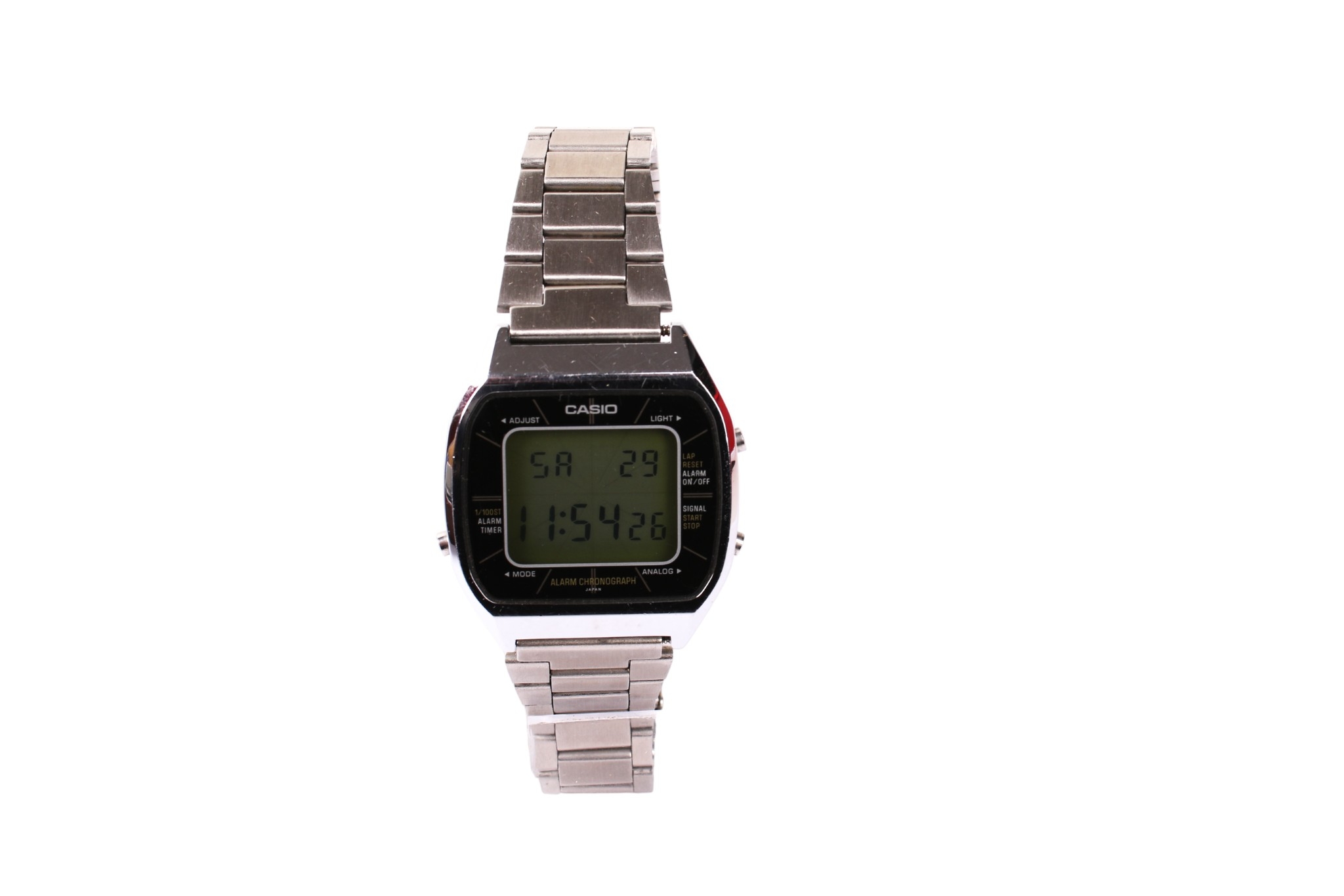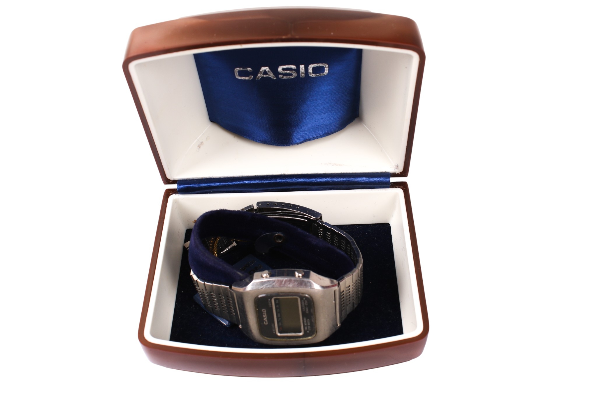 Two Casio stainless steel digital wristwatches. Comprising a 103/A201 'Blue Thunder' (no LCD bleed), and a Casiotron S-15 with original papers and box.