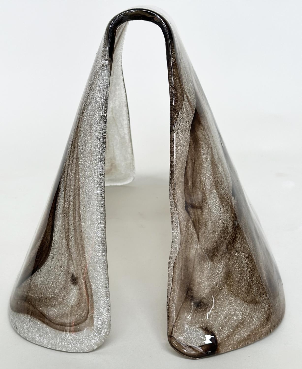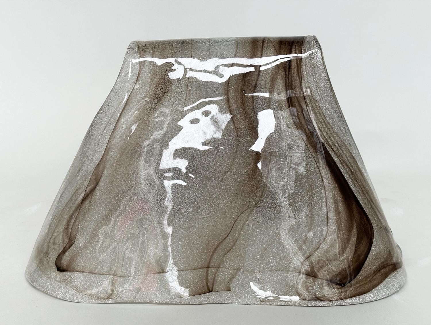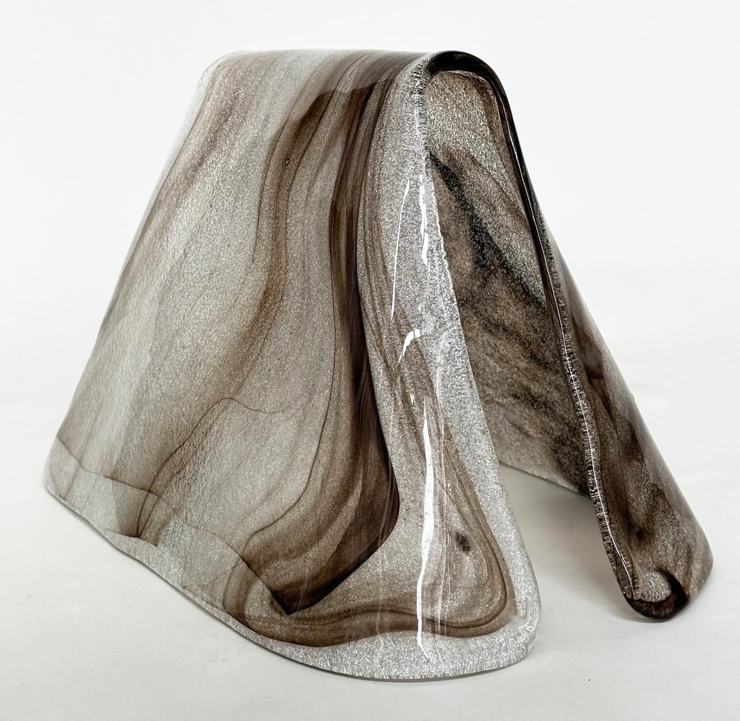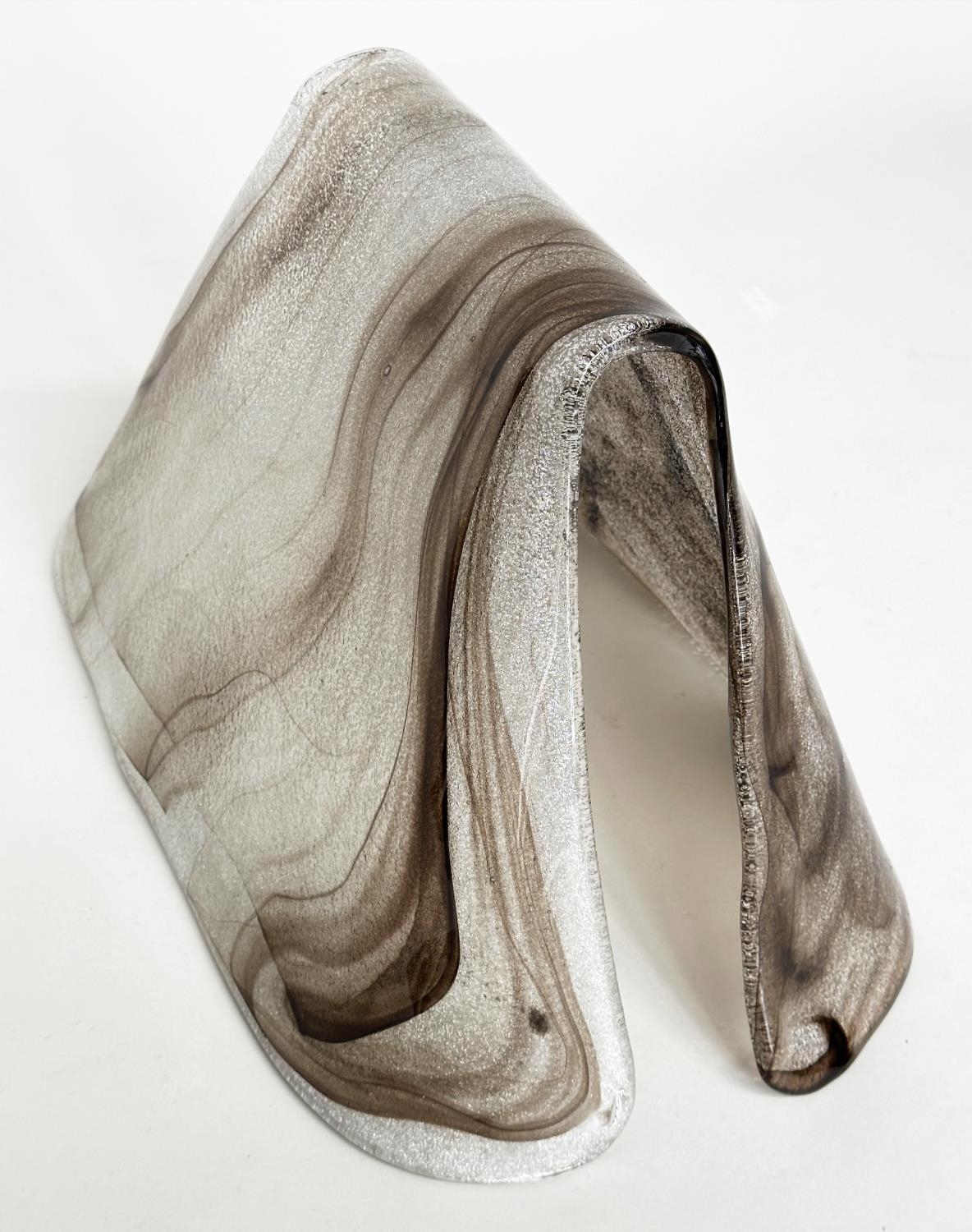 MURANO GLASS COVER, shaped cover in brown striated glass, 50cm W x 30cm H.