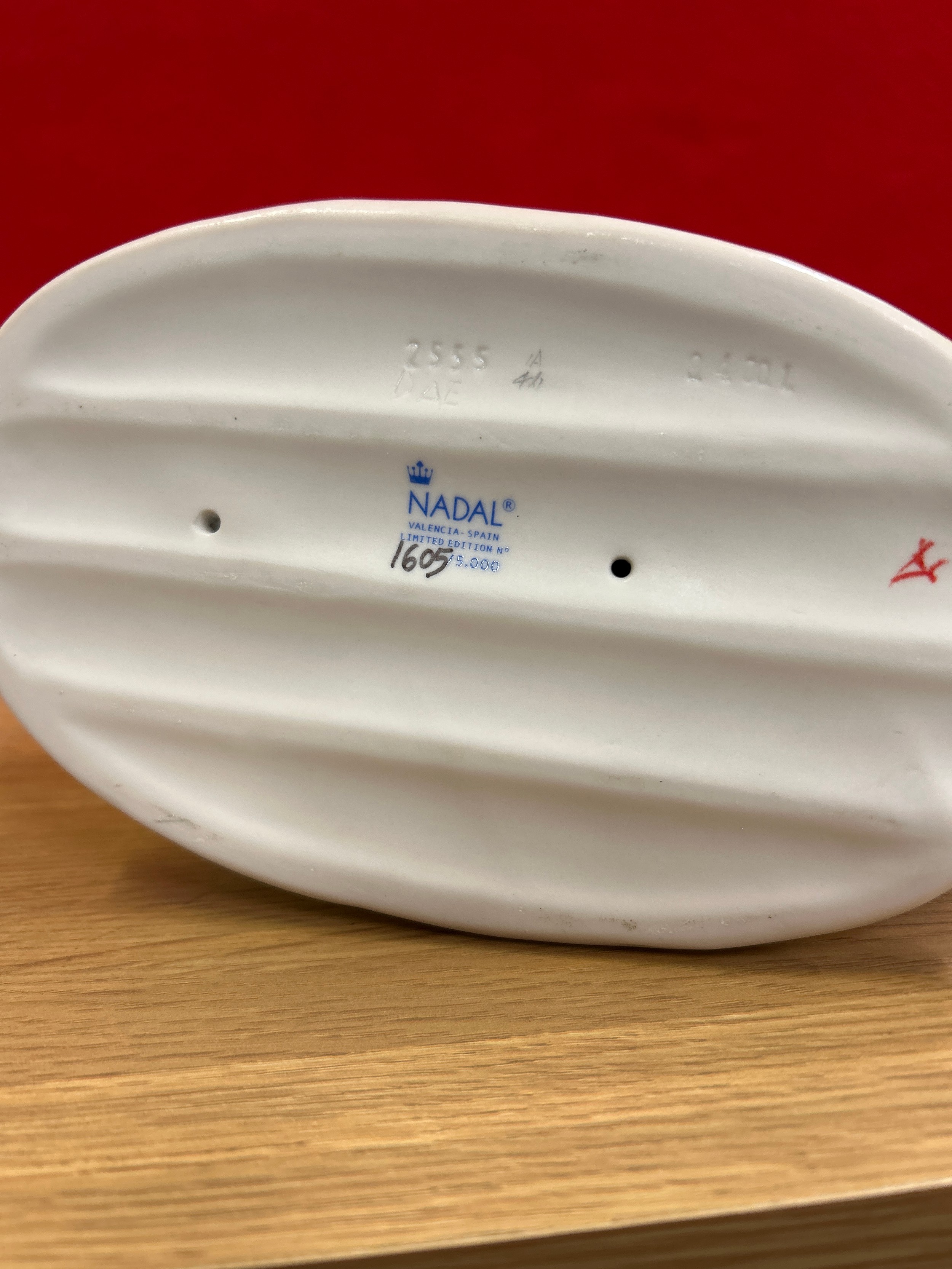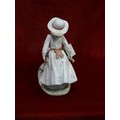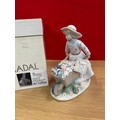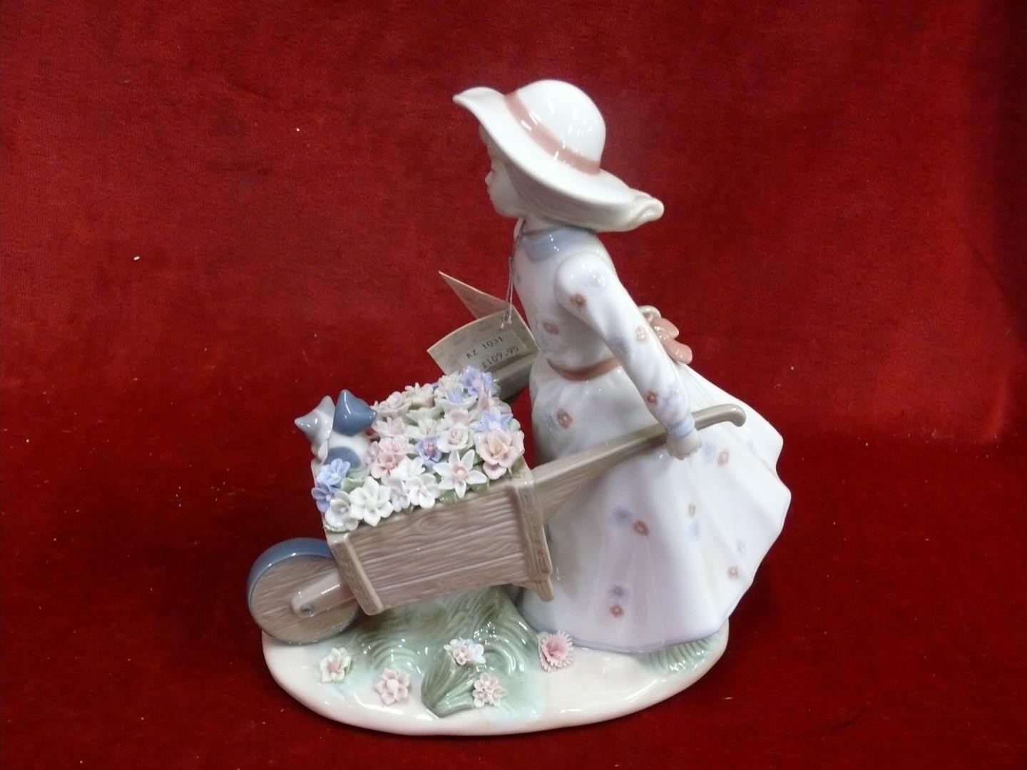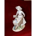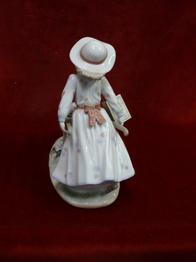 Nadal Spanish porcelain figurine of a girl pushing a wheelbarrow, new with box and packaging