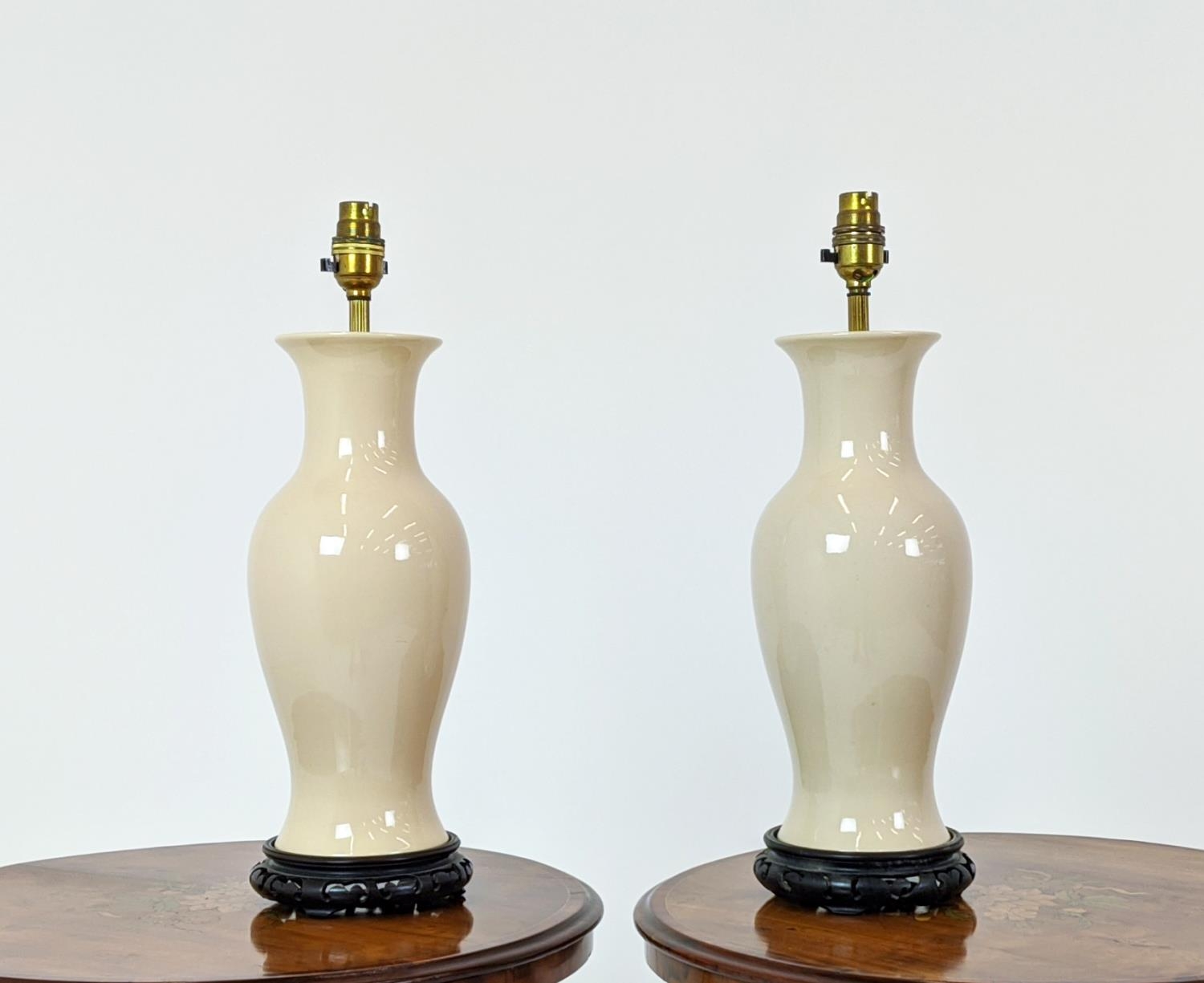 TABLE LAMPS, a pair, glazed ceramic 42.5cm H approx. (2)