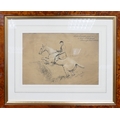 Basil Nightingale (1864-1940), framed pencil drawing, titled 'Lord Lonsdale gives us a look at Whitecap' (drawn for Land & Water), signed and dated 1895. (L: 53.5cm x H: 43.5cm)