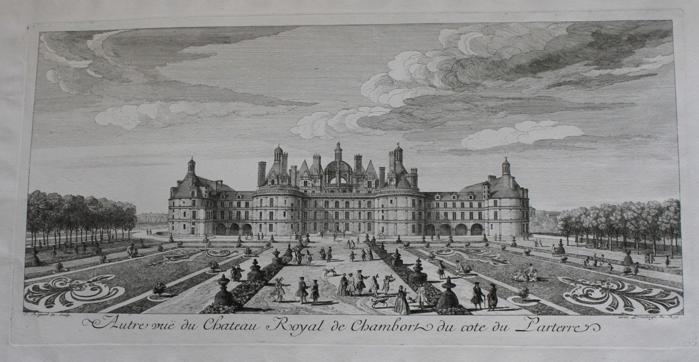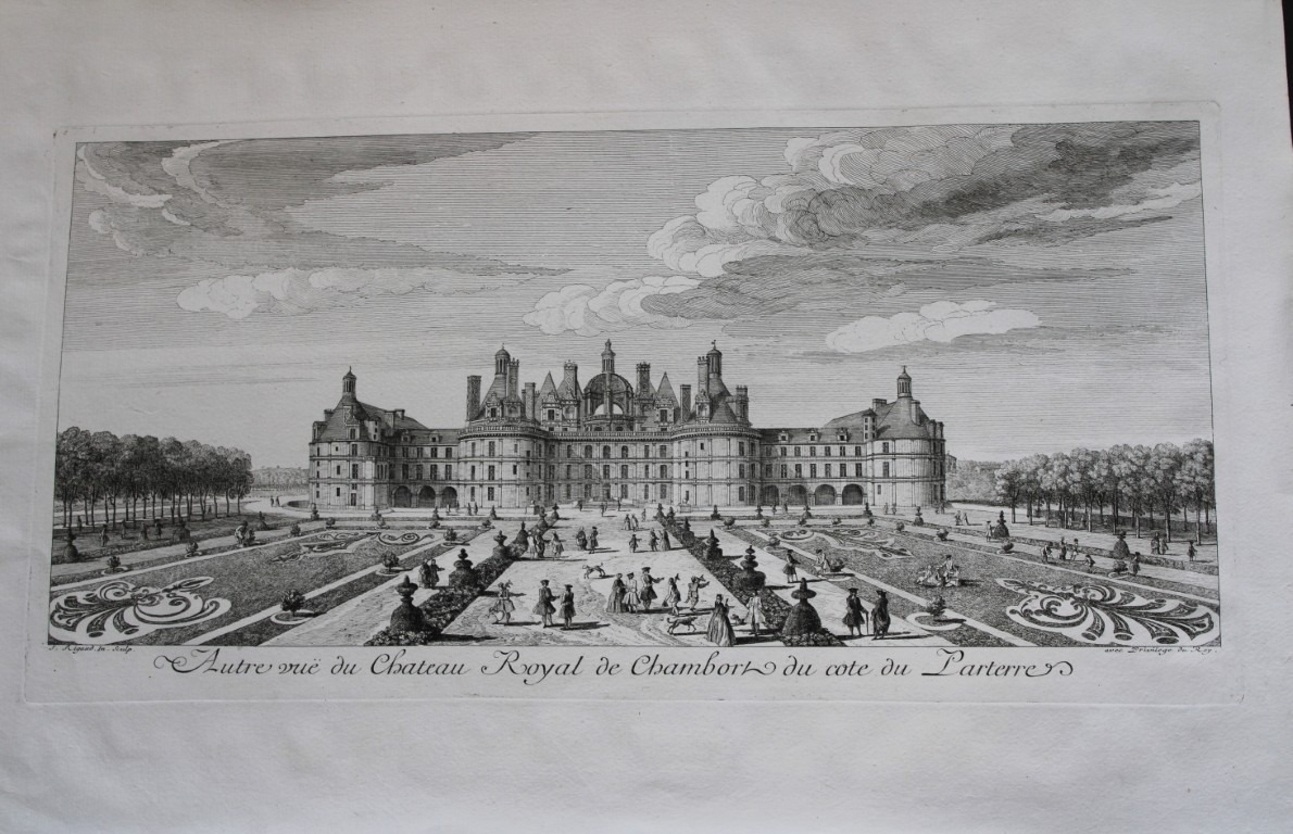 Jacques Rigaud - Chateau Royal de Chambord 1730. This beautiful engraving is from Les Maisons Royales de France by Jacques Rigaud, published in Paris1730-52.