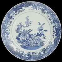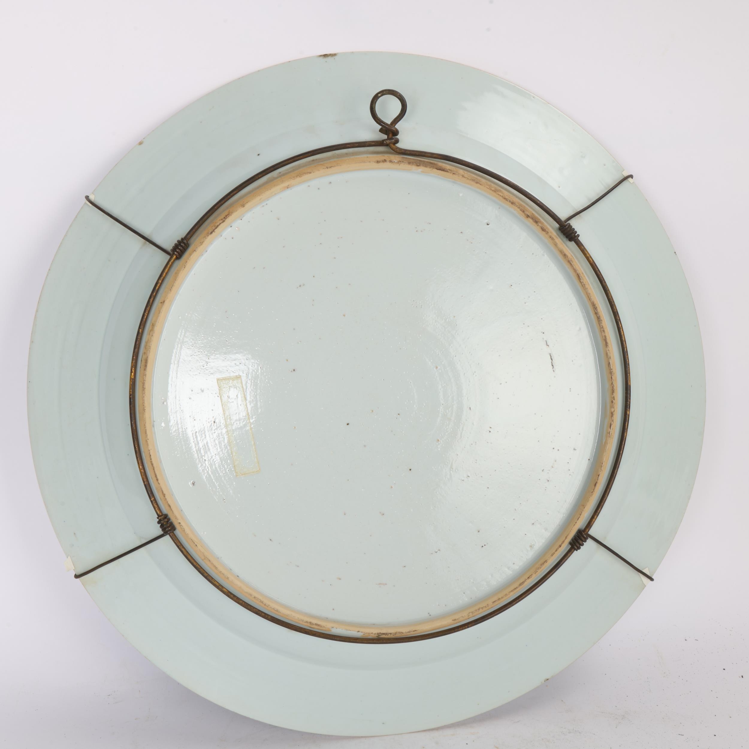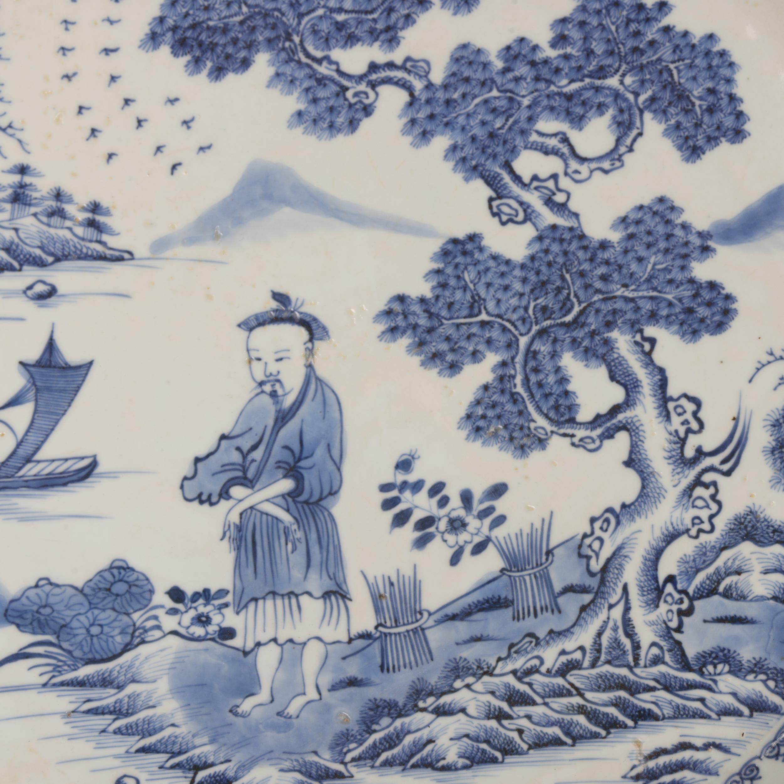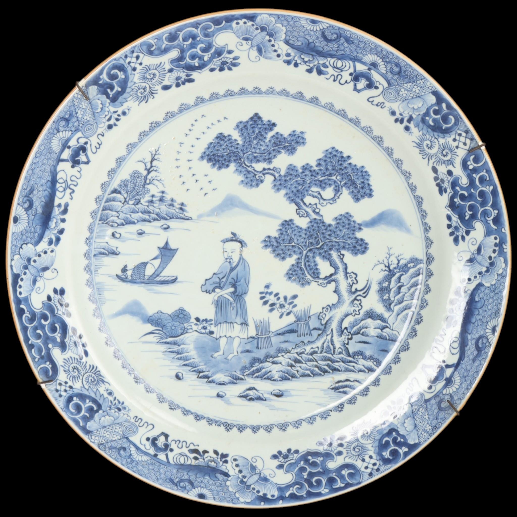 A large Chinese 18th century blue and white export porcelain charger, diameter 46cm