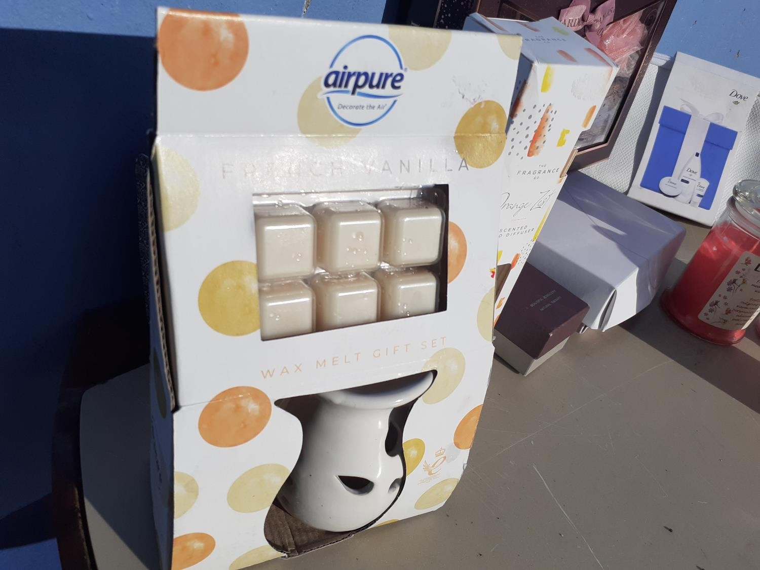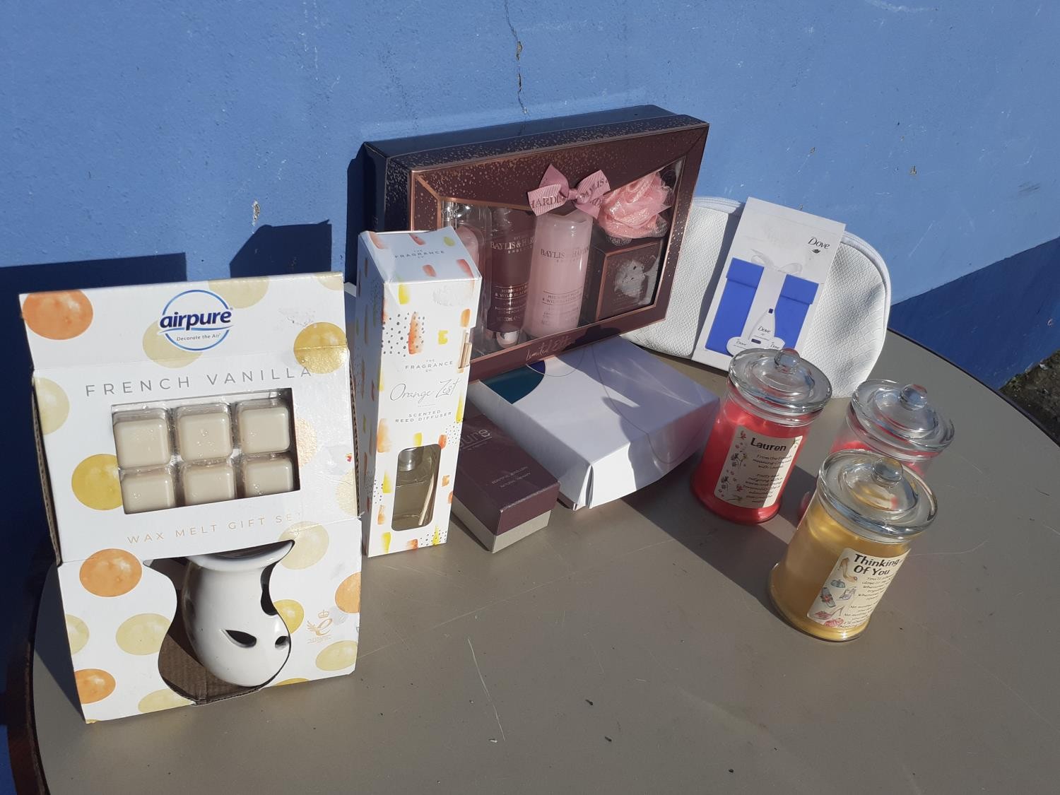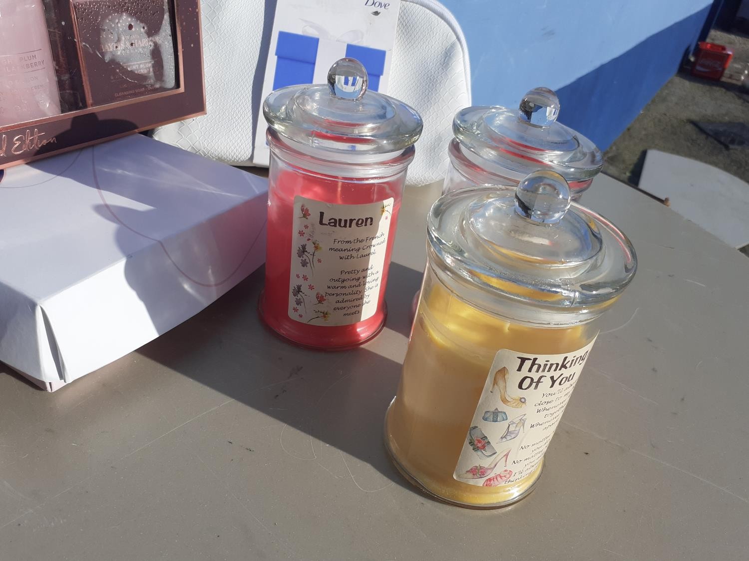 BOX OF CANDLES, SOAPS ETC