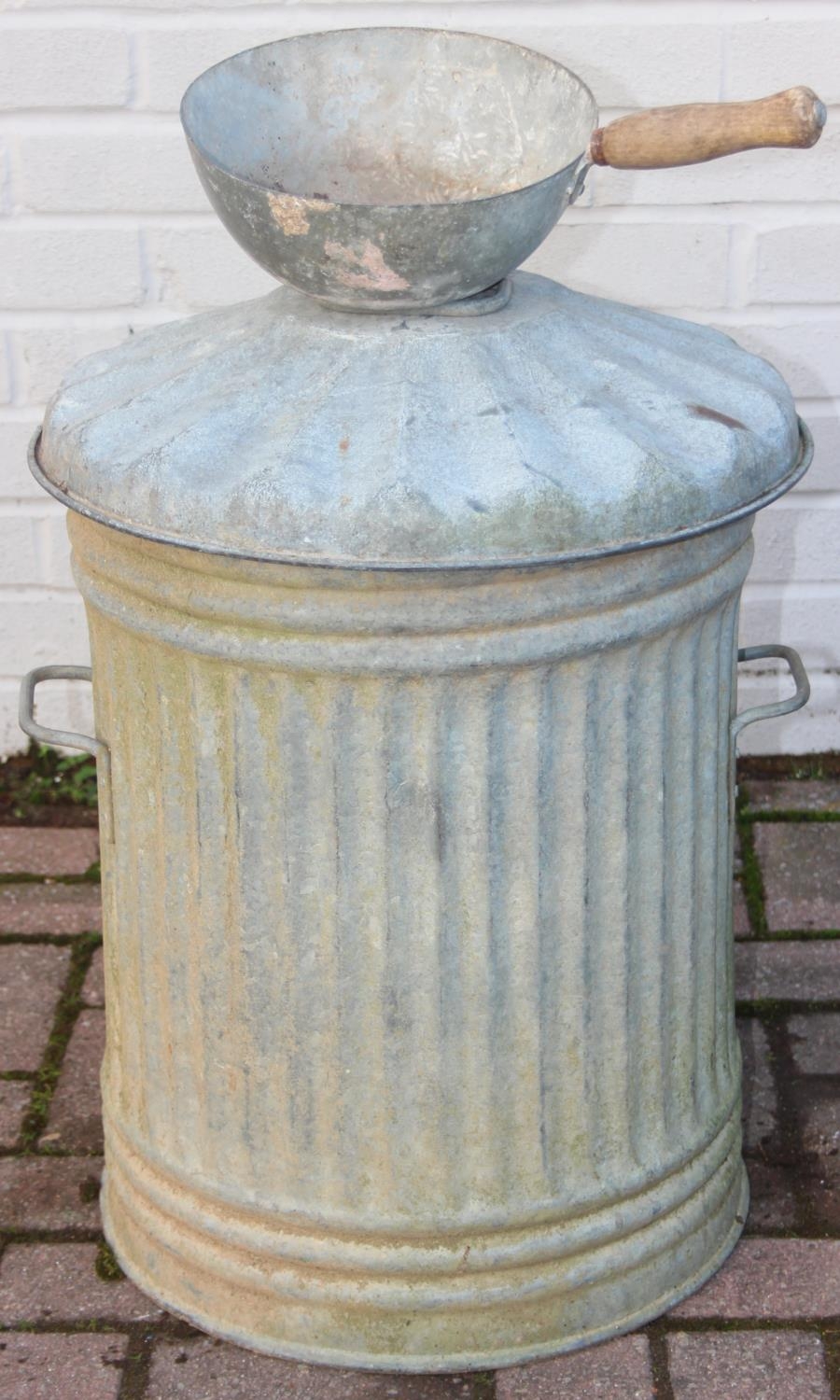 Galvanised bin with lid complete with grain scoop, ideal for animal feed storage, 40cm diameter x 52cm tall