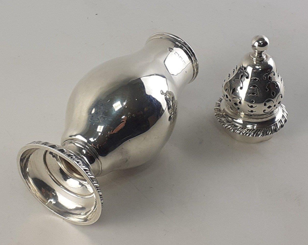 A STERLING SILVER sugar sifter. Rubbed London Hallmarks 1905. 19cm tall and weighs 180g approx
