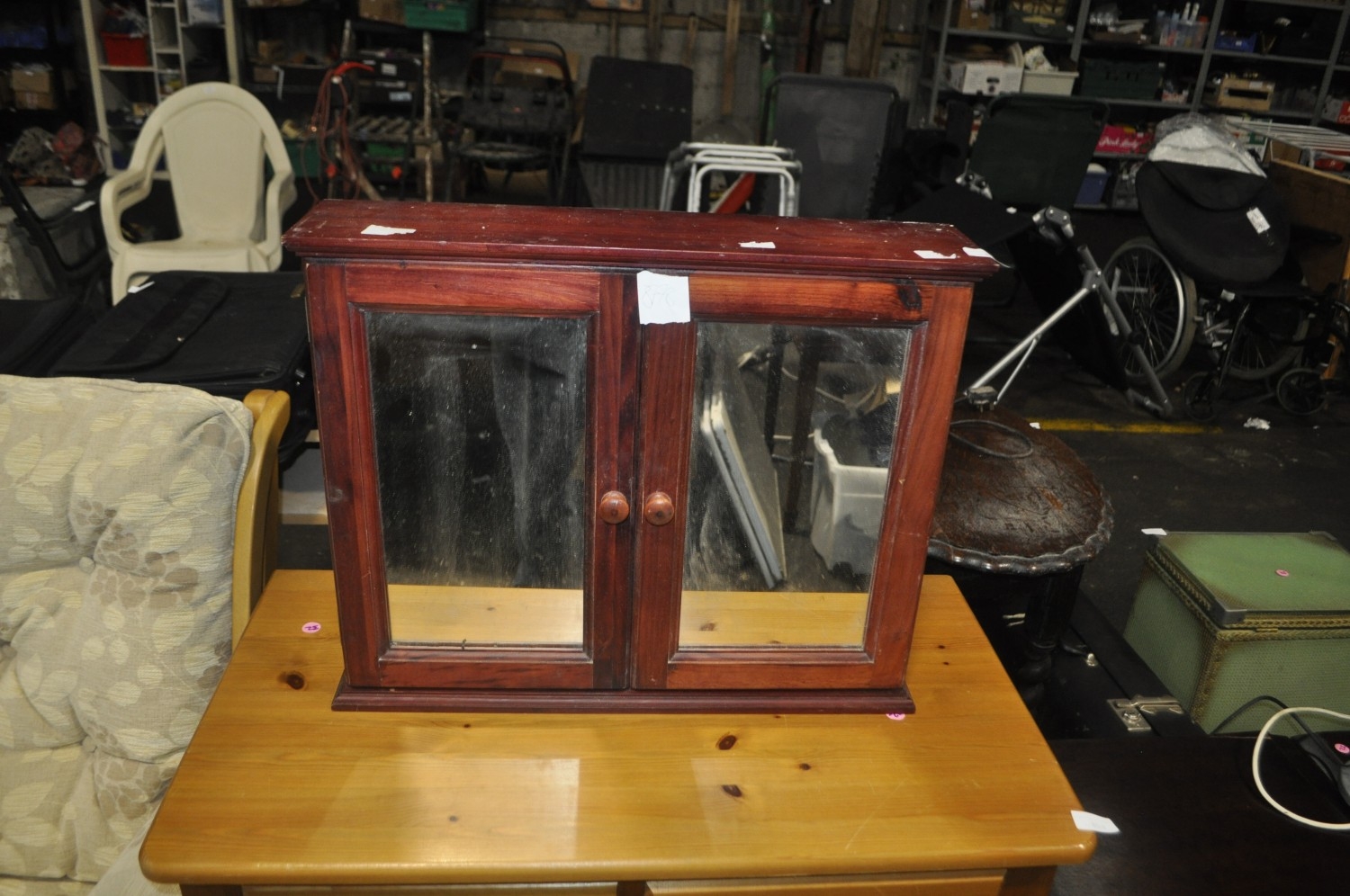 A MODERN STAINED PINE TWO DOOR MEDICINE CABINET