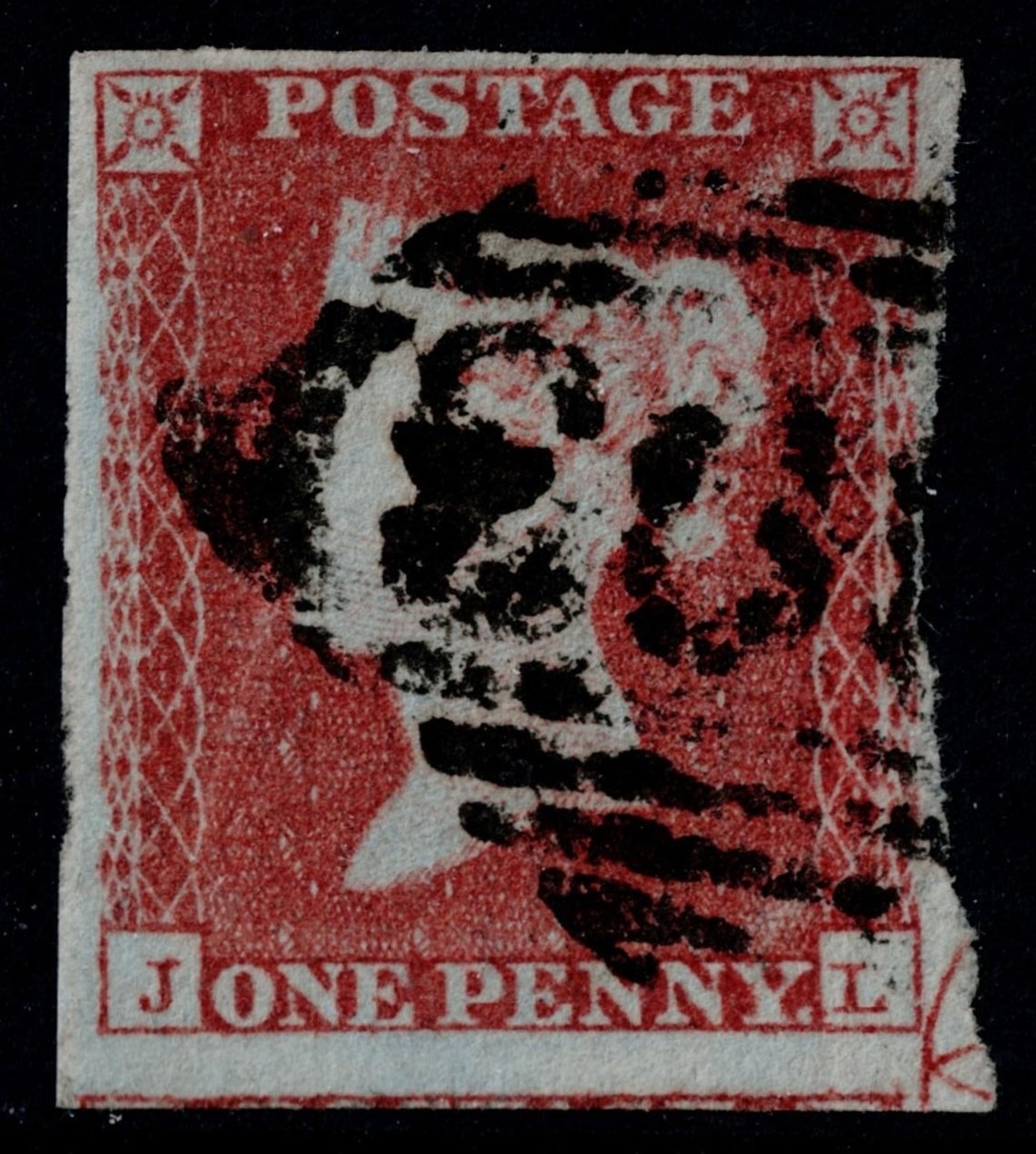 GB 1841 1d red plate 118 JL fu 4 margins part MARGINAL ORNAMENT and MISSING IMPRIMATUR sg8