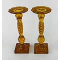 A pair of 19th century amber coloured glass candlesticks, wi...