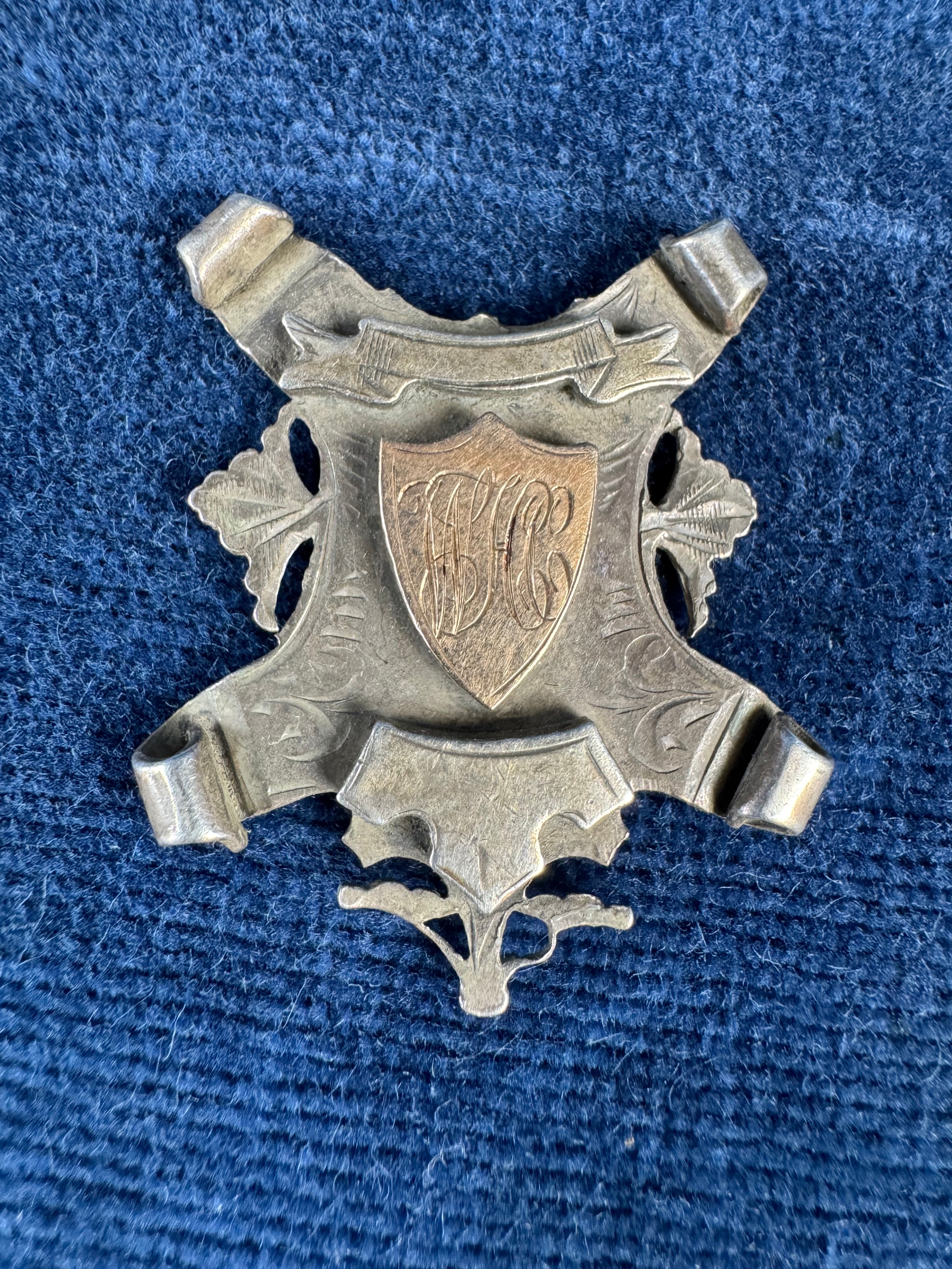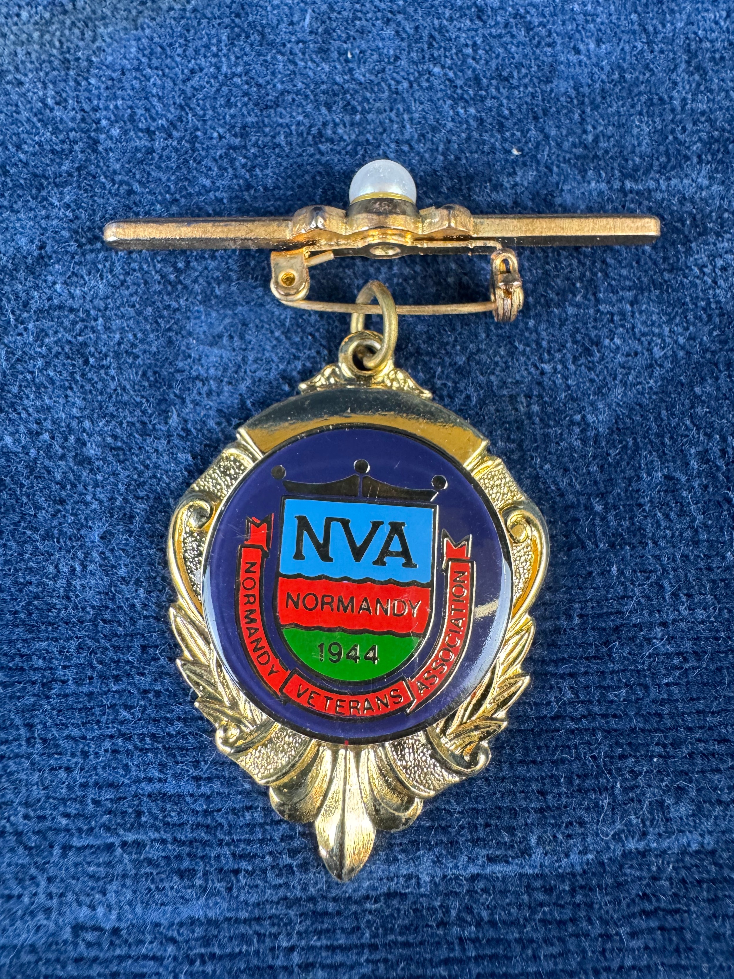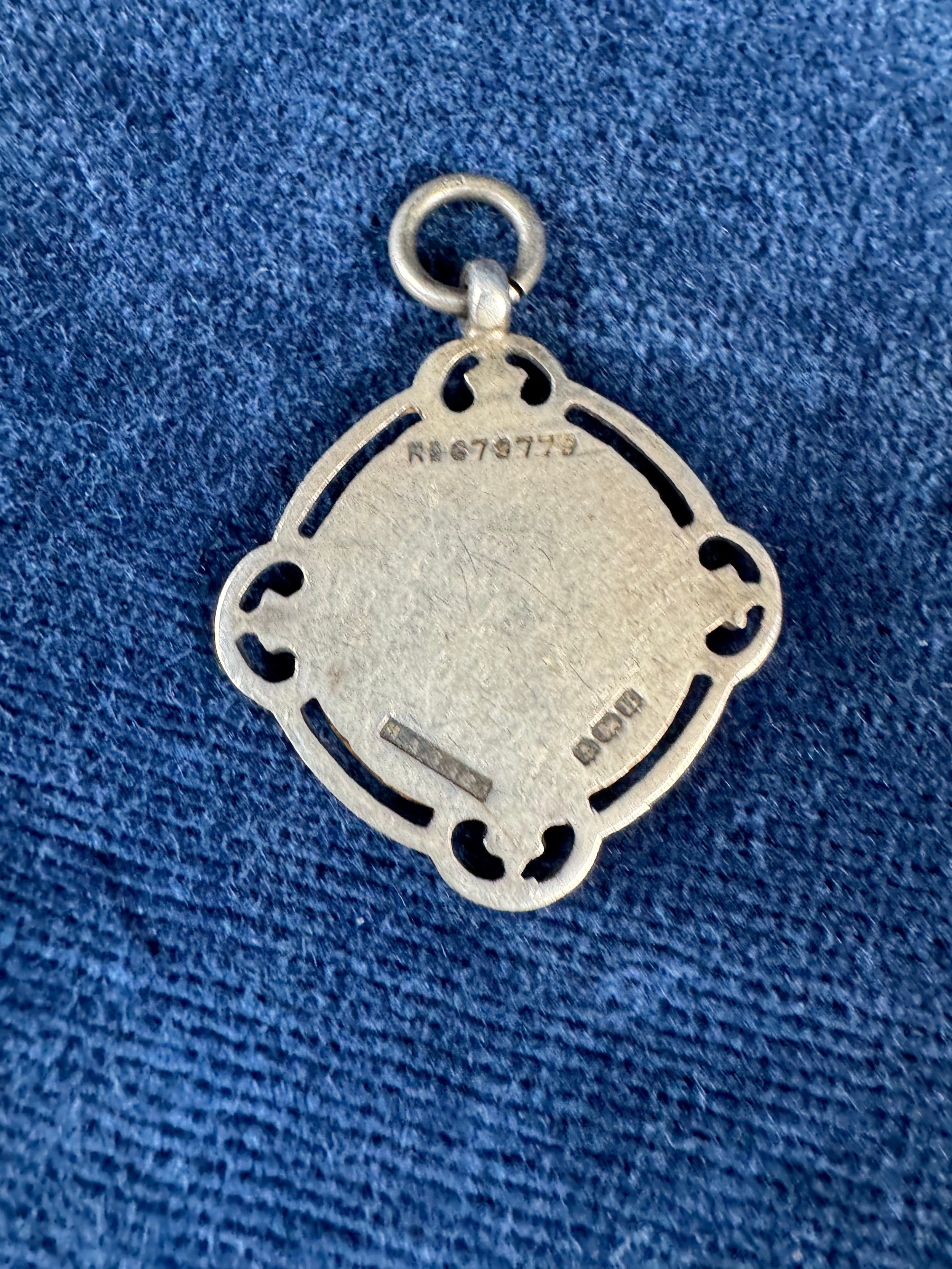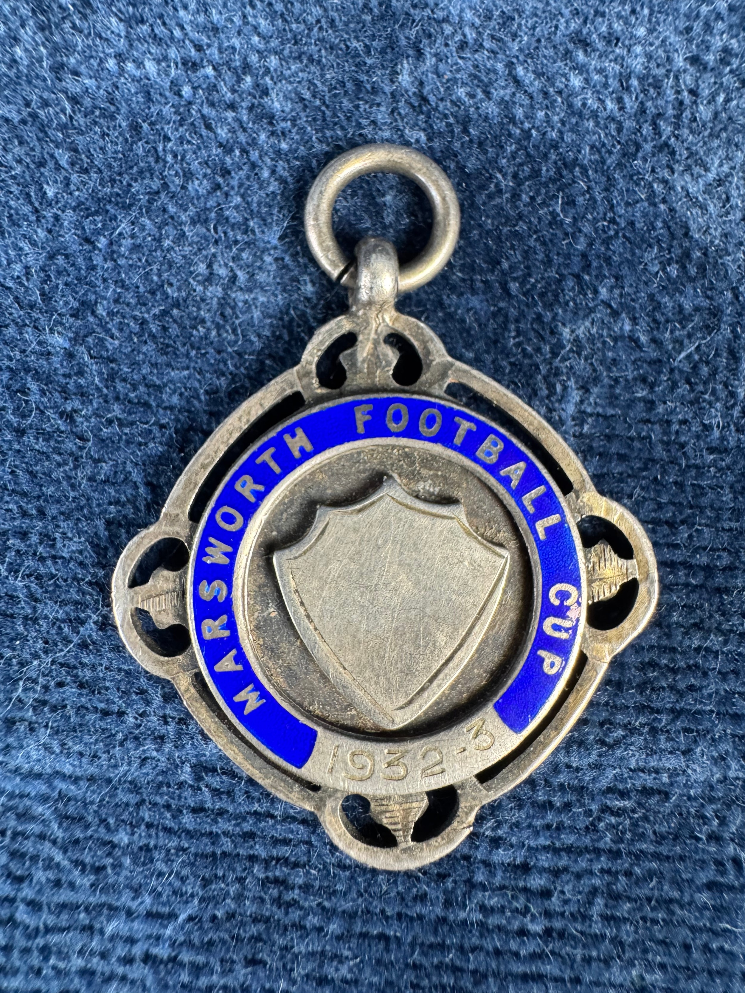 A vintage white metal medallion St George's FC 1904-1905, a hallmarked silver fob medallion 'Marsworth Football Cup 1932-1933', and a Normandy Veterans Association badge and bar clip.