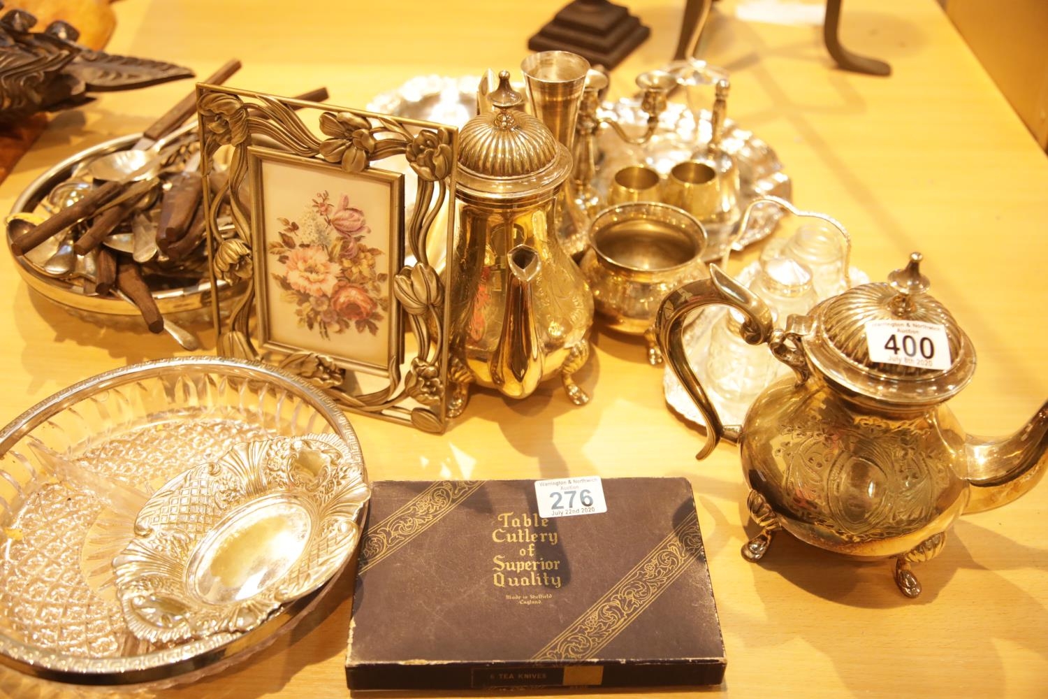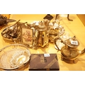 Collection of silver plate including trays and teapots. This lot is not available for in-house P&P
