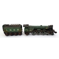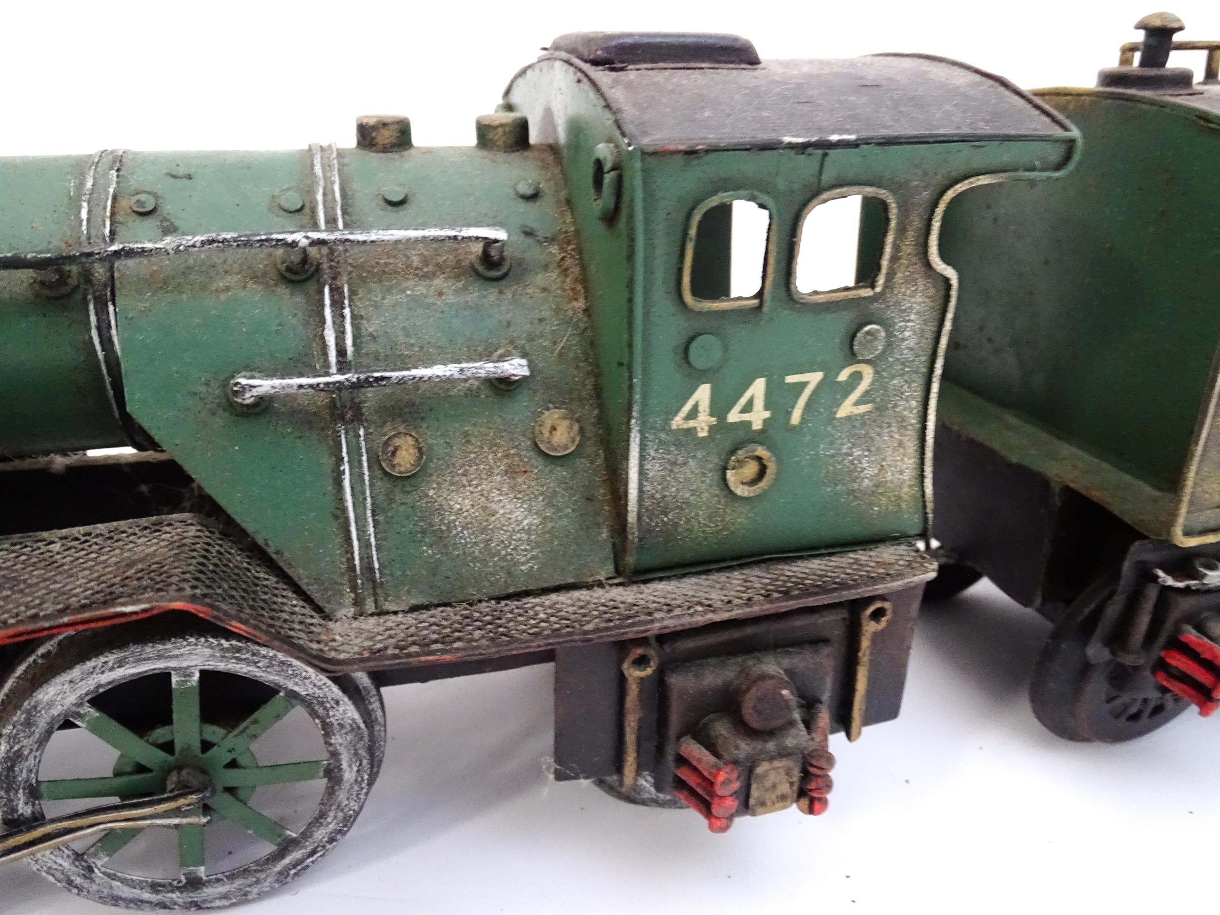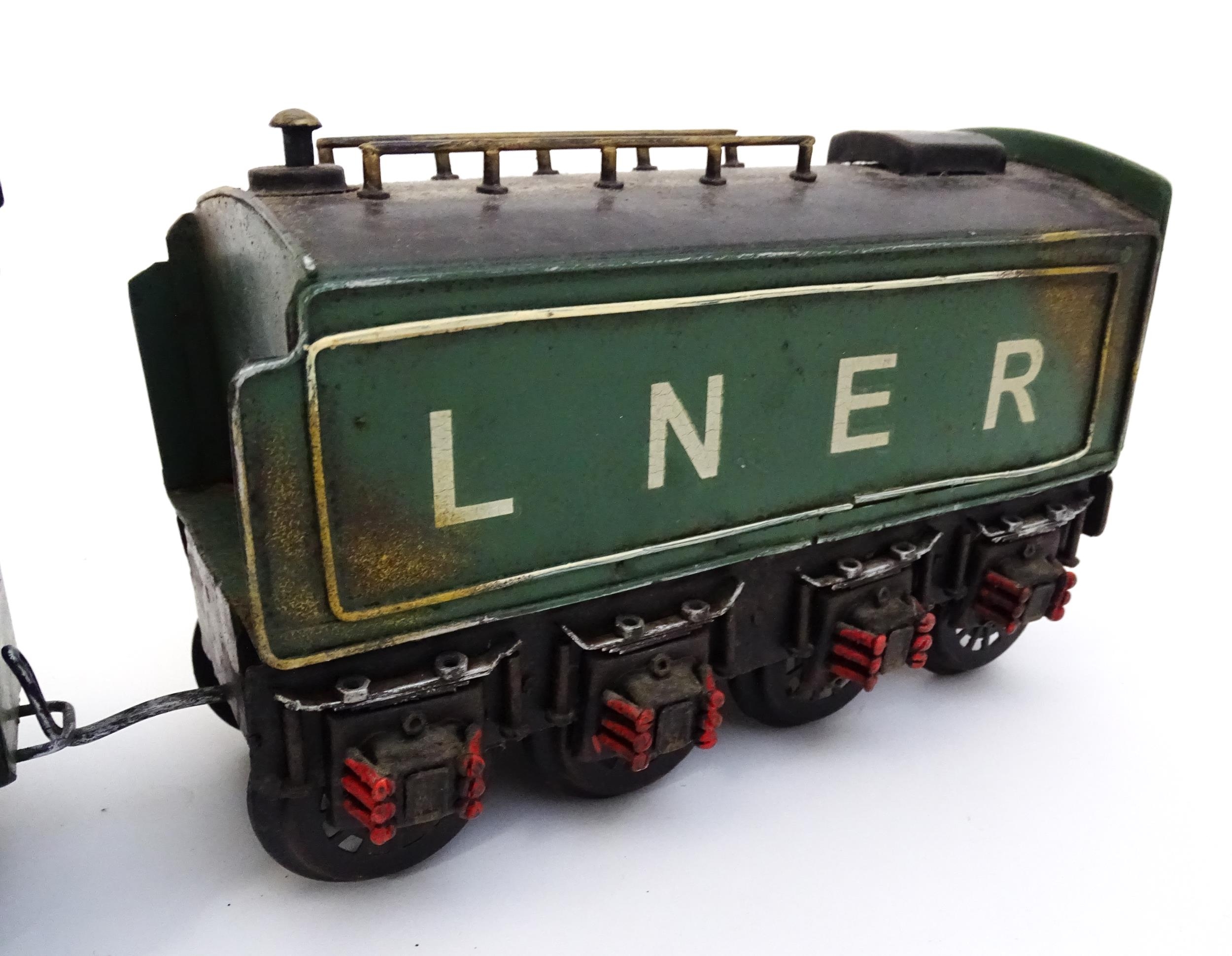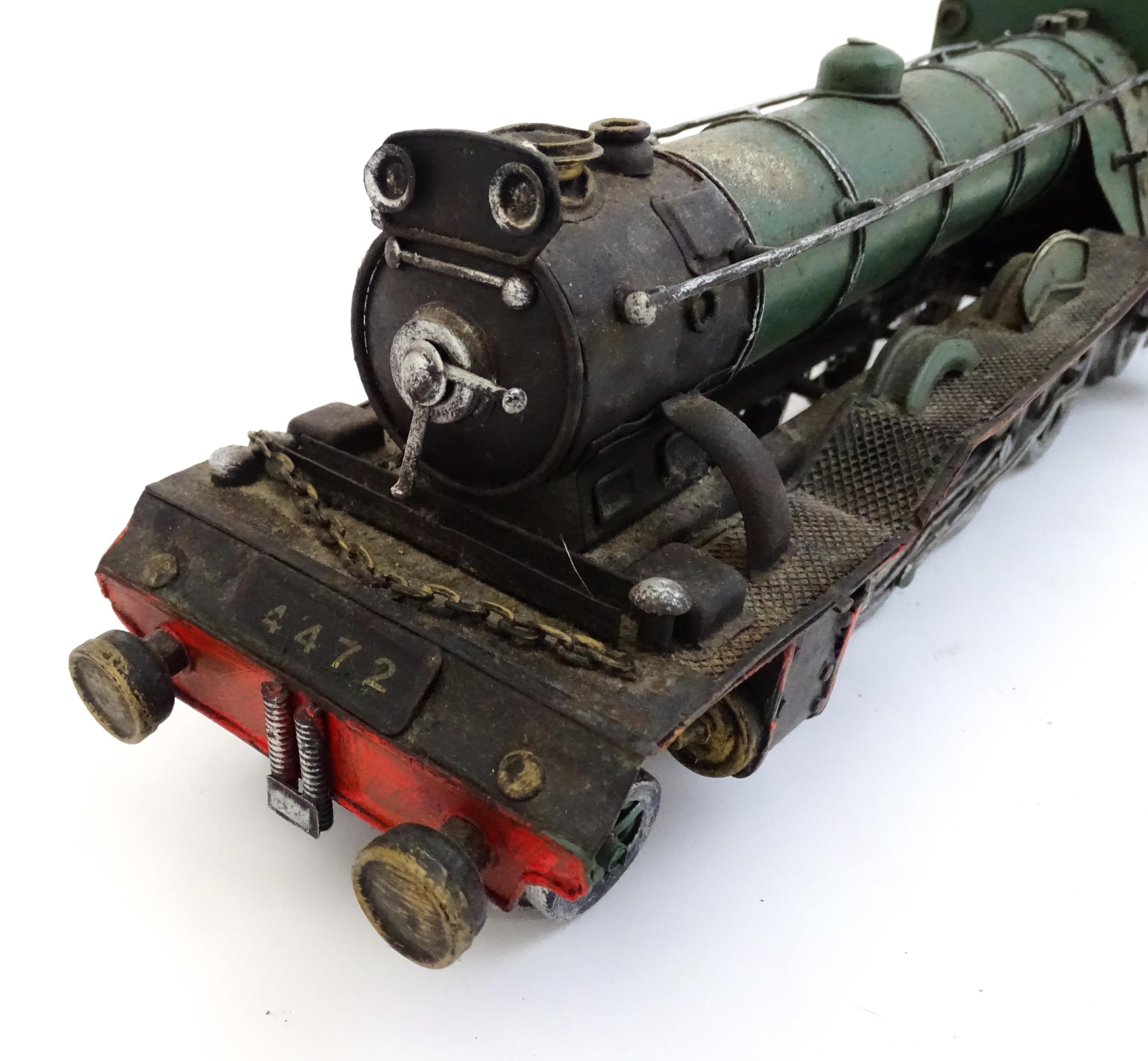 Toy: A cast model of the Flying Scotsman train, no. 4472, and LNER tender. Approx. 5 1/2" high x 25 3/4" long (overall)