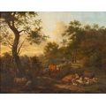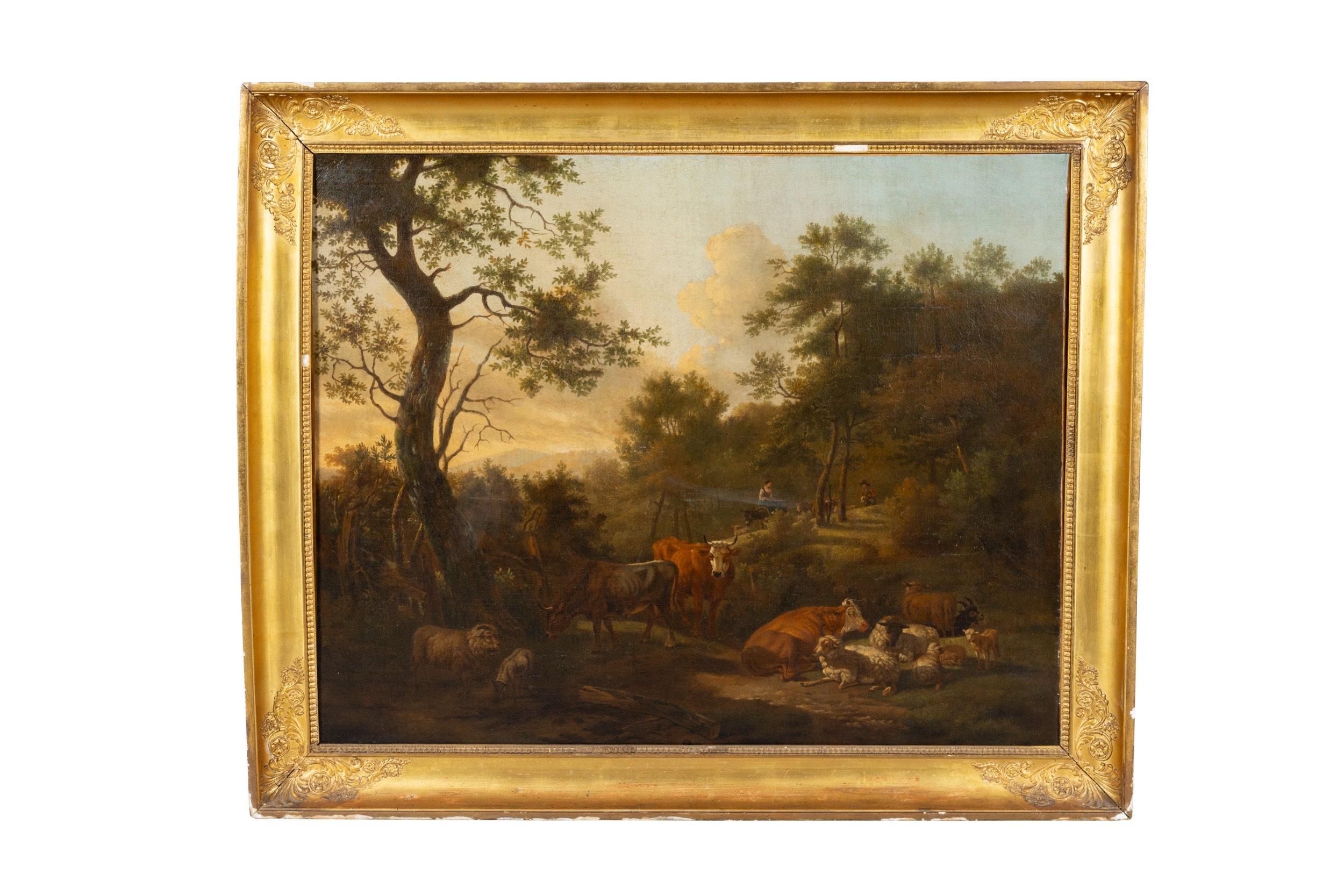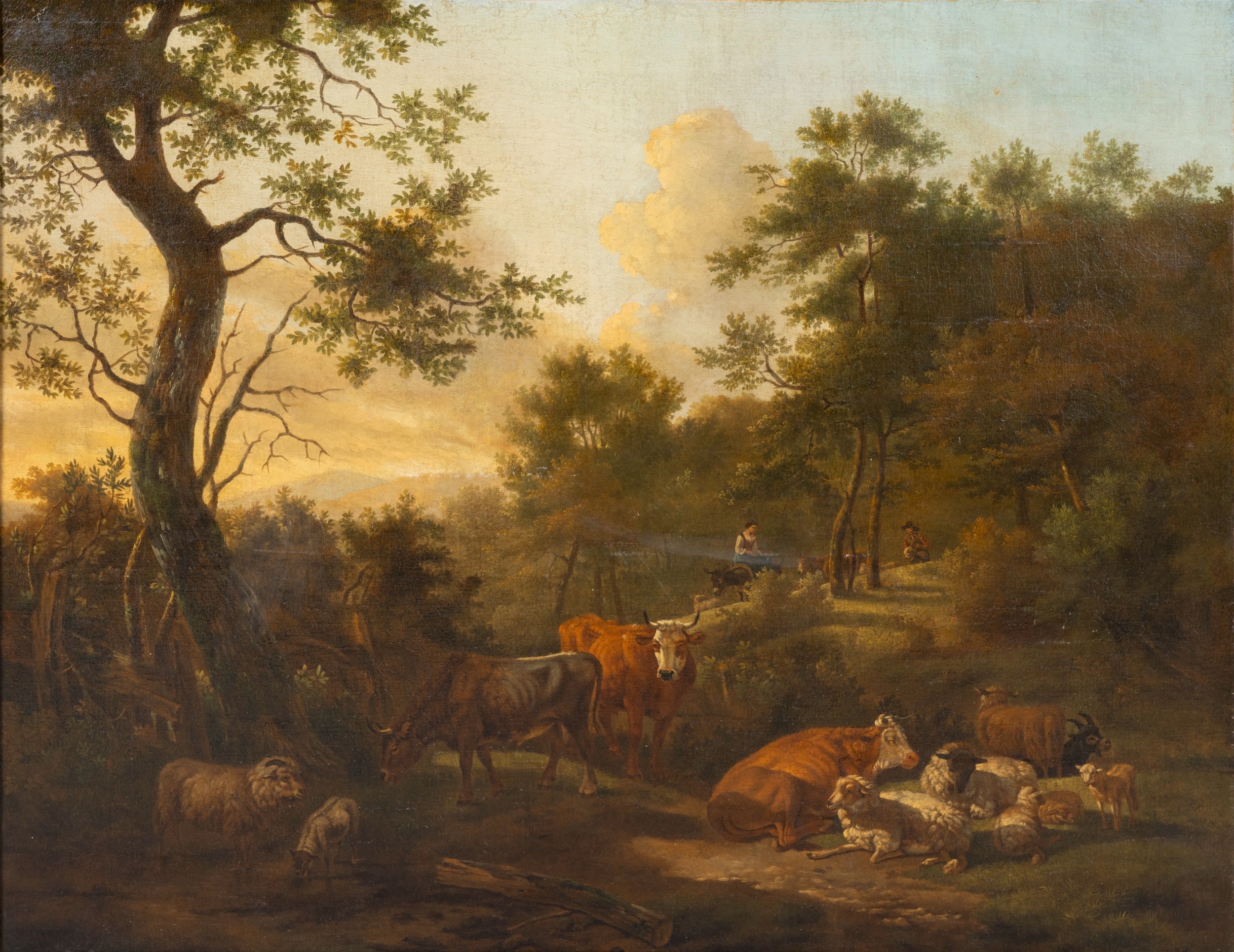 DUTCH SCHOOL, 18th CENTURY Herders with Cattle and sheep in a woodland, Oil on canvas, 85 x 106cm