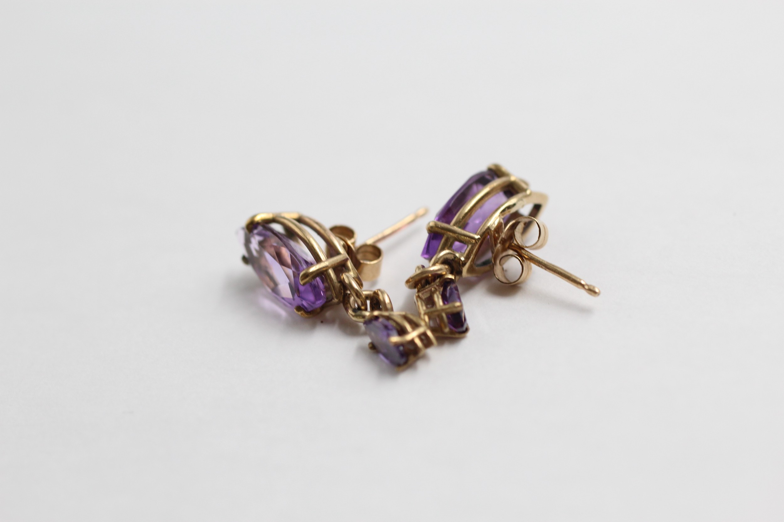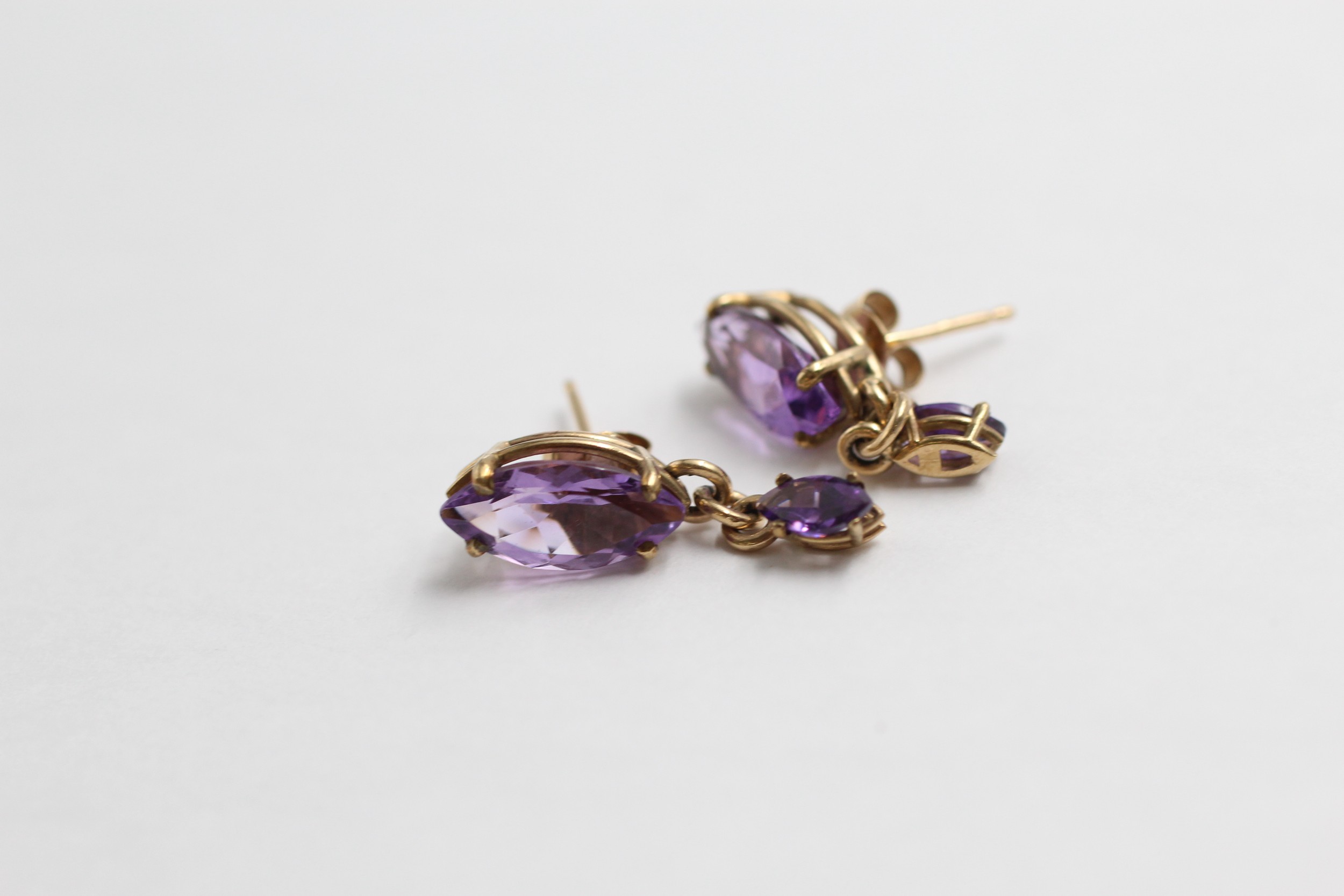 9ct Gold Amethyst Drop Earrings (2.5g)