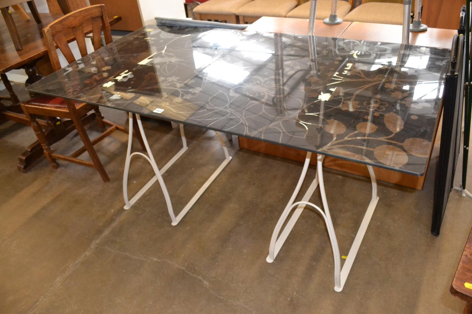 GLASS TOP FLOWERED TRIPOD DINING TABLE