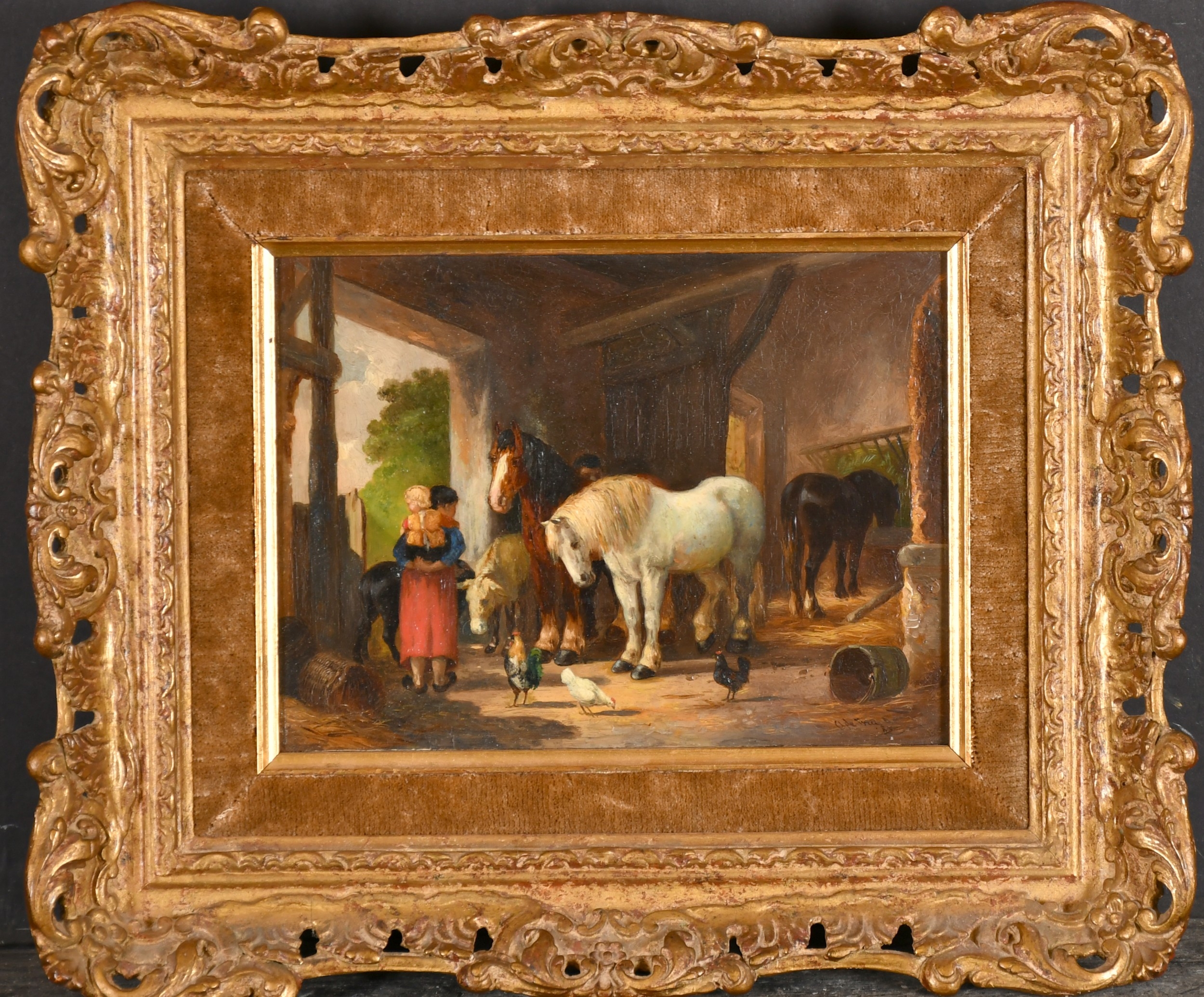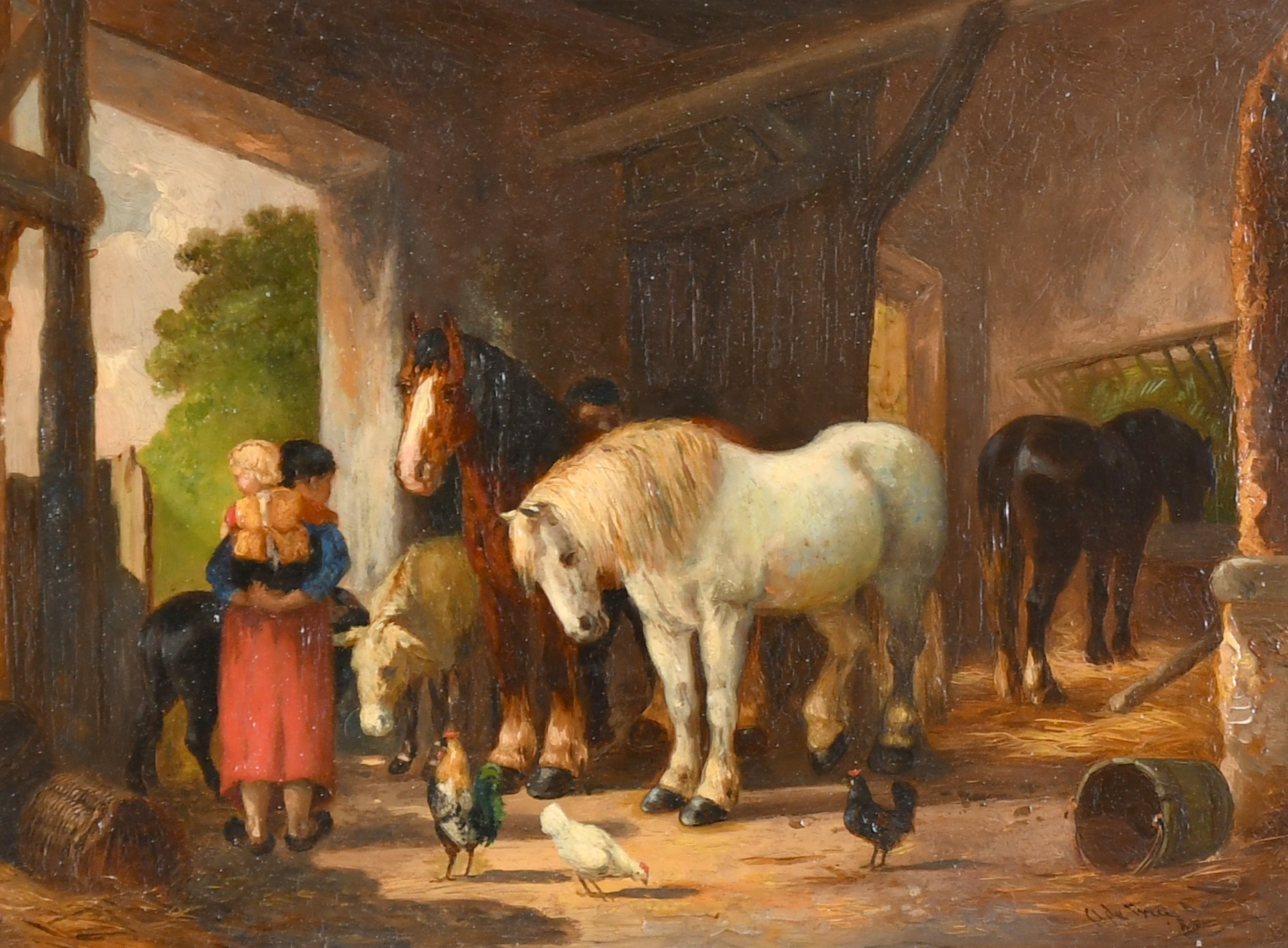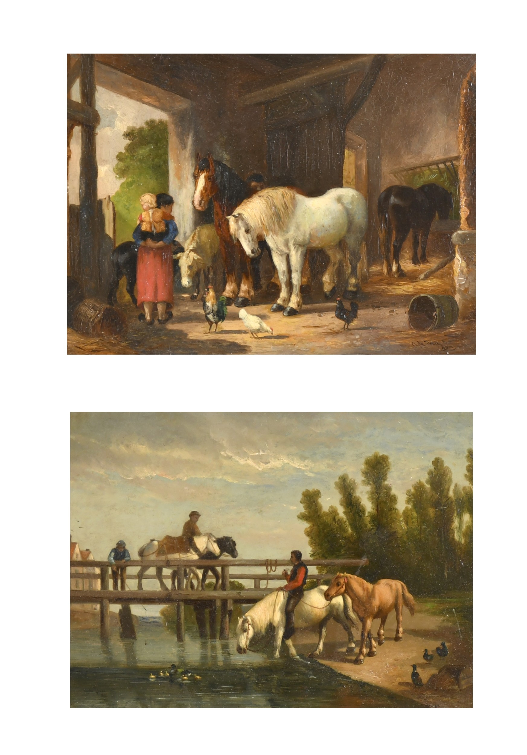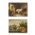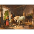 Anthony de Bree (1856-1921) British. A Stable Interior with Figures and Horses, Oil on panel, Signed and dated 85, 6" x 8" (15.2 x 20.3cm) and the companion piece, a pair (2)