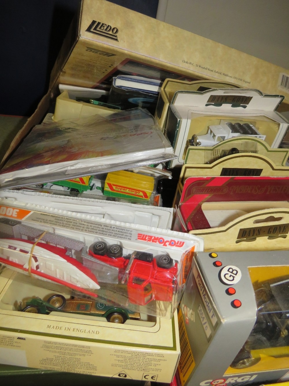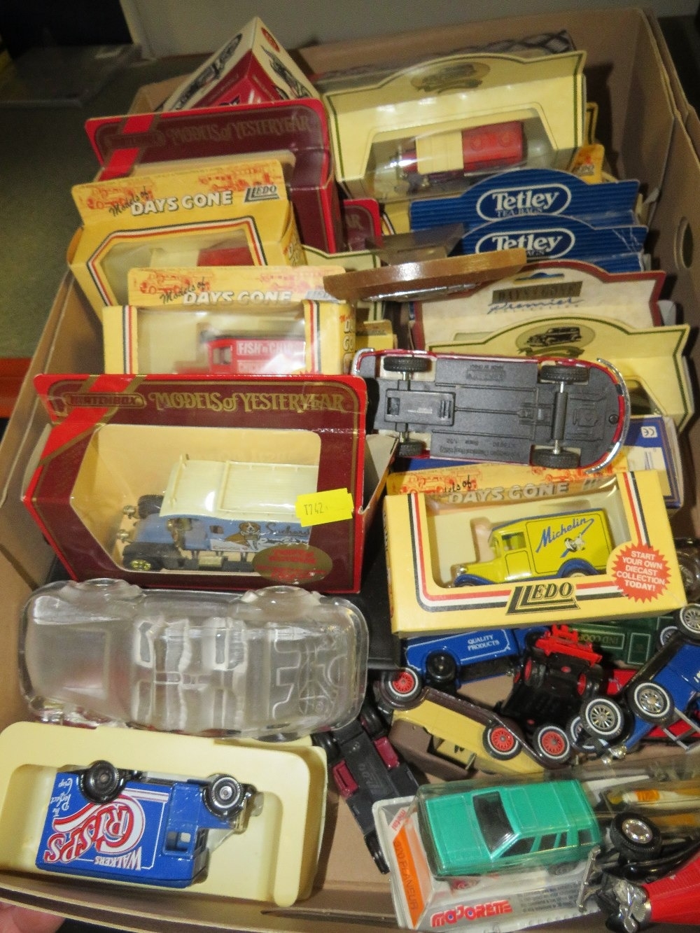 Two trays of assorted model cars to include a Lledo Days Gone By display case etc