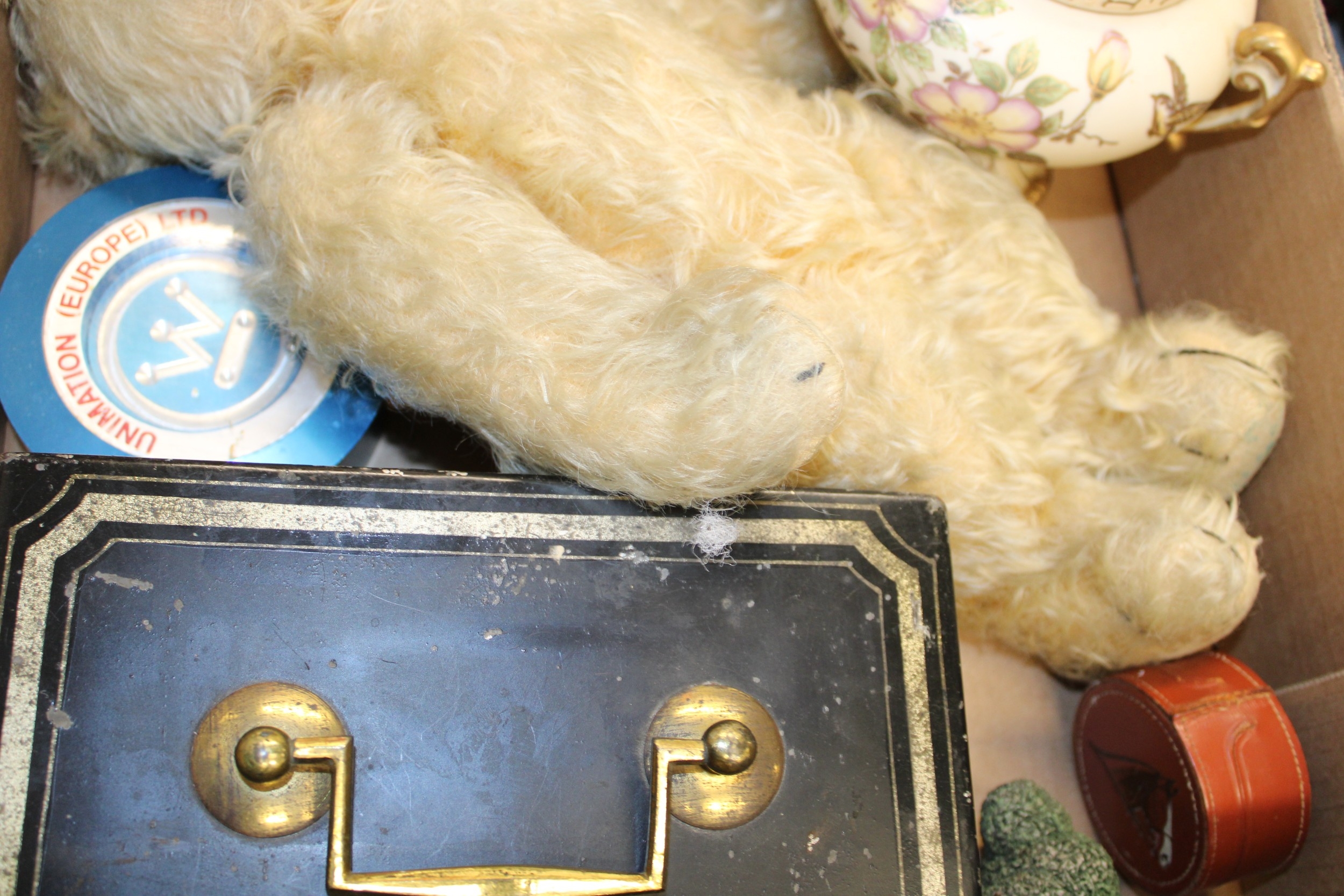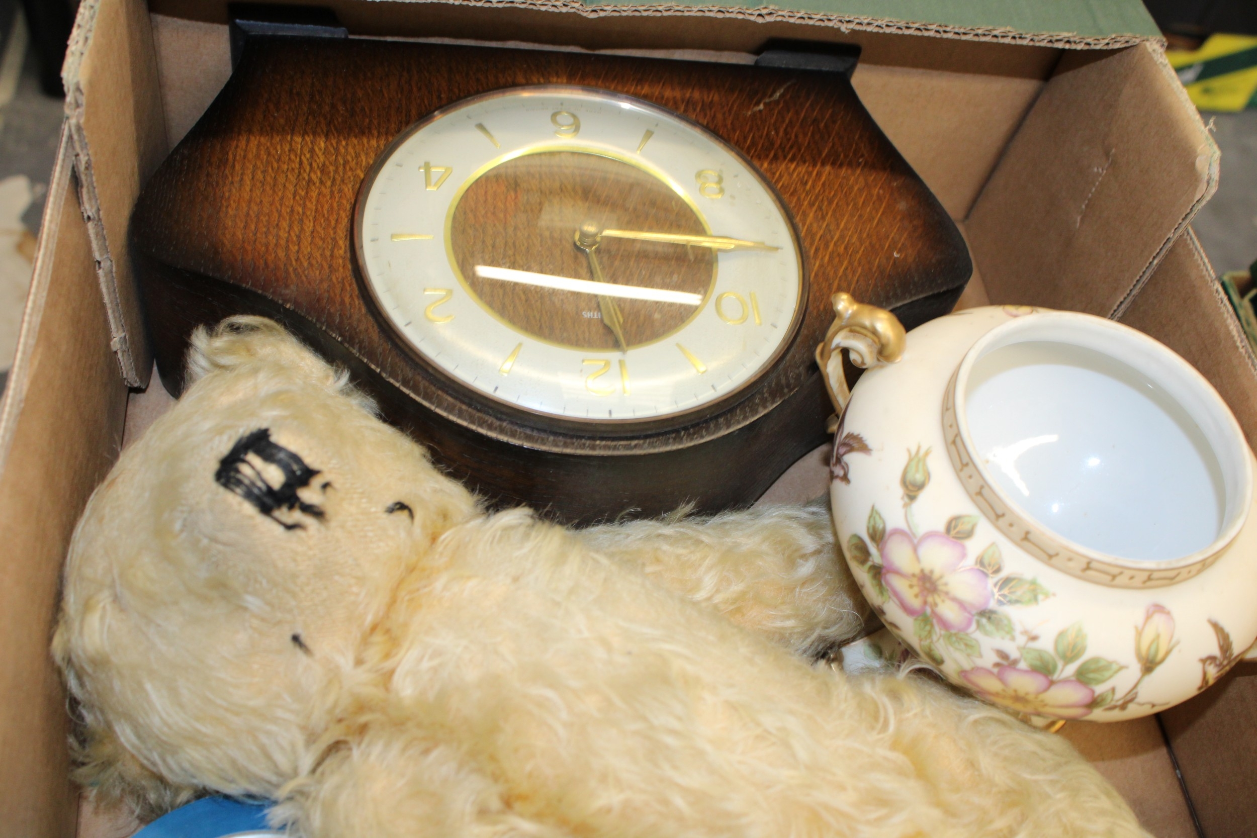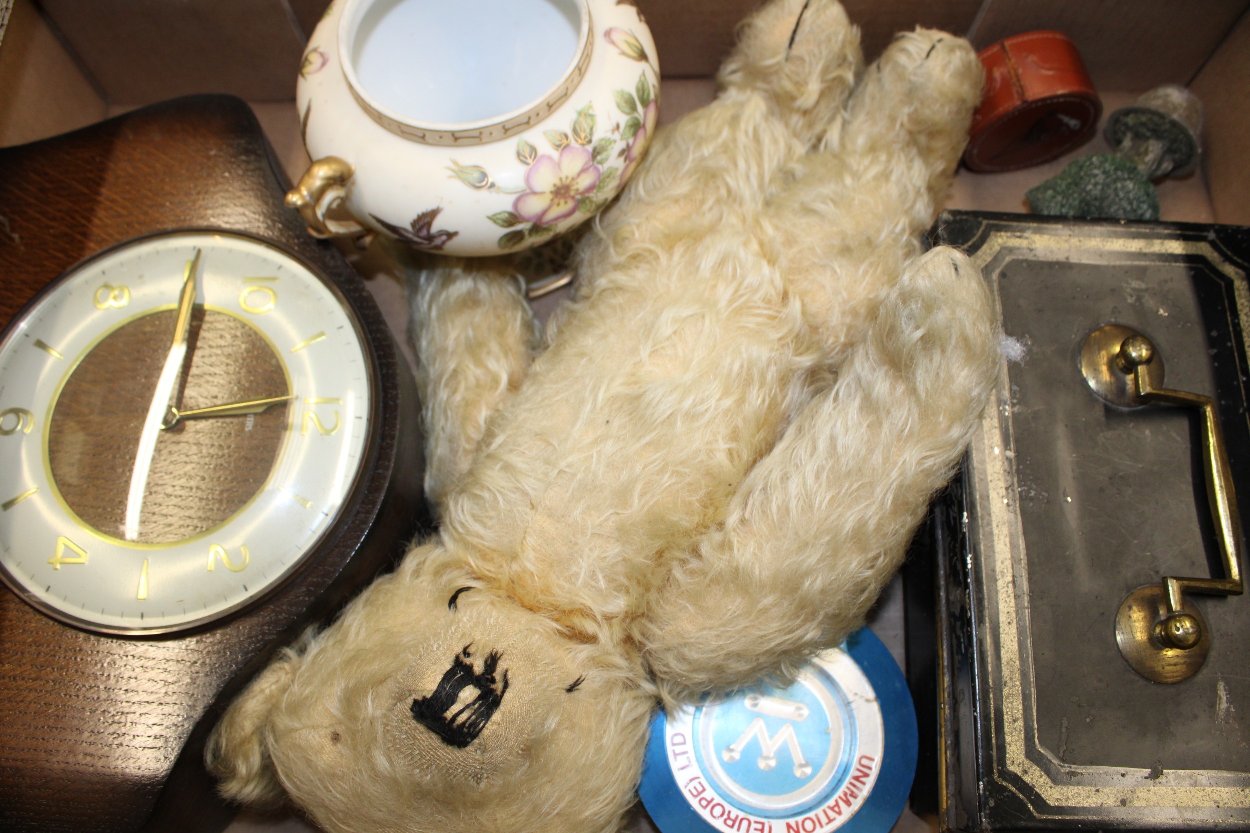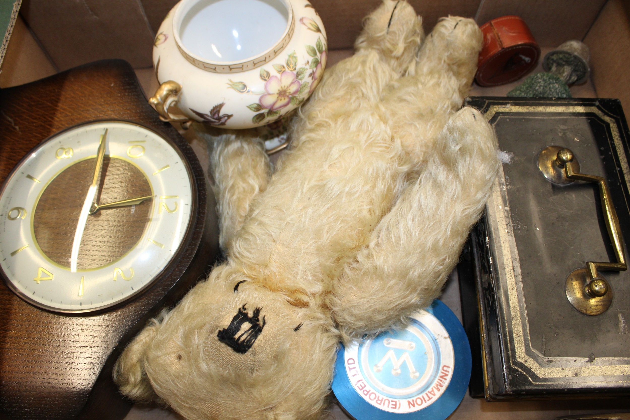 A mixed collection of items to include a Merrythought teddy bear, Smiths mantle clock and other similar items, (Qty).