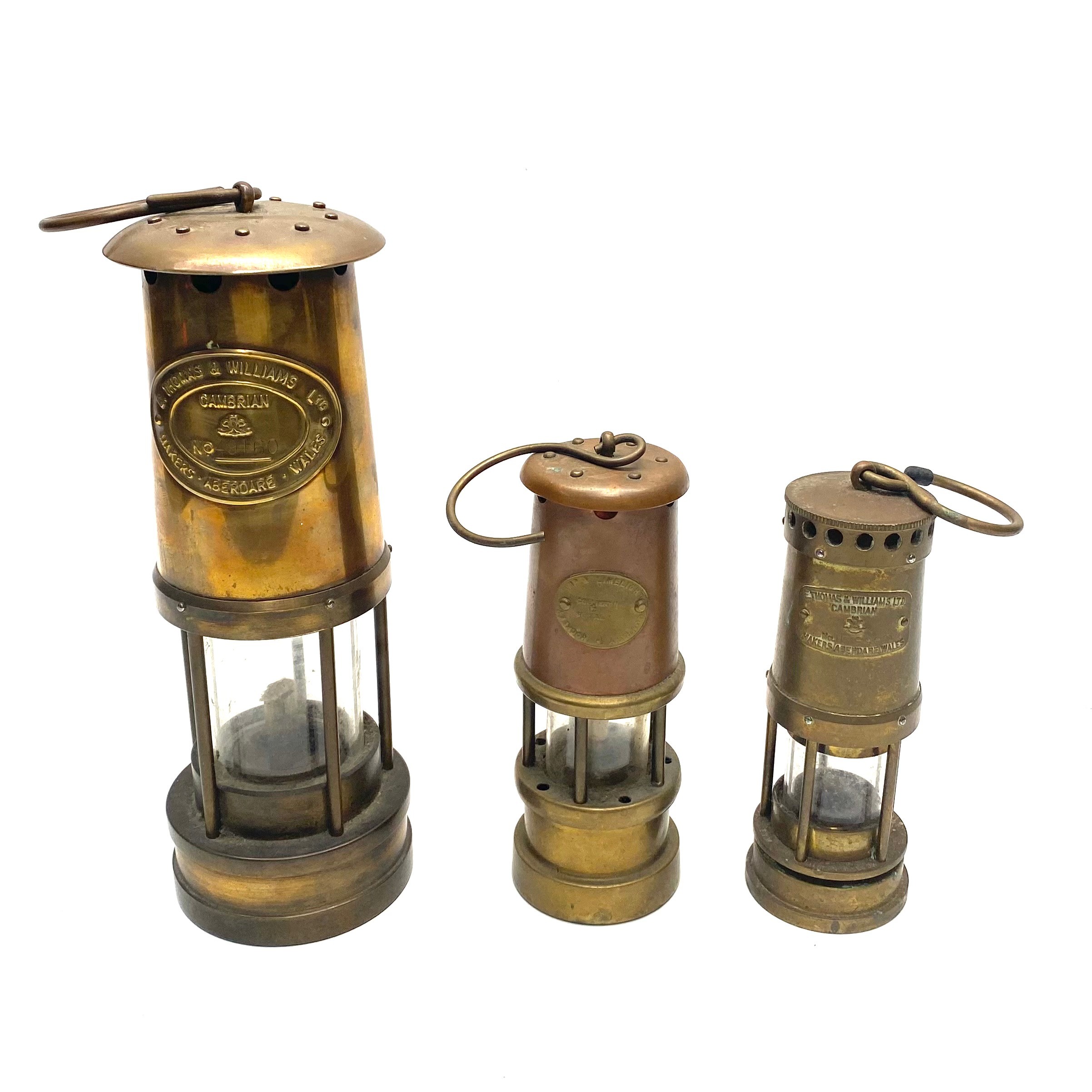 3 welsh mining lamps including one by E. Thomas & William Cambrian.
