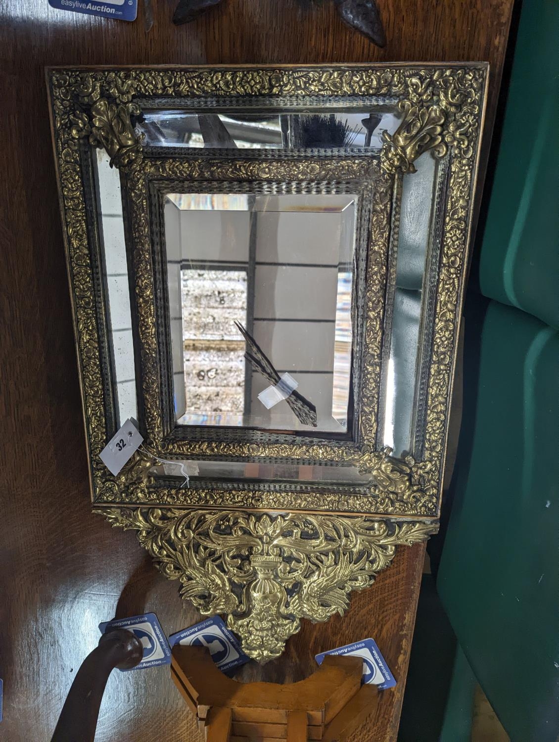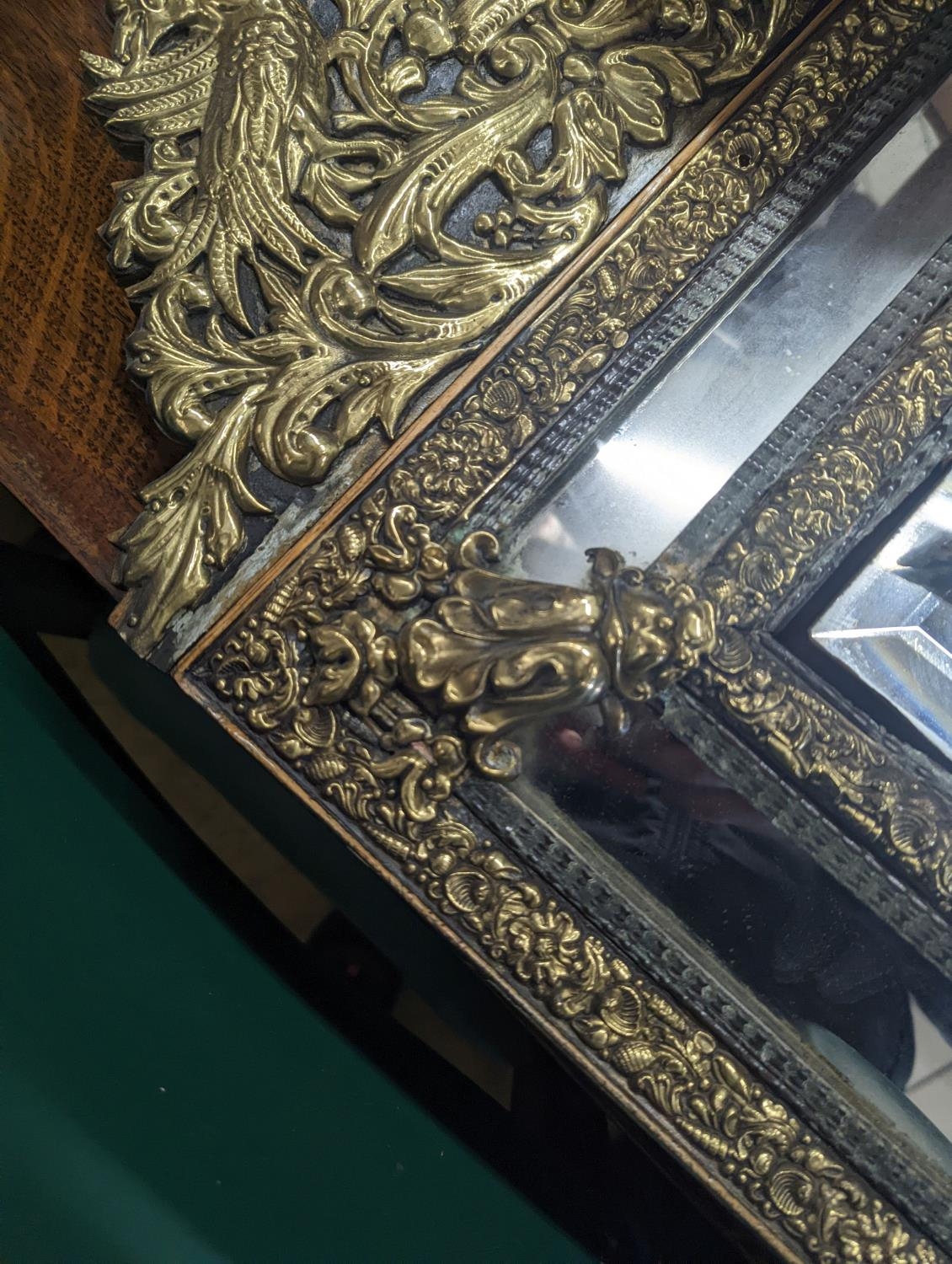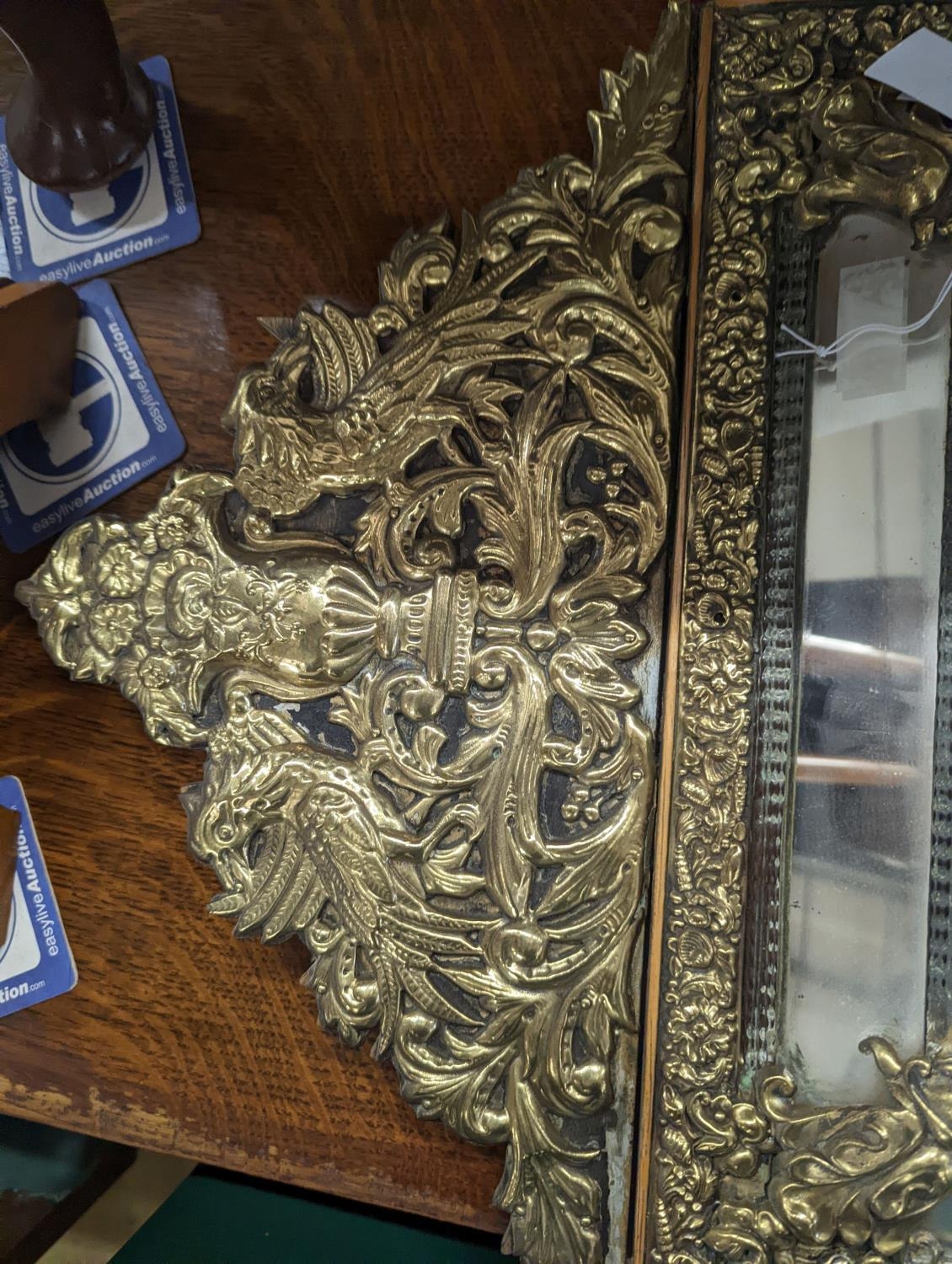 A 19th century Dutch embossed brass wall mirror, width 45cm, height 75cm