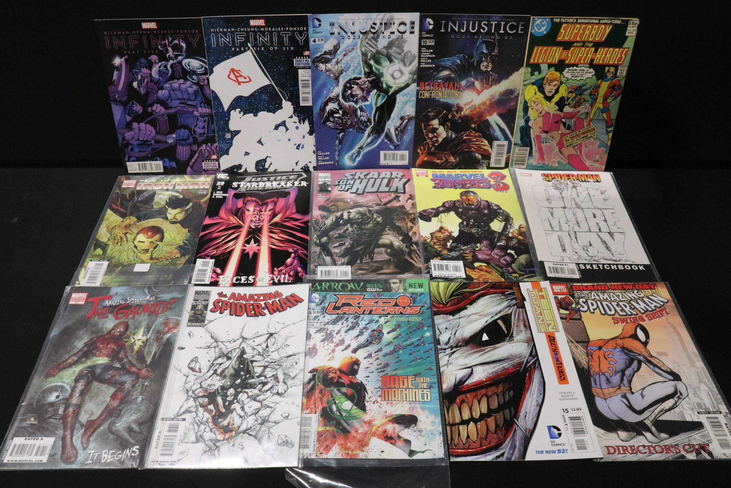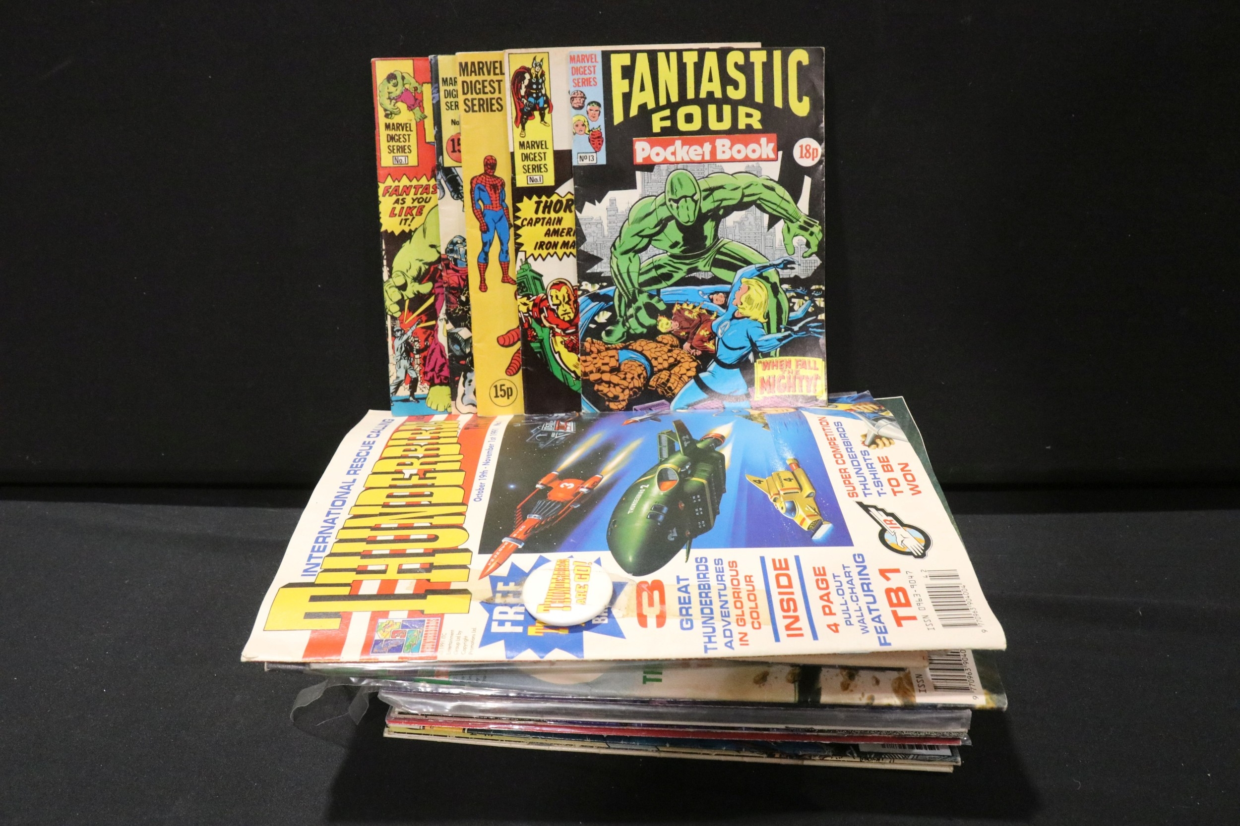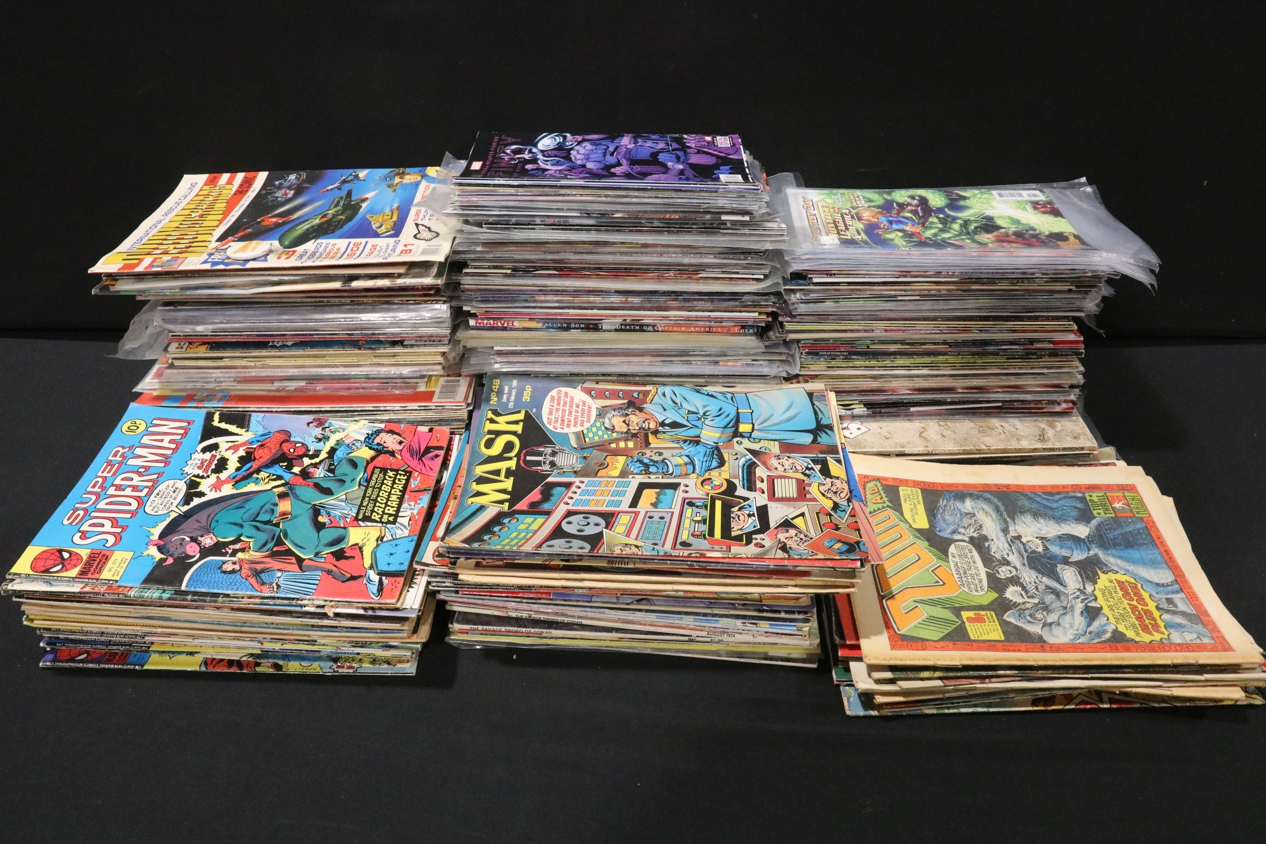 Comics - Over 400 comics to include DC, Marvel, Charlton etc featuring Original Sins, Justice League, Thunderbirds, Ghostly Haunts, Super Spiderman, House of Mystery, X Men etc (2 boxes)