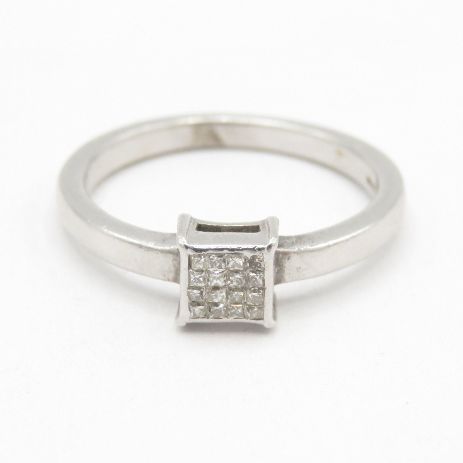 9ct white gold square set diamond ring (3.1g) size N 1/2