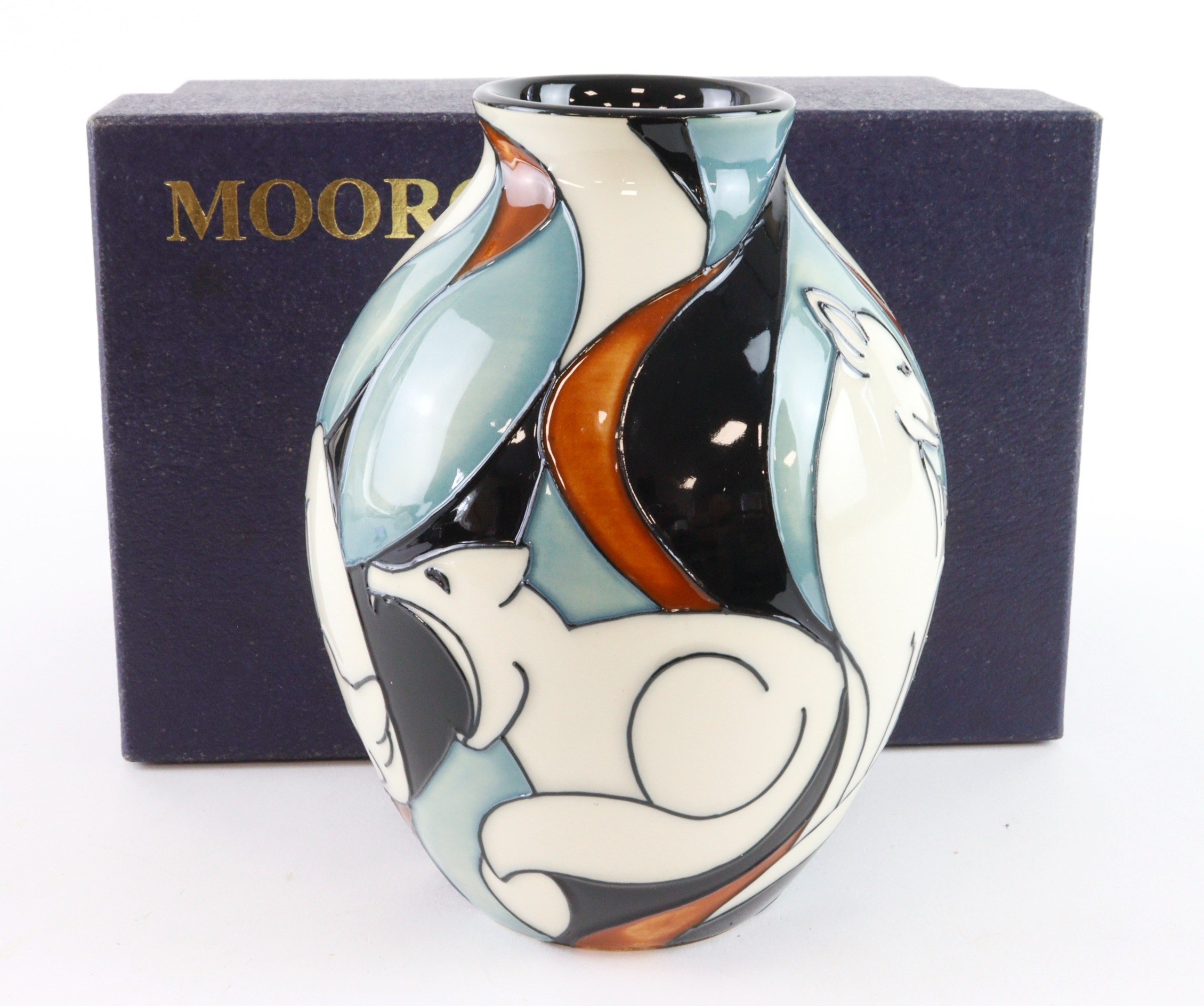 Moorcroft 'Arctic Fox' pattern vase, dated 2007, makers marks to base, height 13cm approx., contained in a Moorcroft box