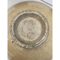 Bernard LEACH (1887-1979) An early, circa 1923, footed bowl with turned-in rim and lip, cream crackle glaze, the rim decorated with a band of cream and red scrolls on a blue ground Diameter 20.5 cm, Impressed BL and Leach Pottery seals A similar example is illustrated in The Art of Bernard Leach, Faber and Faber, 1978, plate 15 At first glance, this attractive early Leach bowl appears to be in very good condition. When examined under UV light there is competent restoration visible to the entire perimeter of the rim. There are a couple of areas of restoration to the cream scrolls, these are visible to the naked eye (please see images). There are a few nicks to the foot of the bowl (please see images). The marks are crisp and clear.