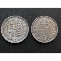 UNITED KINGDOM. Sixpence. 1834, 1875 die number 14, 1887 young head, 1889, 1902 and 1907, the first worn, the rest VG to GVF (6)
