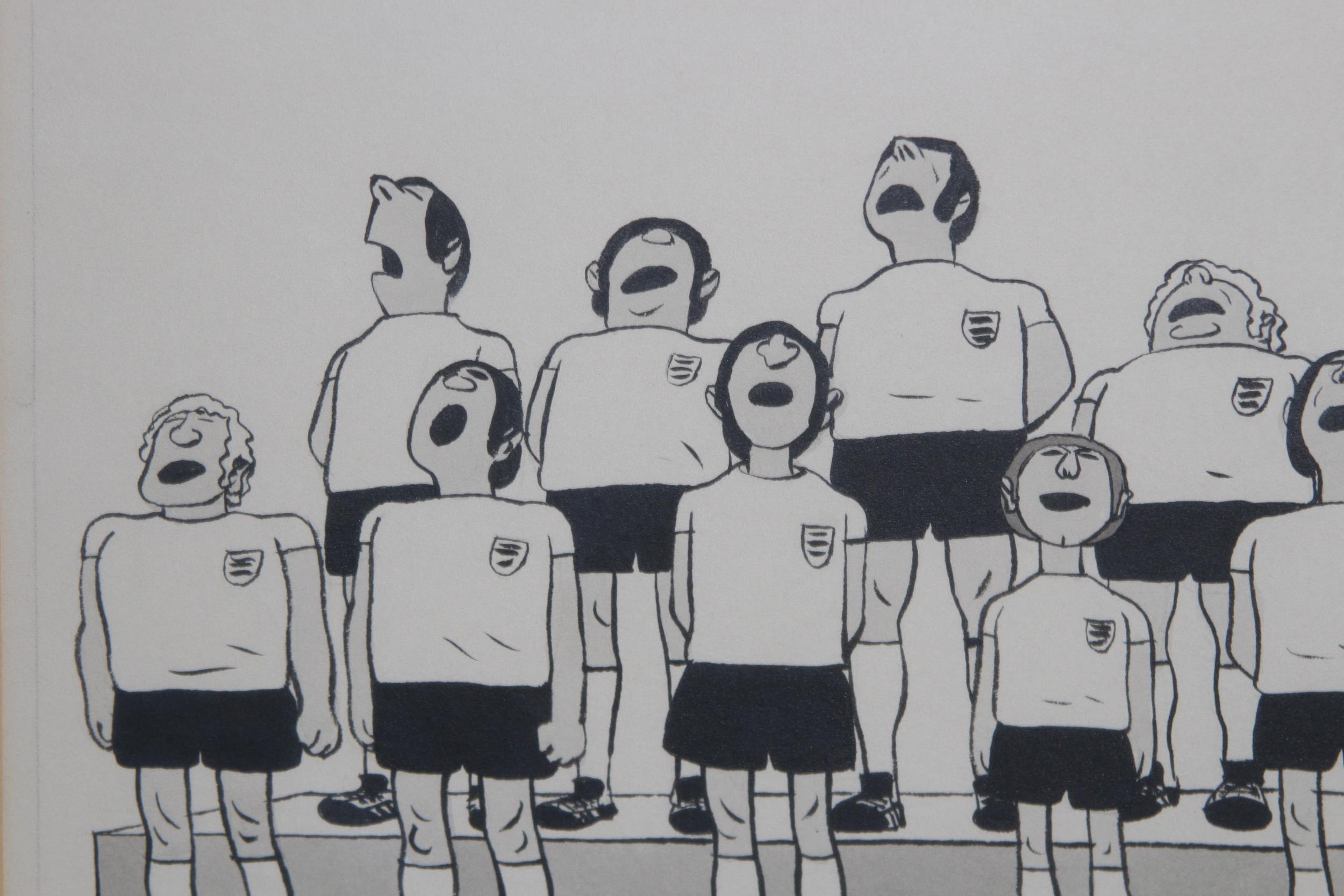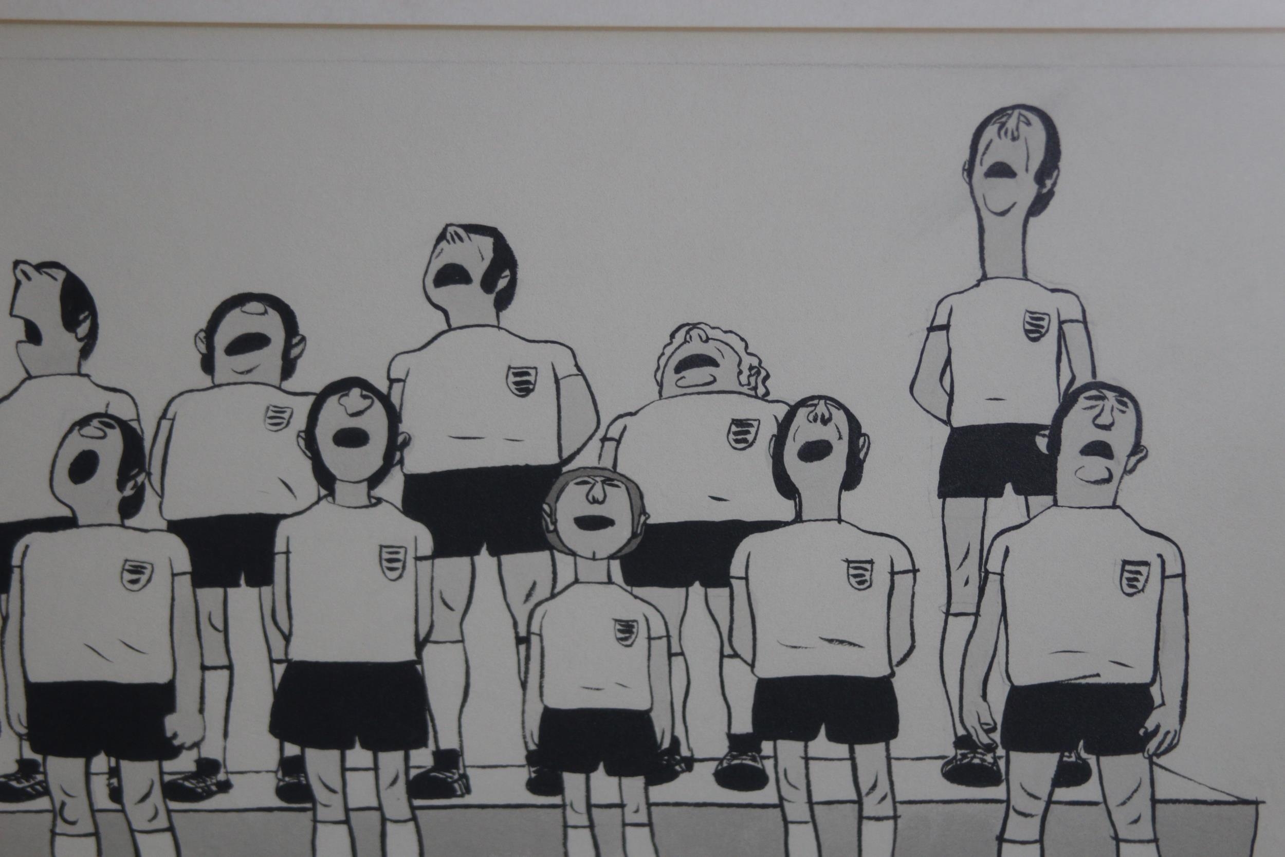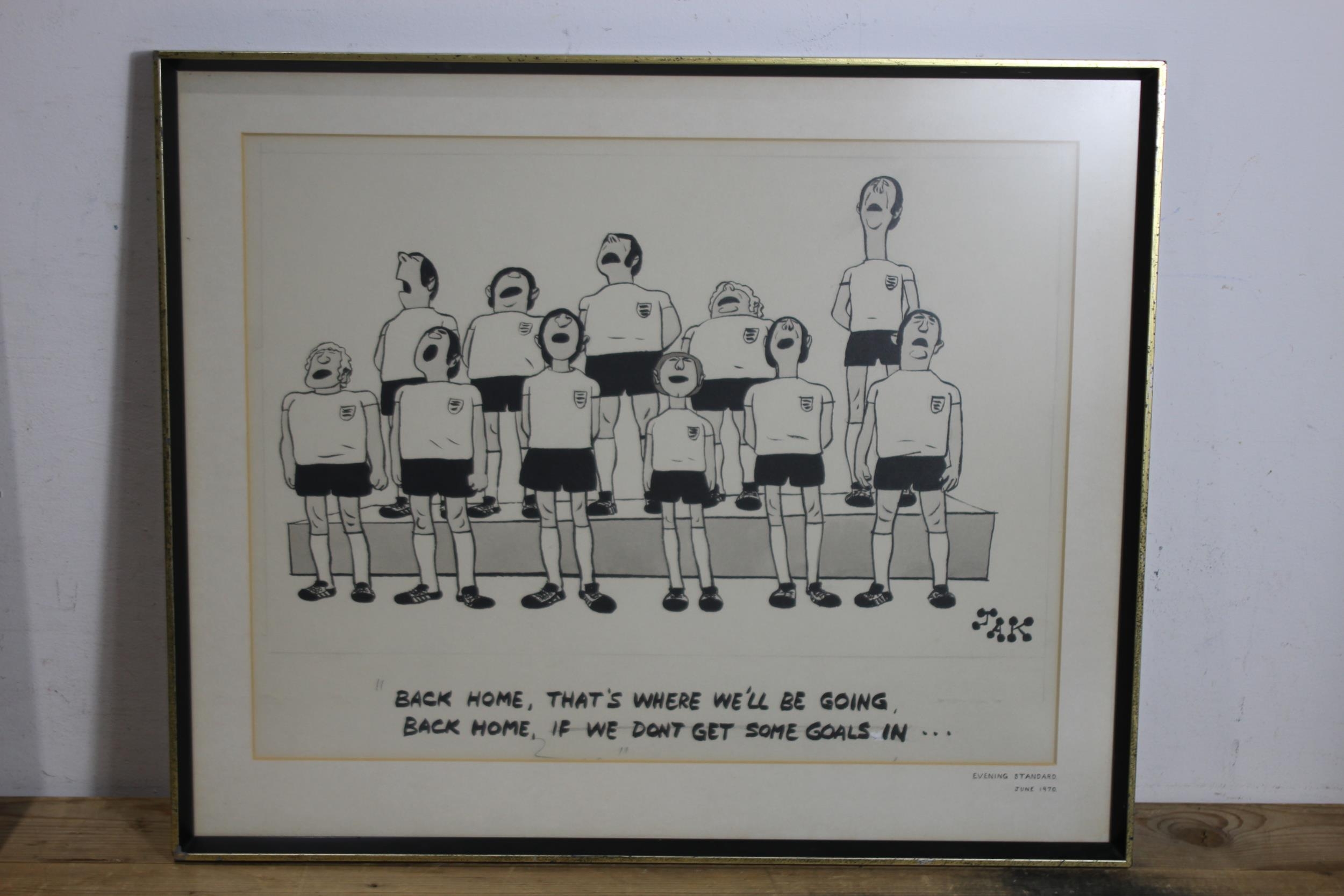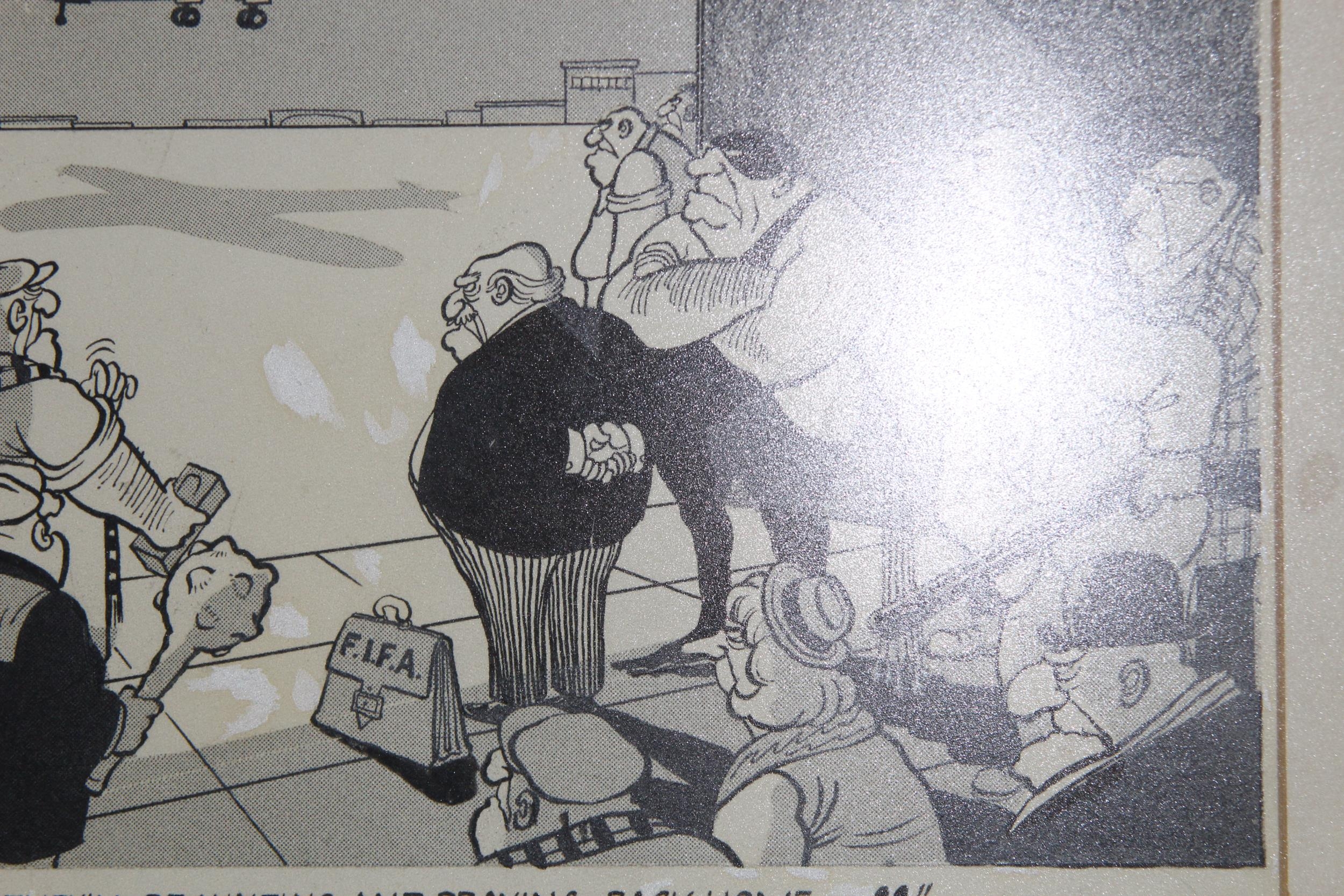2 X FOOTBALL RELATED NEWSPAPER CARTOONS56 X 47CM