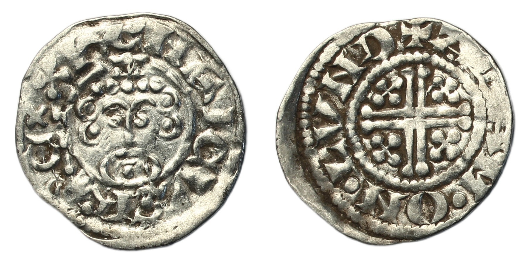 John (1199-1216) Penny, short cross type class 5b1, London, Adam, crowned facing bust holding sceptre, rev. voided short cross, +ADAM.ON.LVND, 1.34g, (SCBC 1351, N.970). Small flat spot on reverse, good very fine