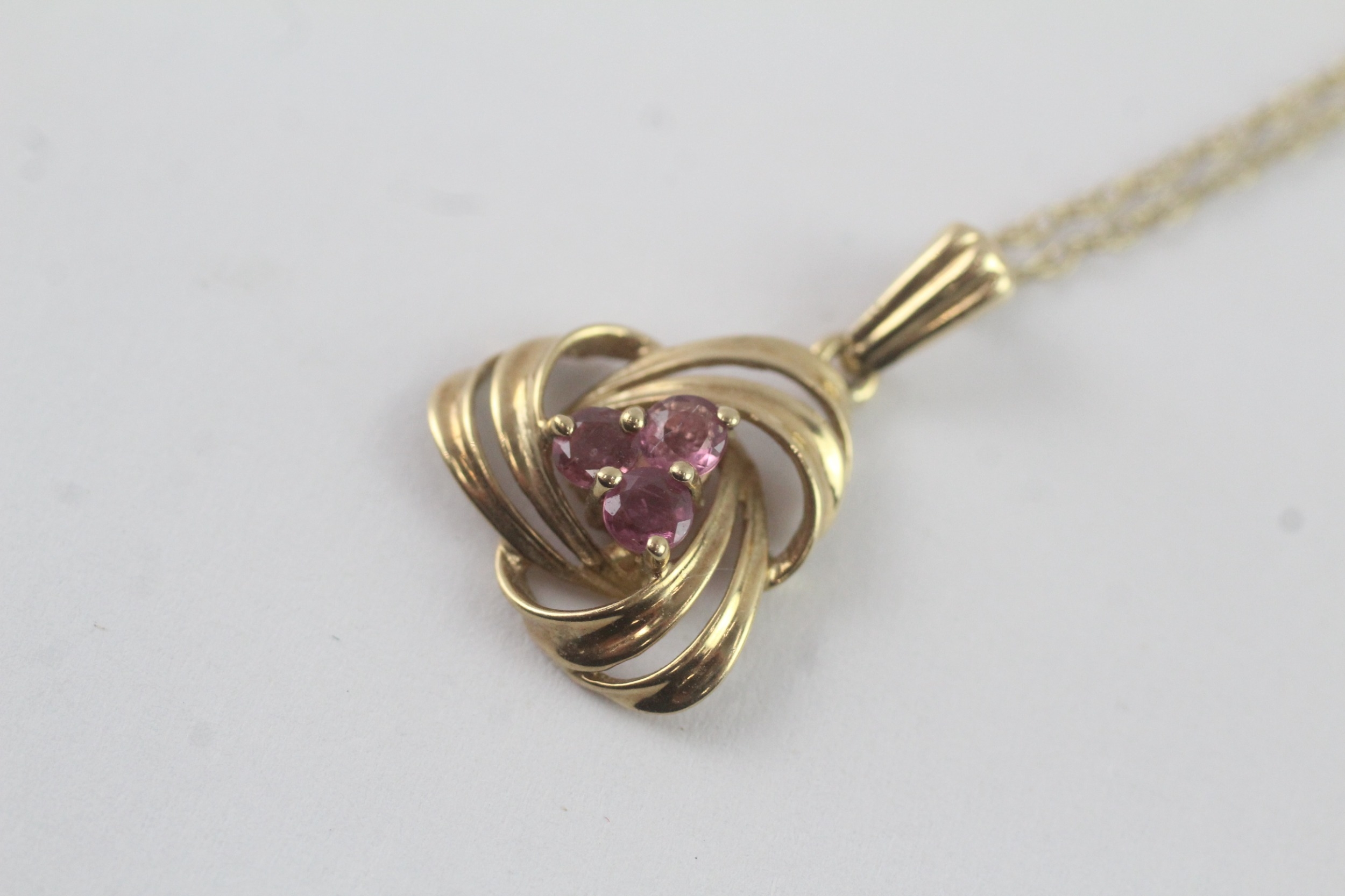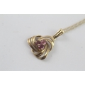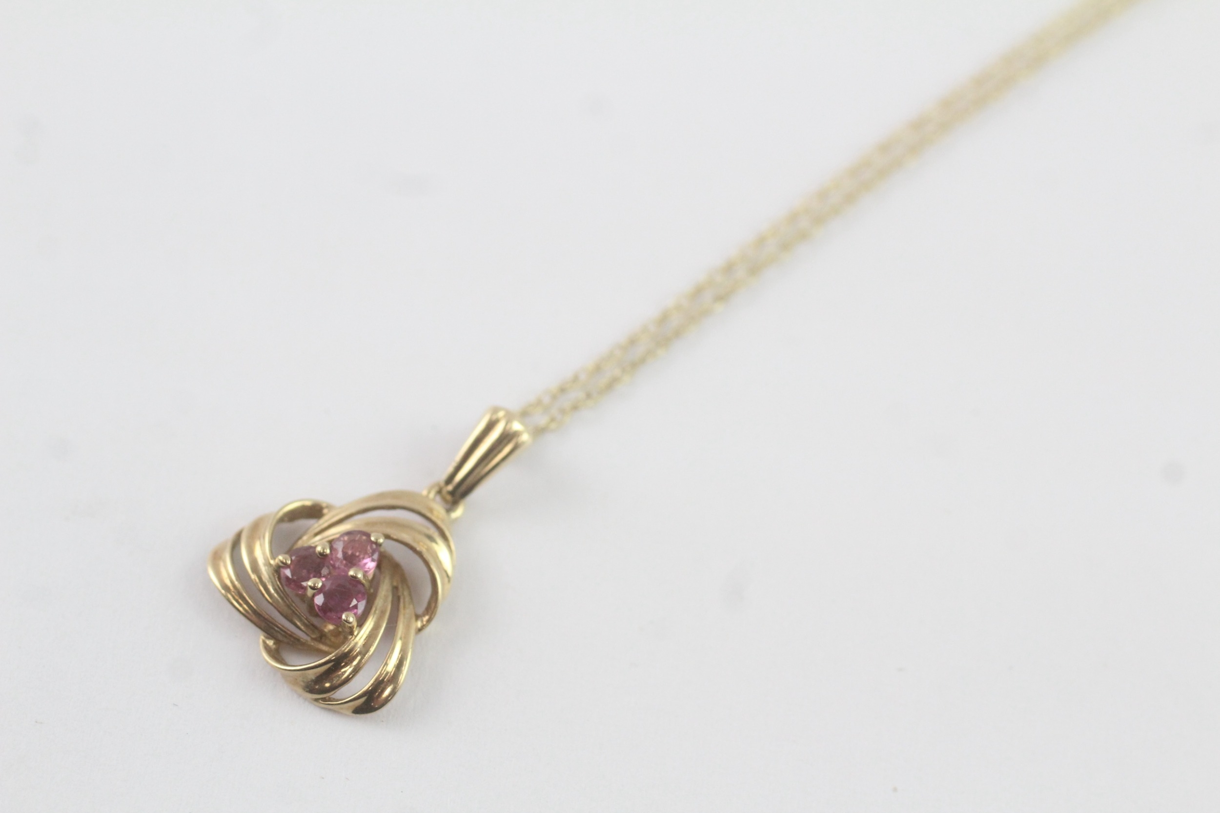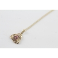 9ct gold pink sapphire pendant necklace (1.9g)
