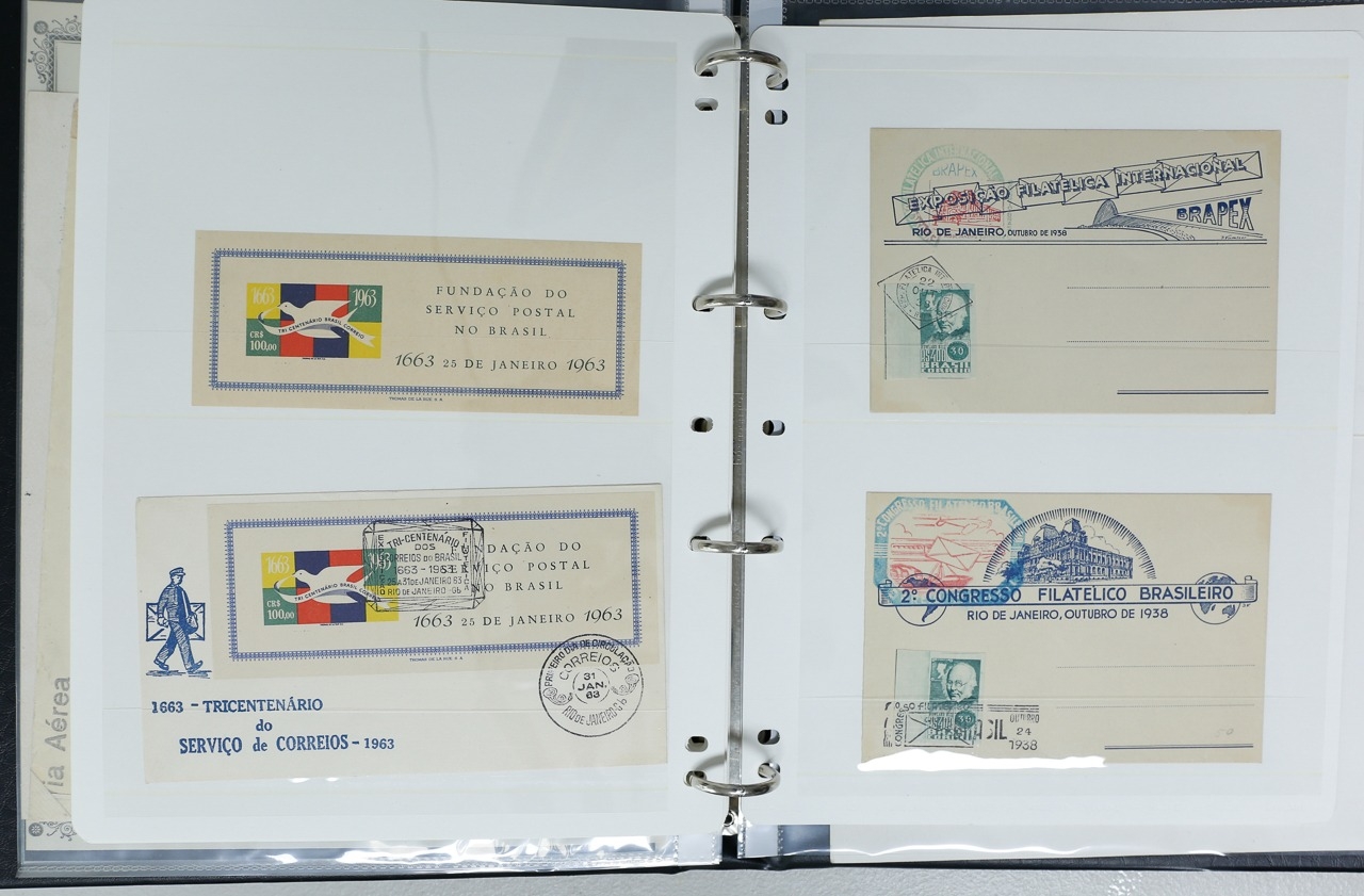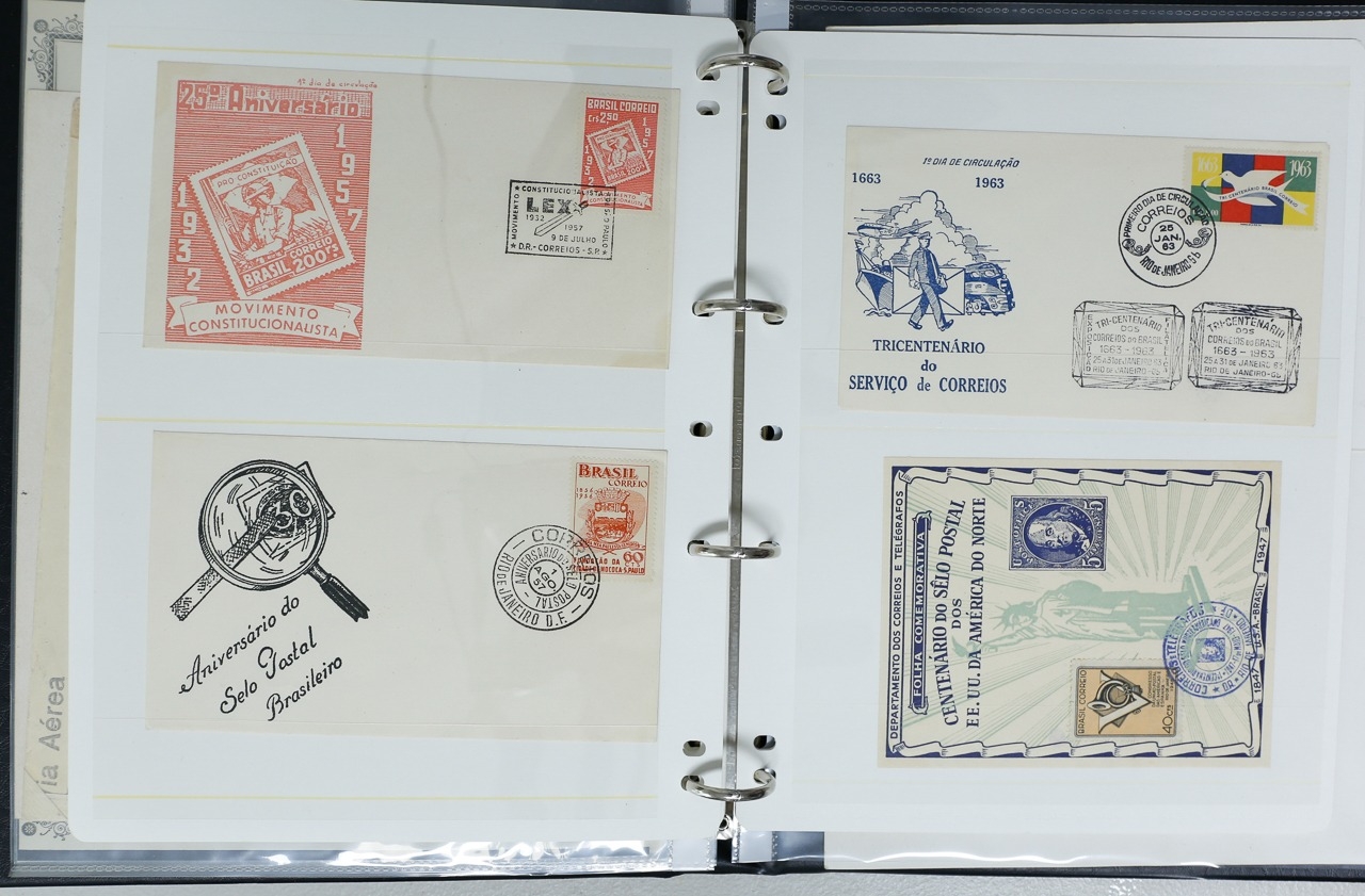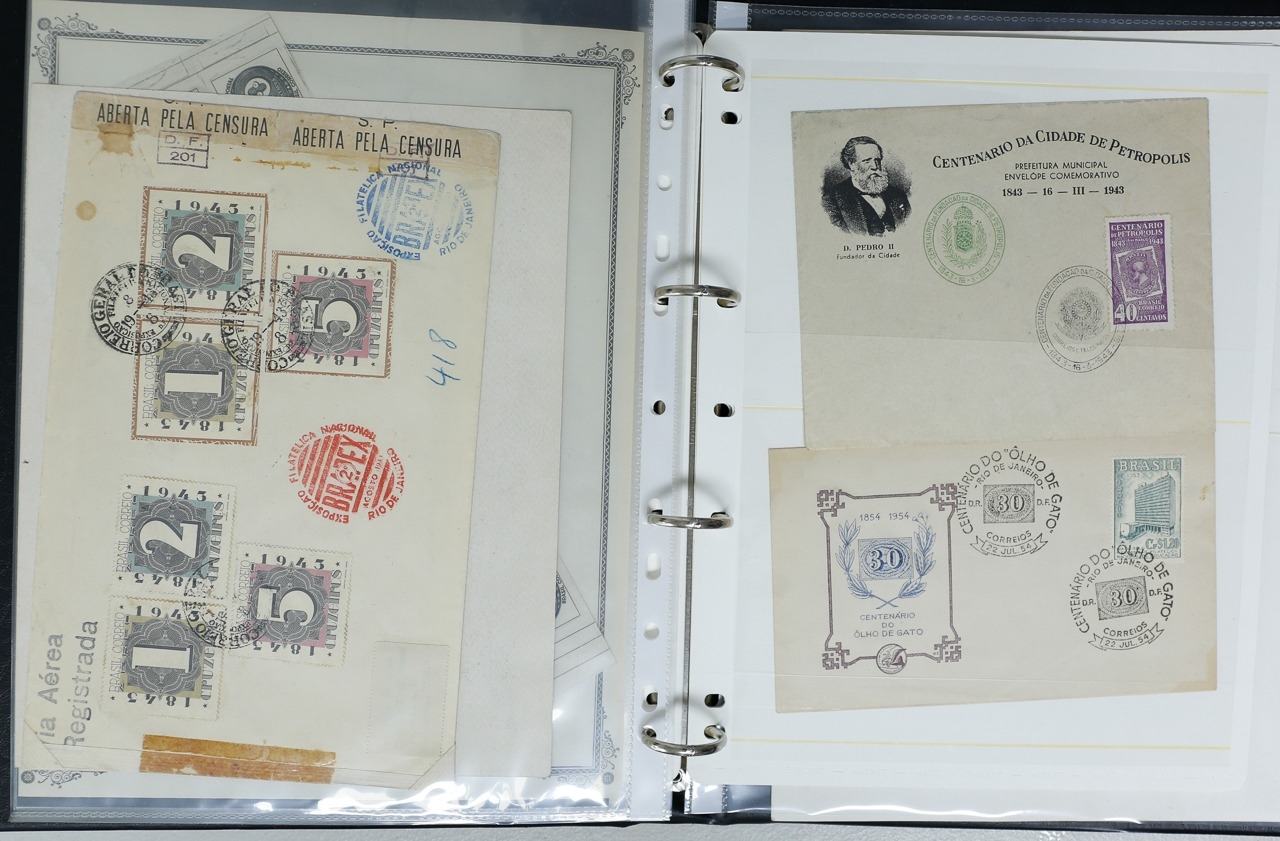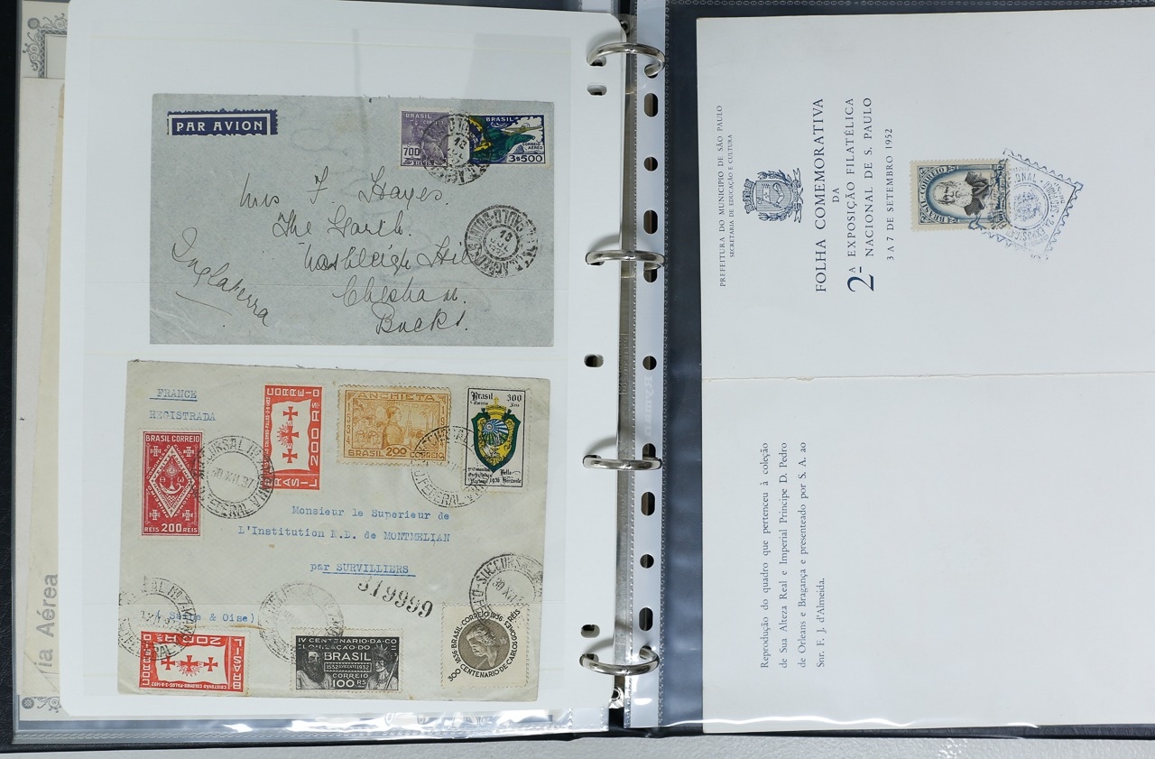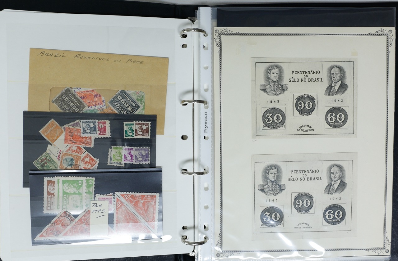 Misc. Lots & Collections BRAZIL 1843 to 1972 mint & used incl. sets/part-sets, Air mail, MS etc with some gaps on printed pages in three albums plus a ring binders with small multiples (2) on a couple of stock pages plus used covers/postcards (approx. 20 items) (Ref: 00288/12)