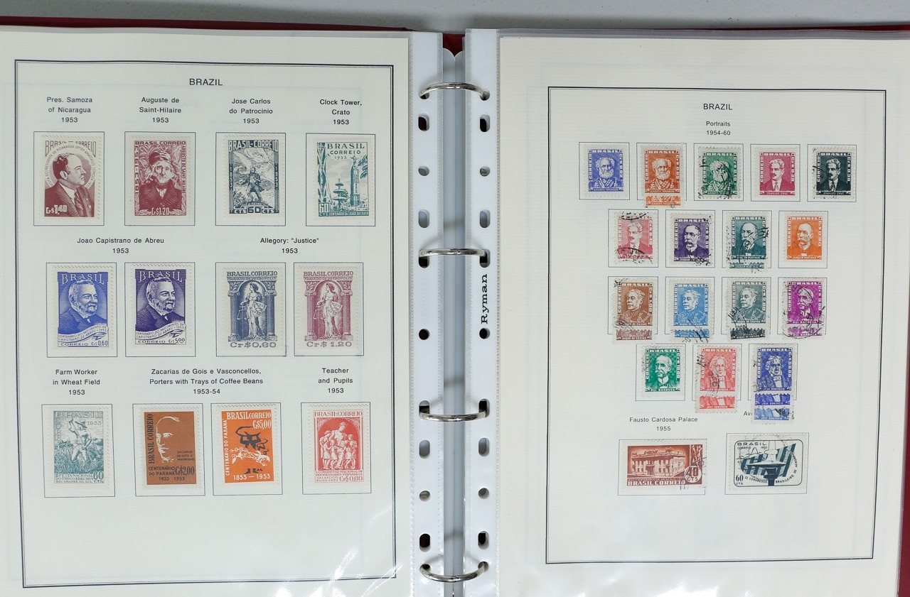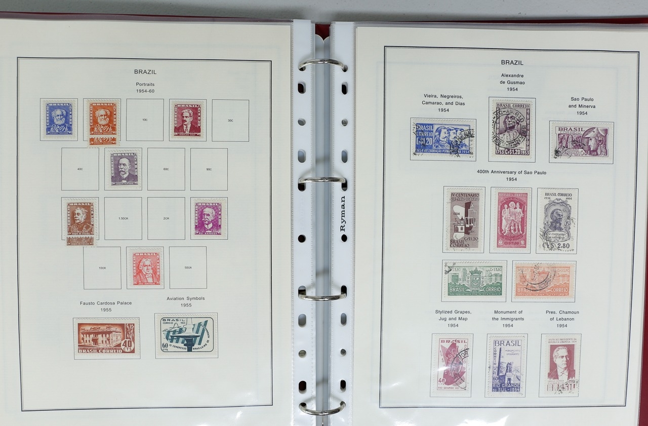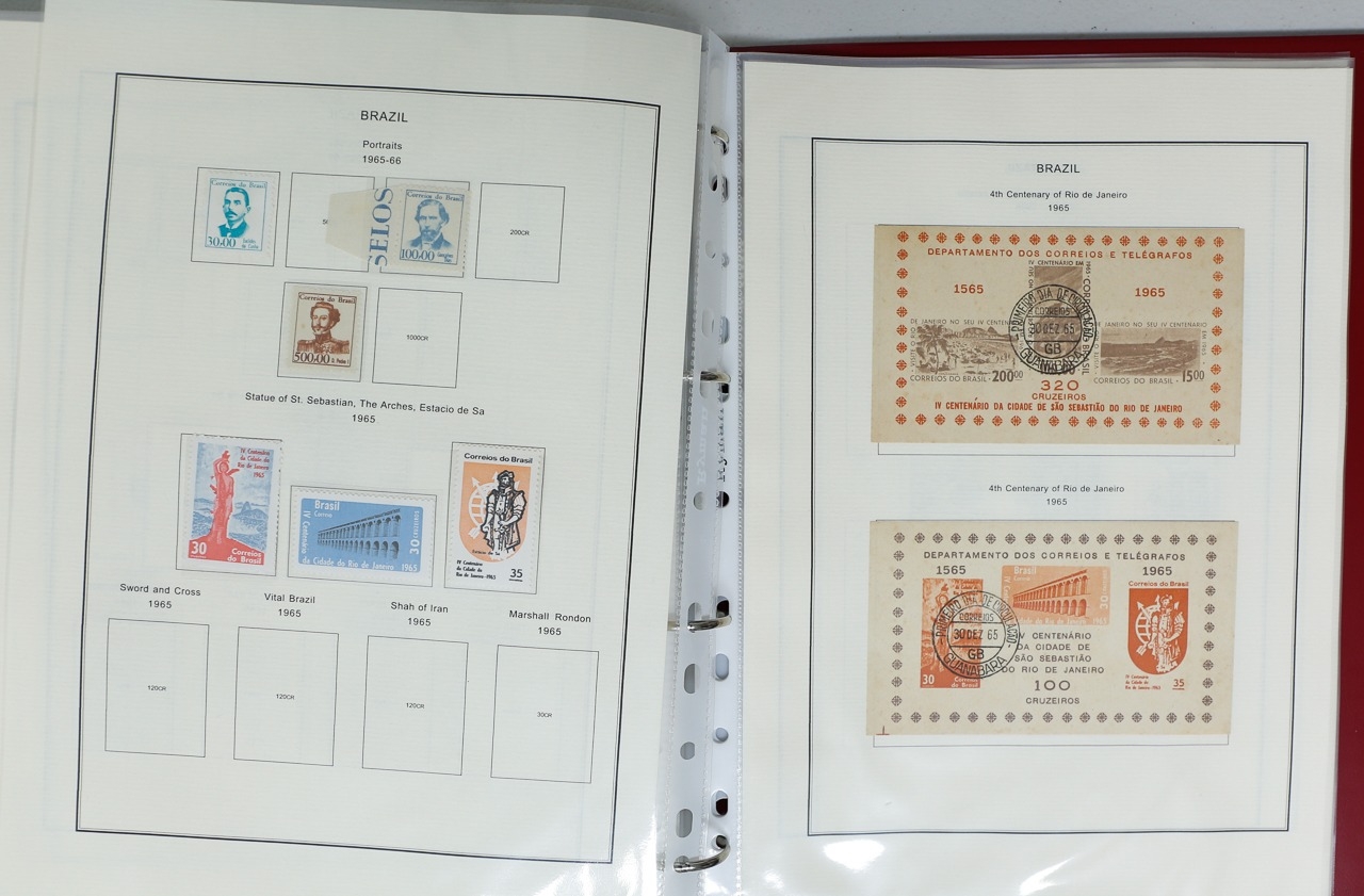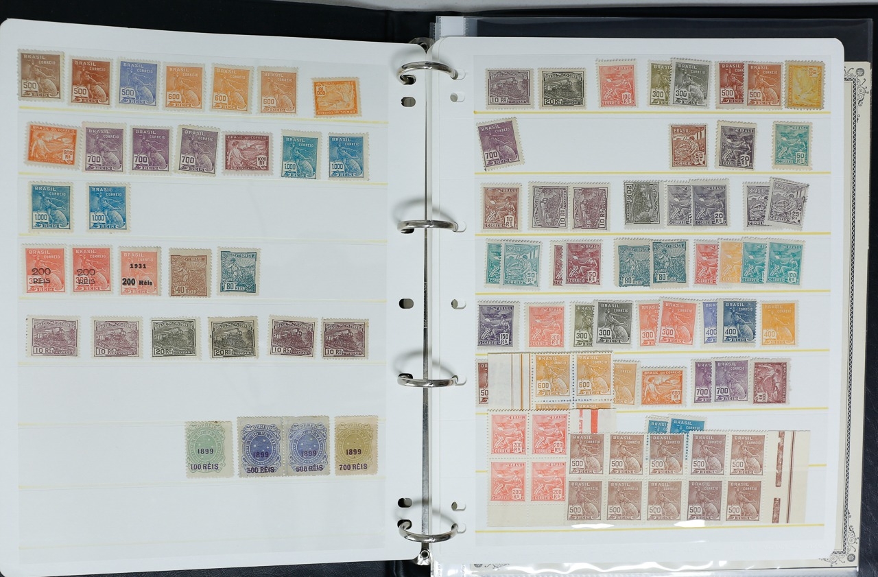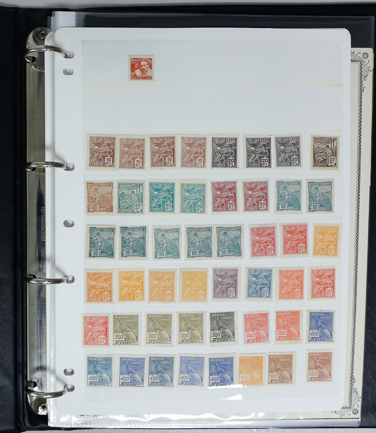 Misc. Lots & Collections BRAZIL 1843 to 1972 mint & used incl. sets/part-sets, Air mail, MS etc with some gaps on printed pages in three albums plus a ring binders with small multiples (2) on a couple of stock pages plus used covers/postcards (approx. 20 items) (Ref: 00288/12)