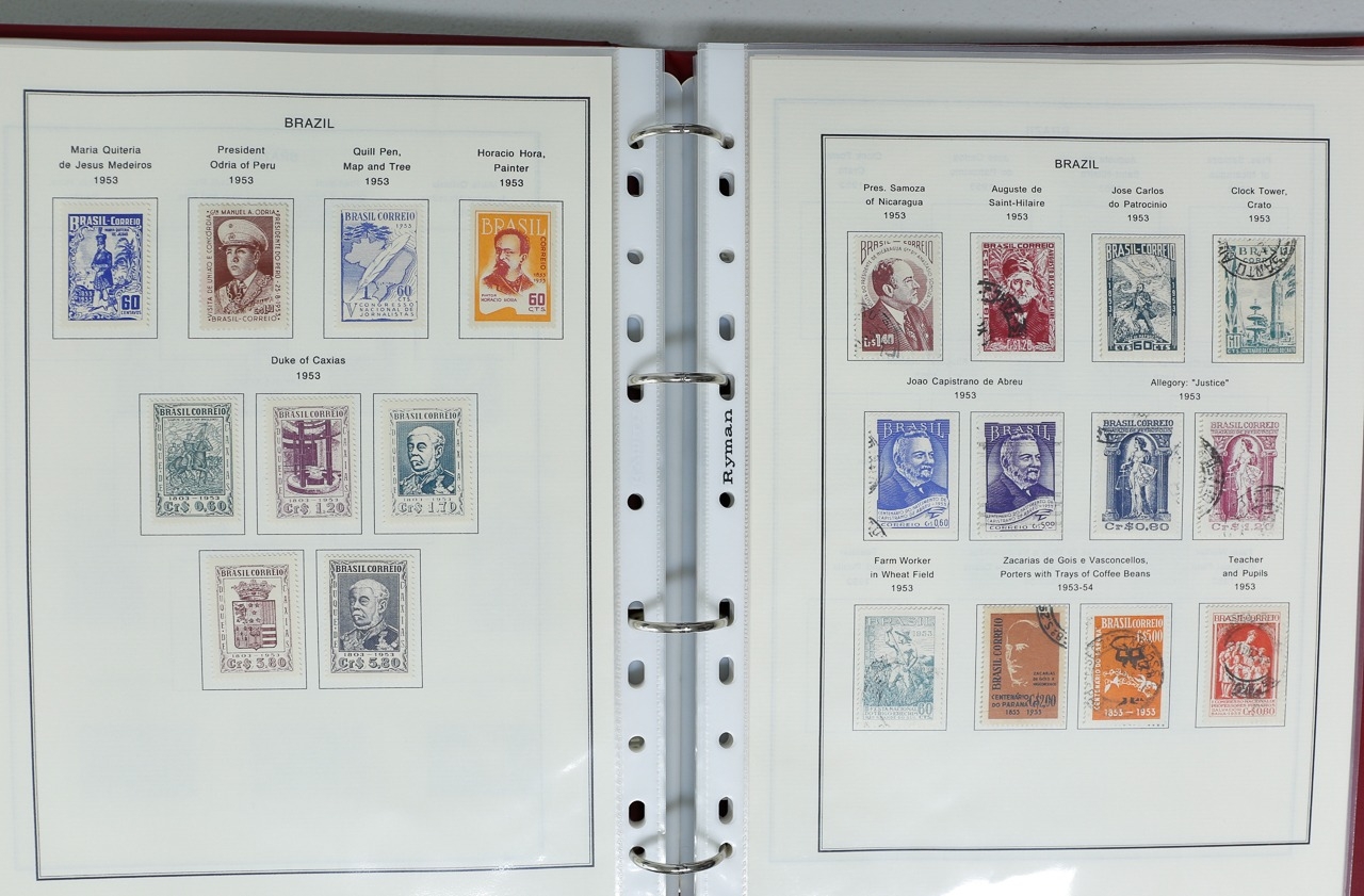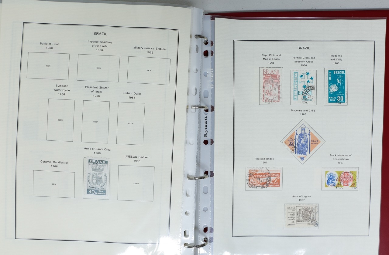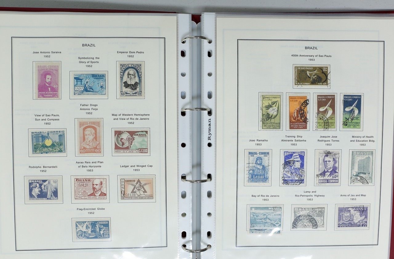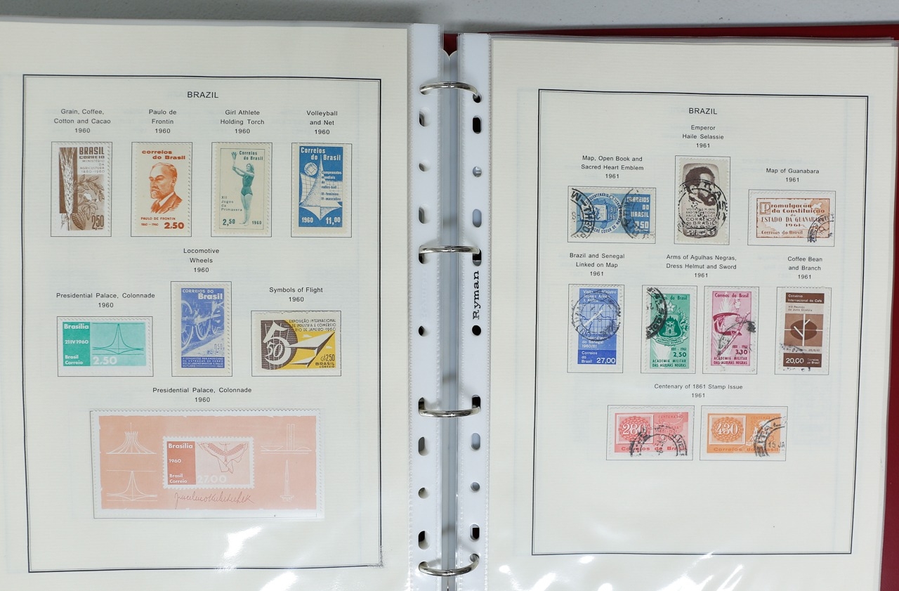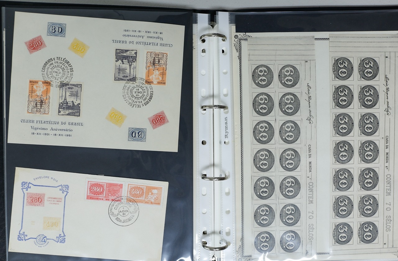 Misc. Lots & Collections BRAZIL 1843 to 1972 mint & used incl. sets/part-sets, Air mail, MS etc with some gaps on printed pages in three albums plus a ring binders with small multiples (2) on a couple of stock pages plus used covers/postcards (approx. 20 items) (Ref: 00288/12)