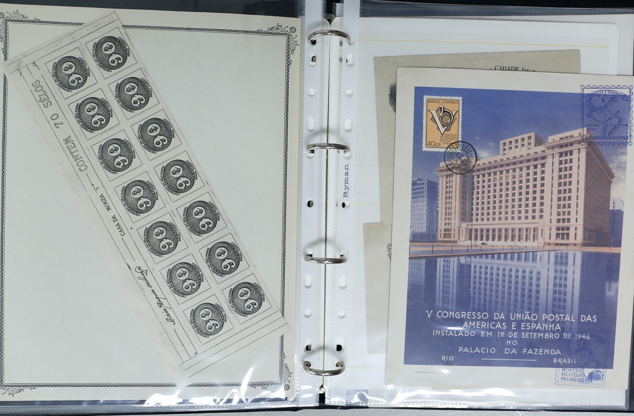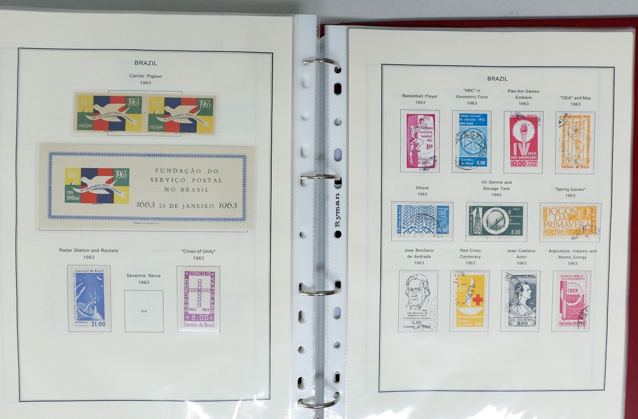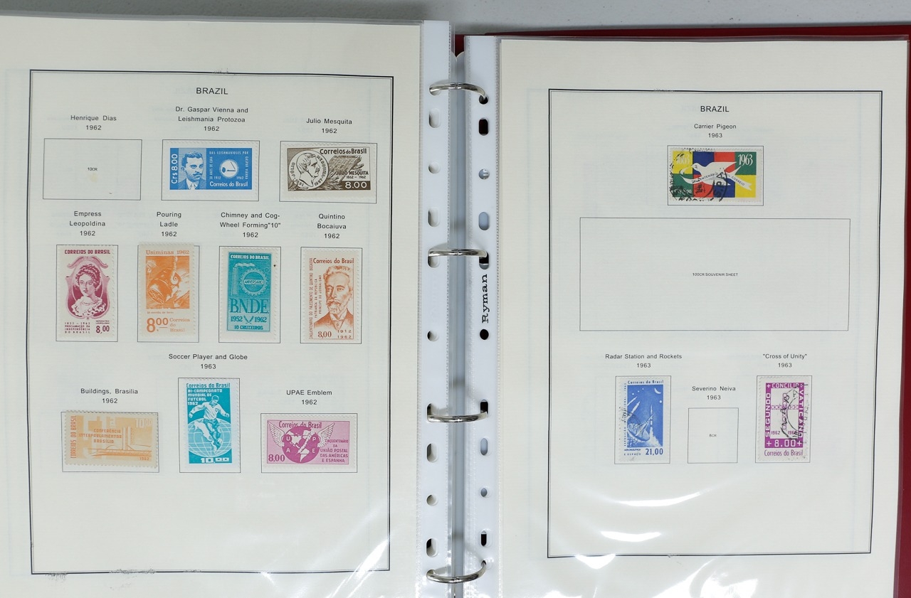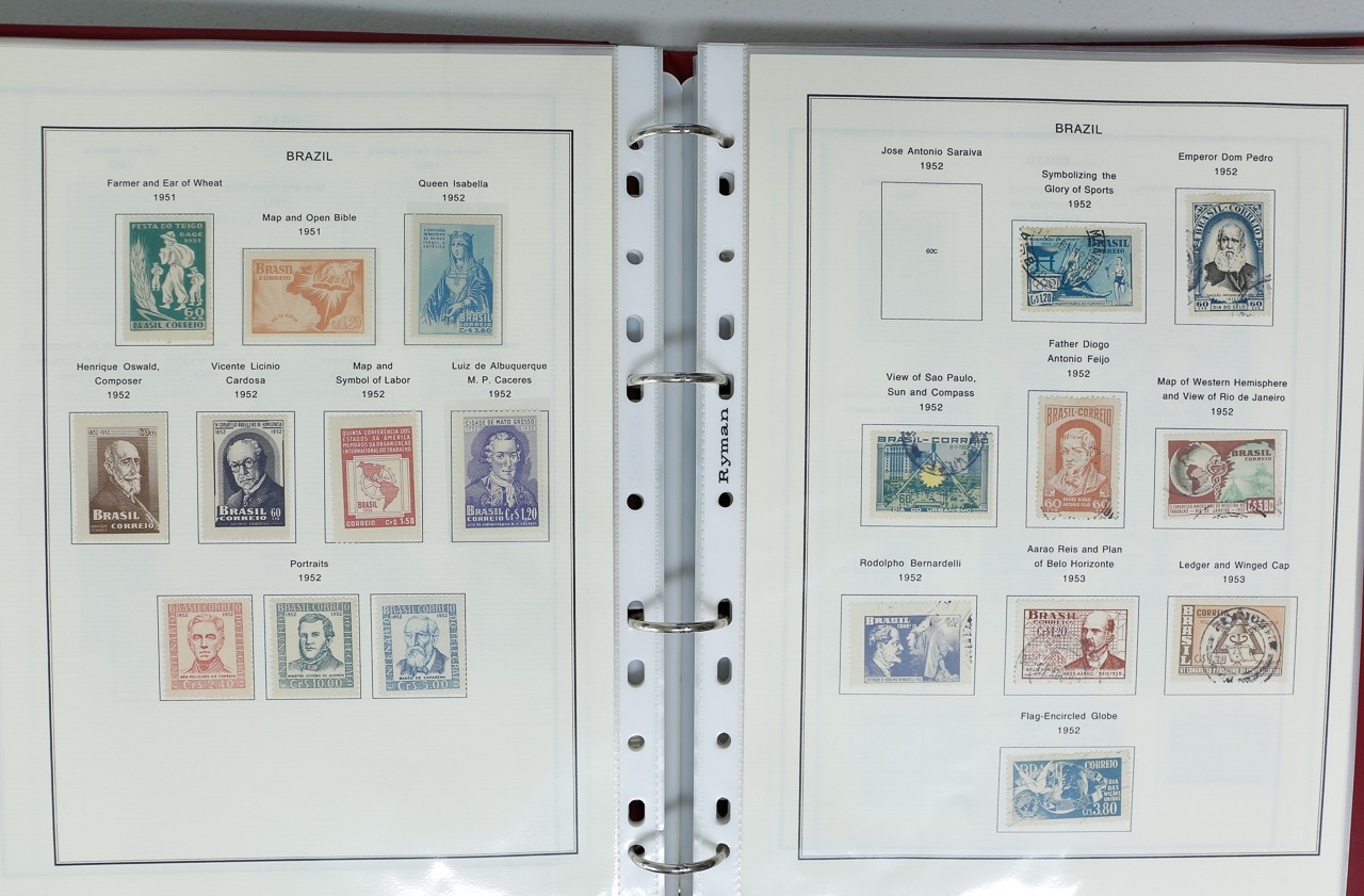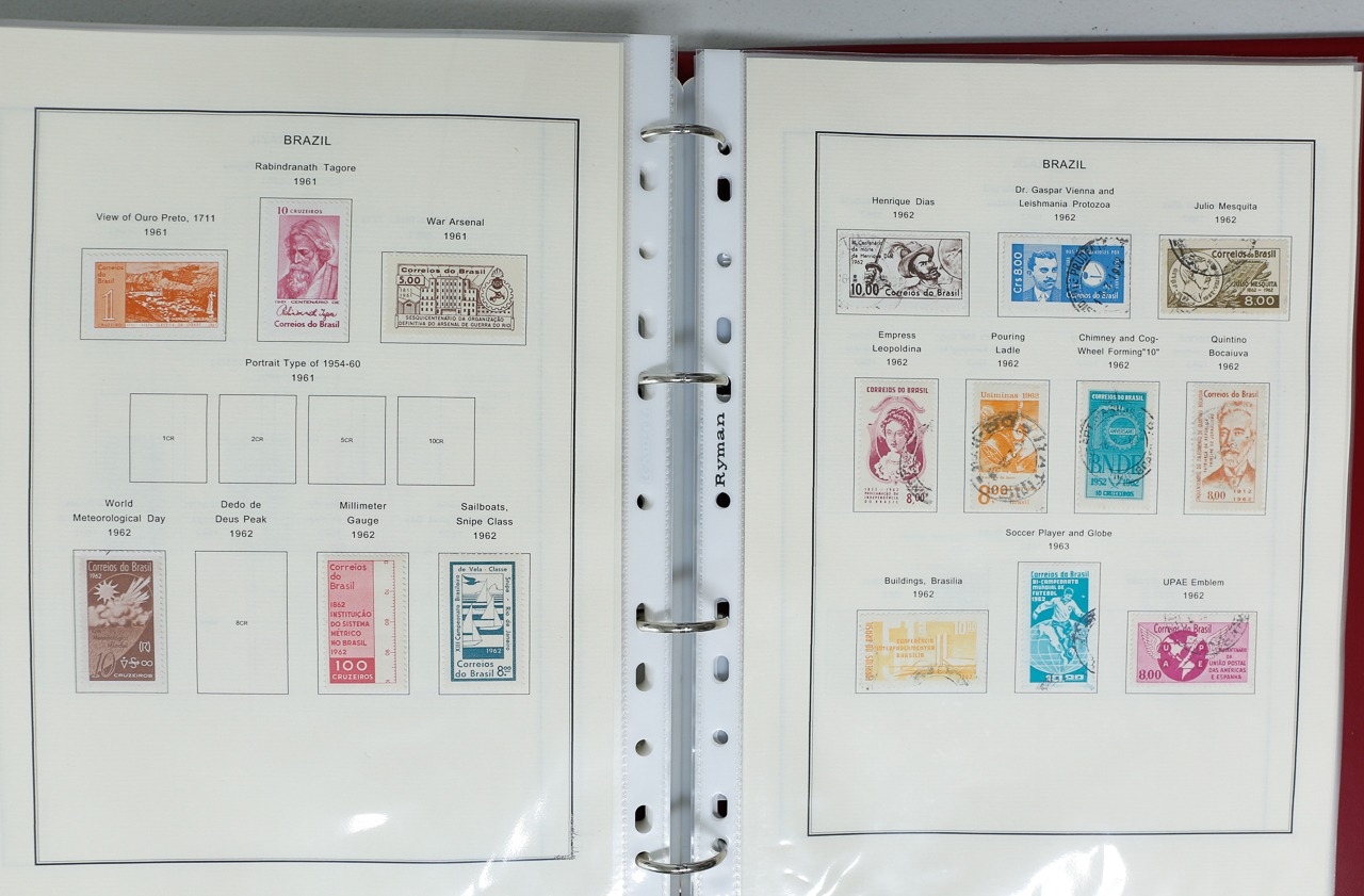 Misc. Lots & Collections BRAZIL 1843 to 1972 mint & used incl. sets/part-sets, Air mail, MS etc with some gaps on printed pages in three albums plus a ring binders with small multiples (2) on a couple of stock pages plus used covers/postcards (approx. 20 items) (Ref: 00288/12)