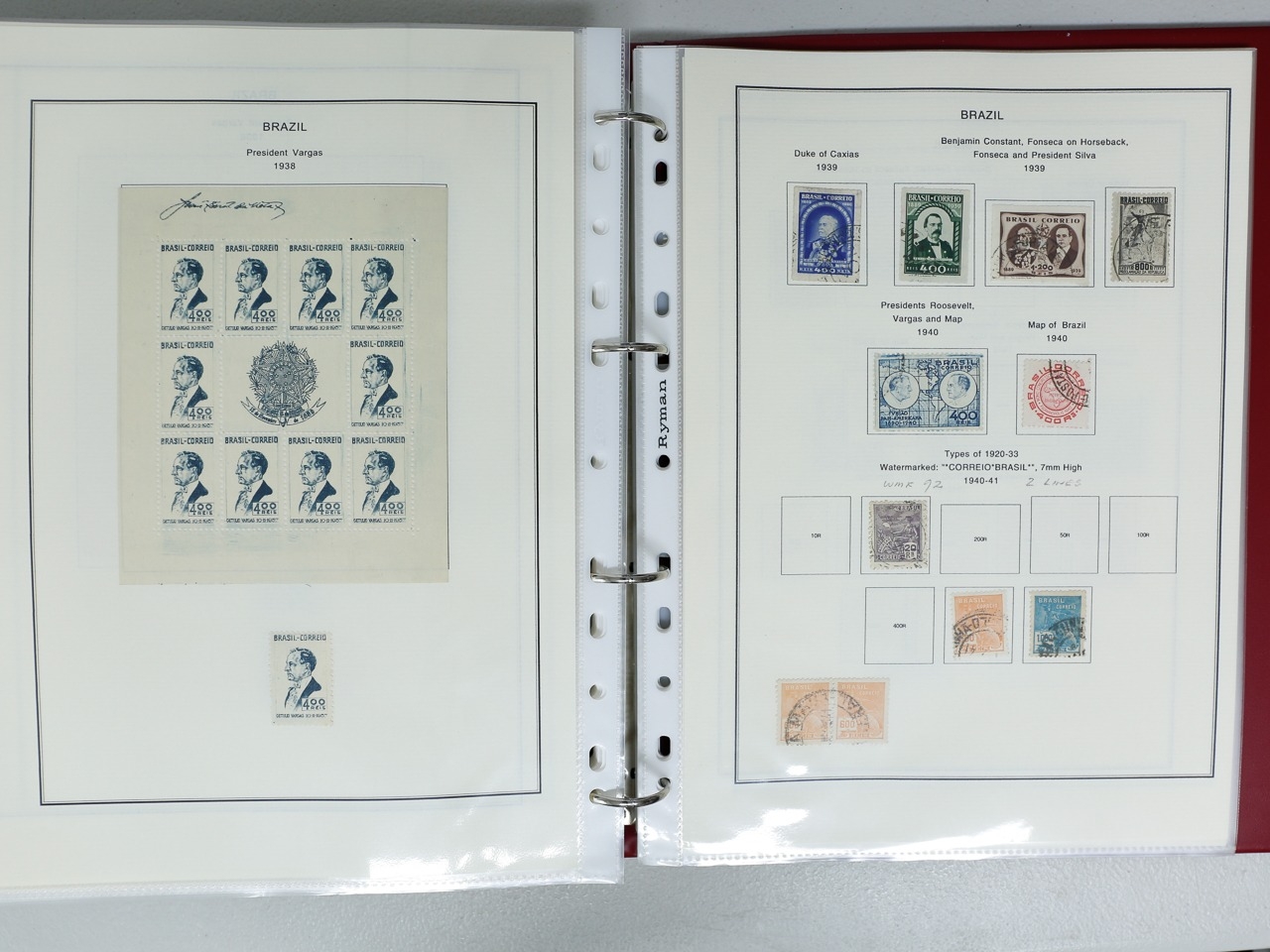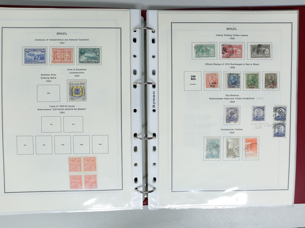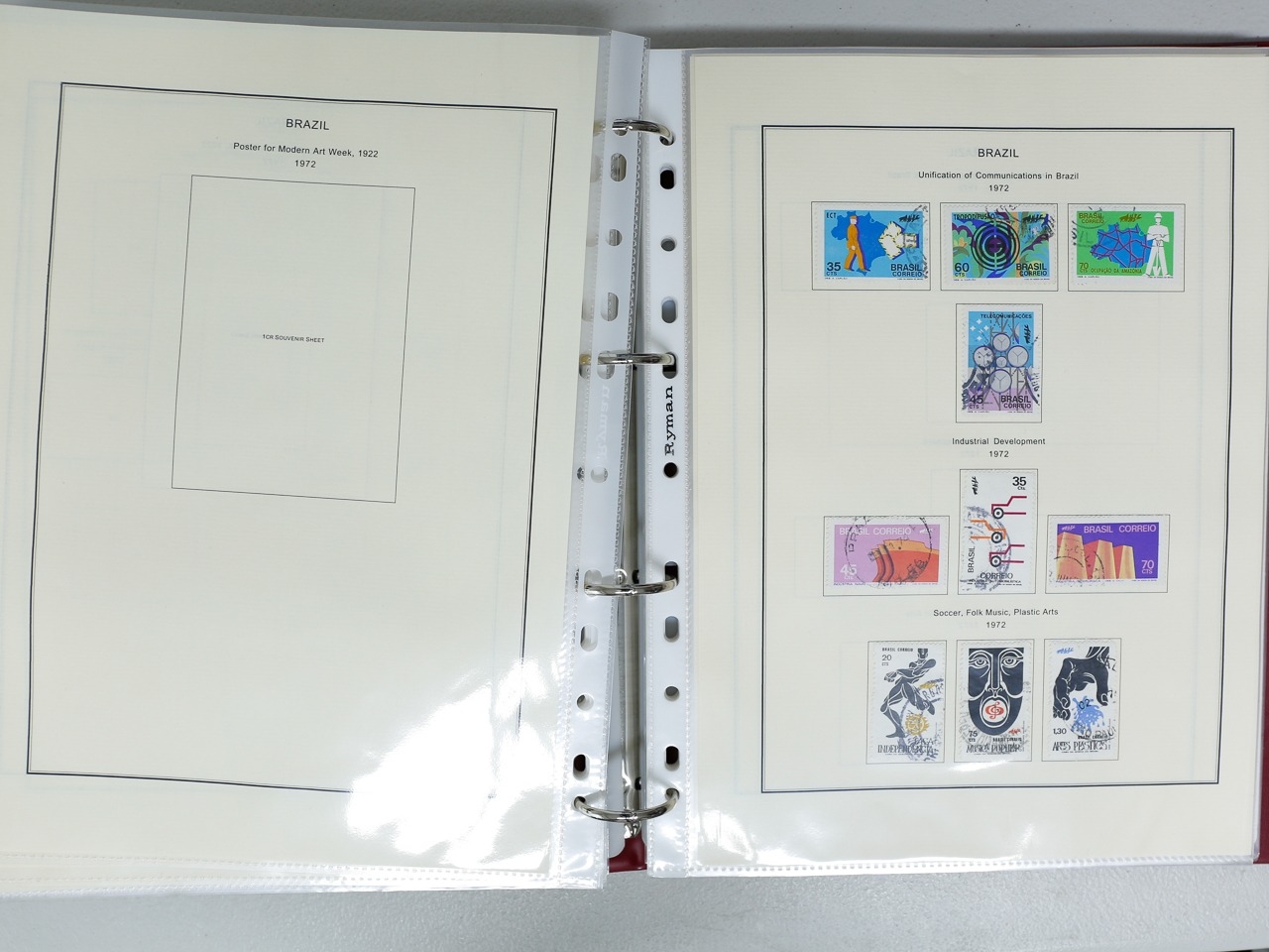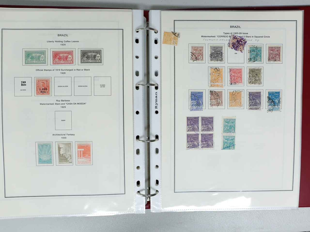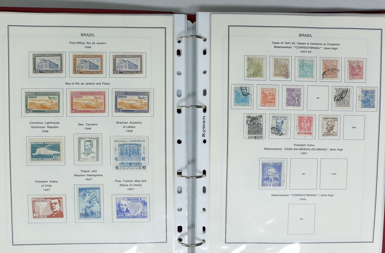 Misc. Lots & Collections BRAZIL 1843 to 1972 mint & used incl. sets/part-sets, Air mail, MS etc with some gaps on printed pages in three albums plus a ring binders with small multiples (2) on a couple of stock pages plus used covers/postcards (approx. 20 items) (Ref: 00288/12)