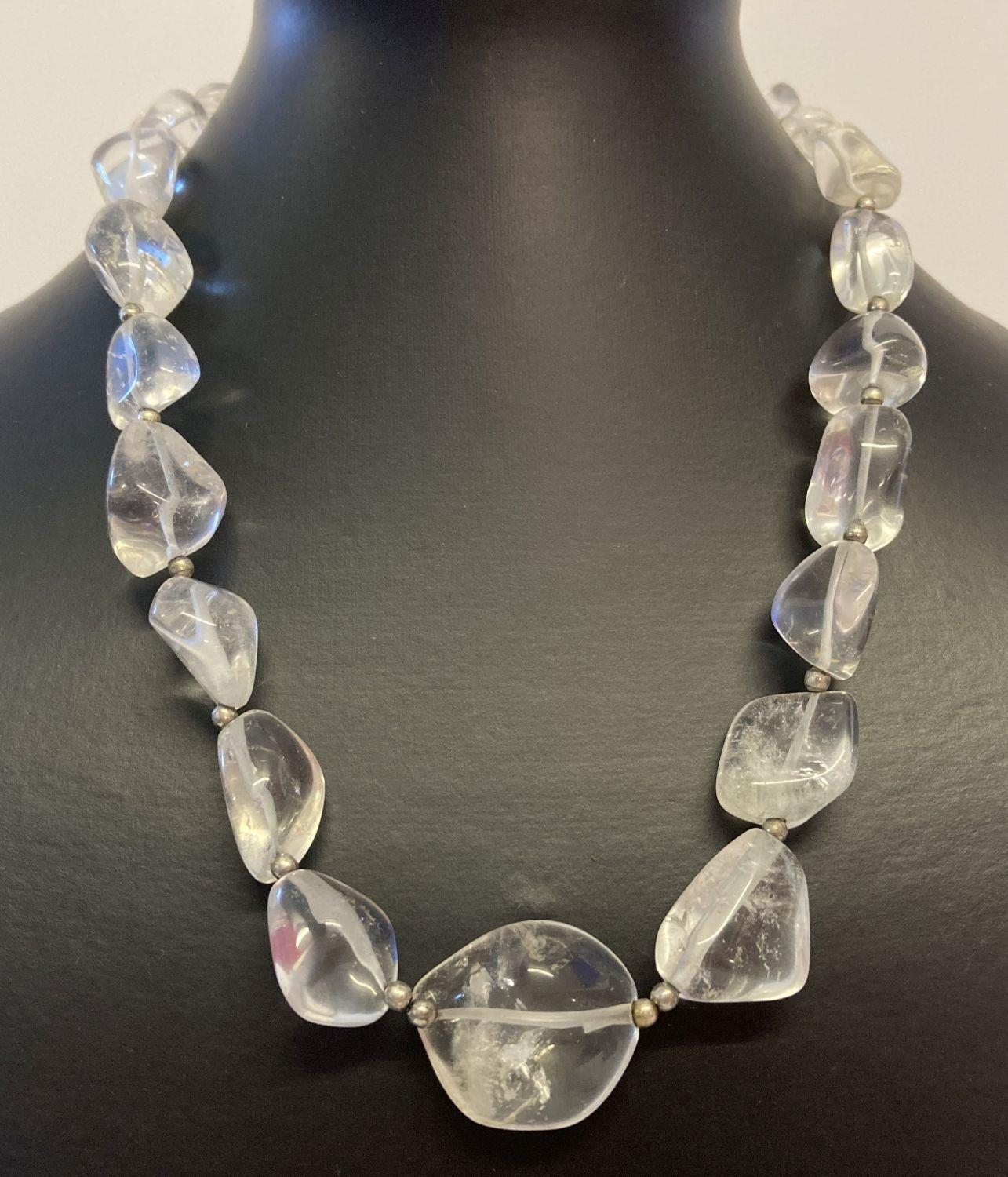 A rock crystal irregular shaped graduating bead necklace with white metal spring clasp. Total length approx. 18 inches.
