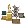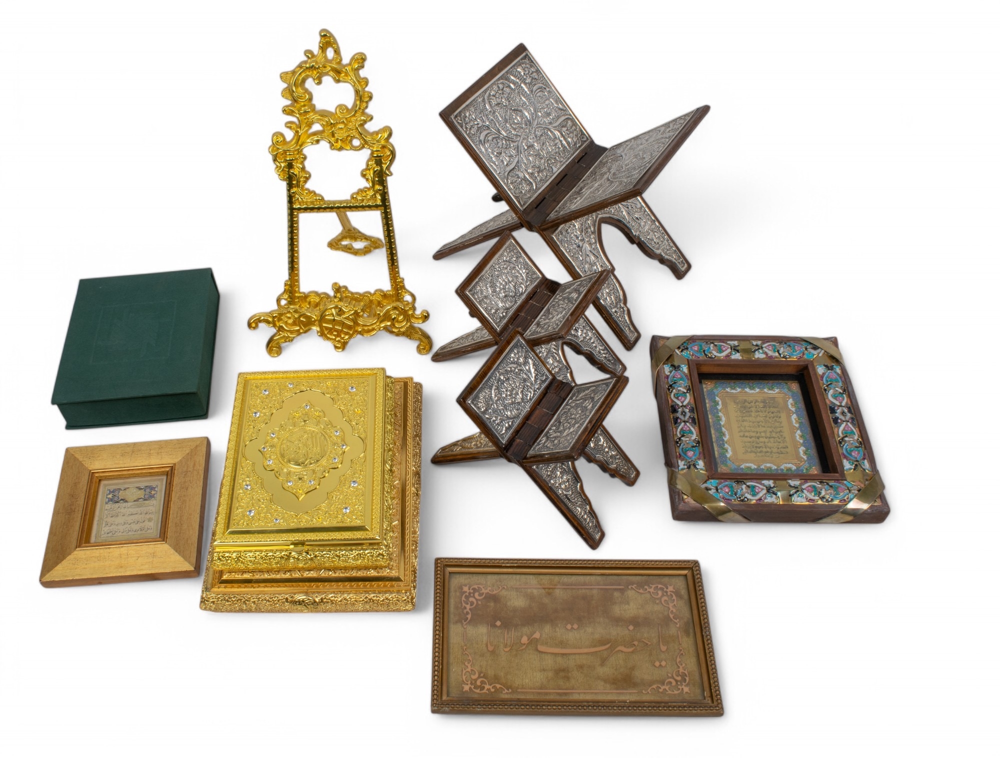 [d] A framed hand-painted metallic tile, inscribed with Arabic calligraphy. (Tile) 5.75 in. (H) x 4.75 in. (W)