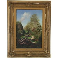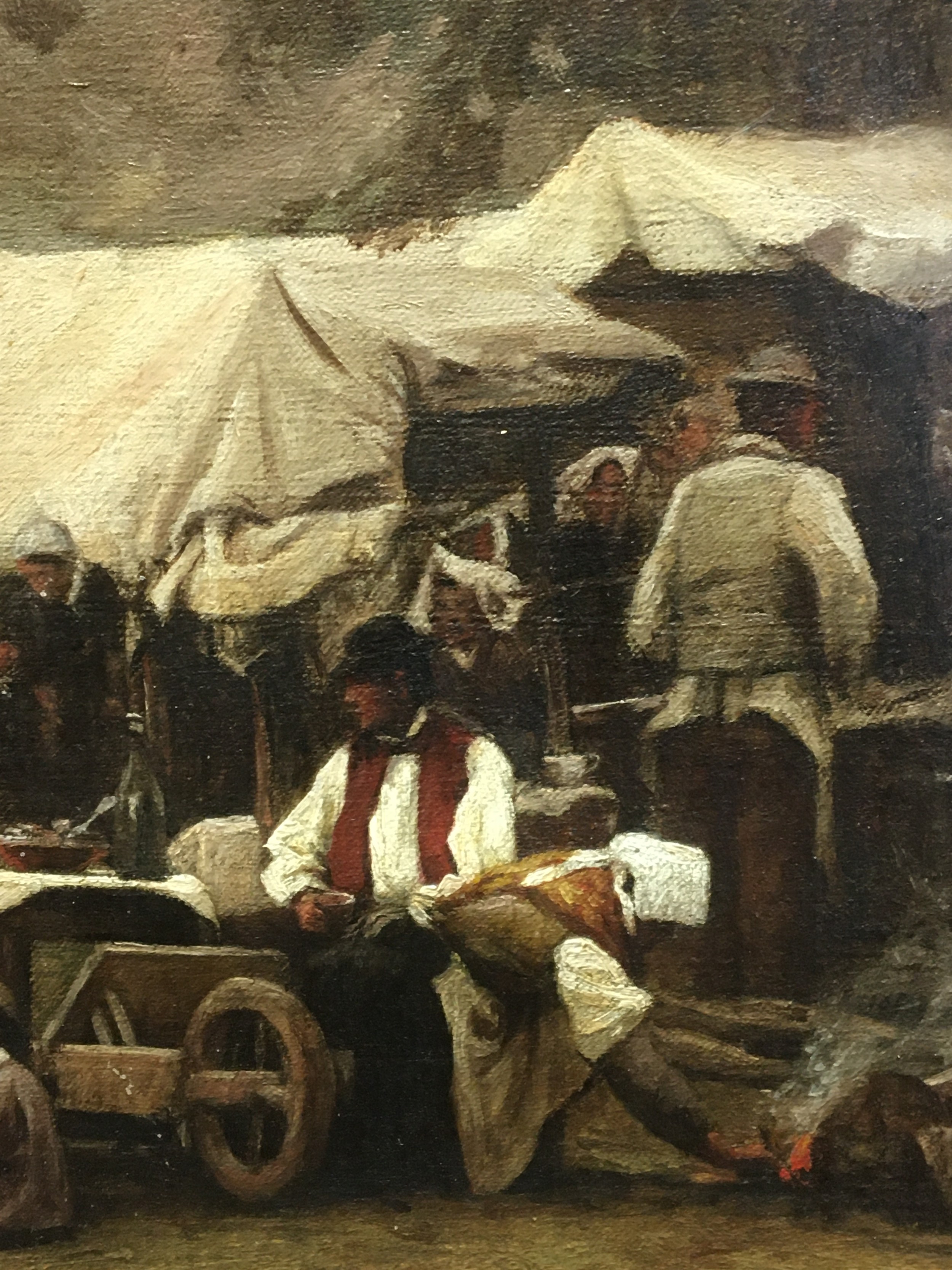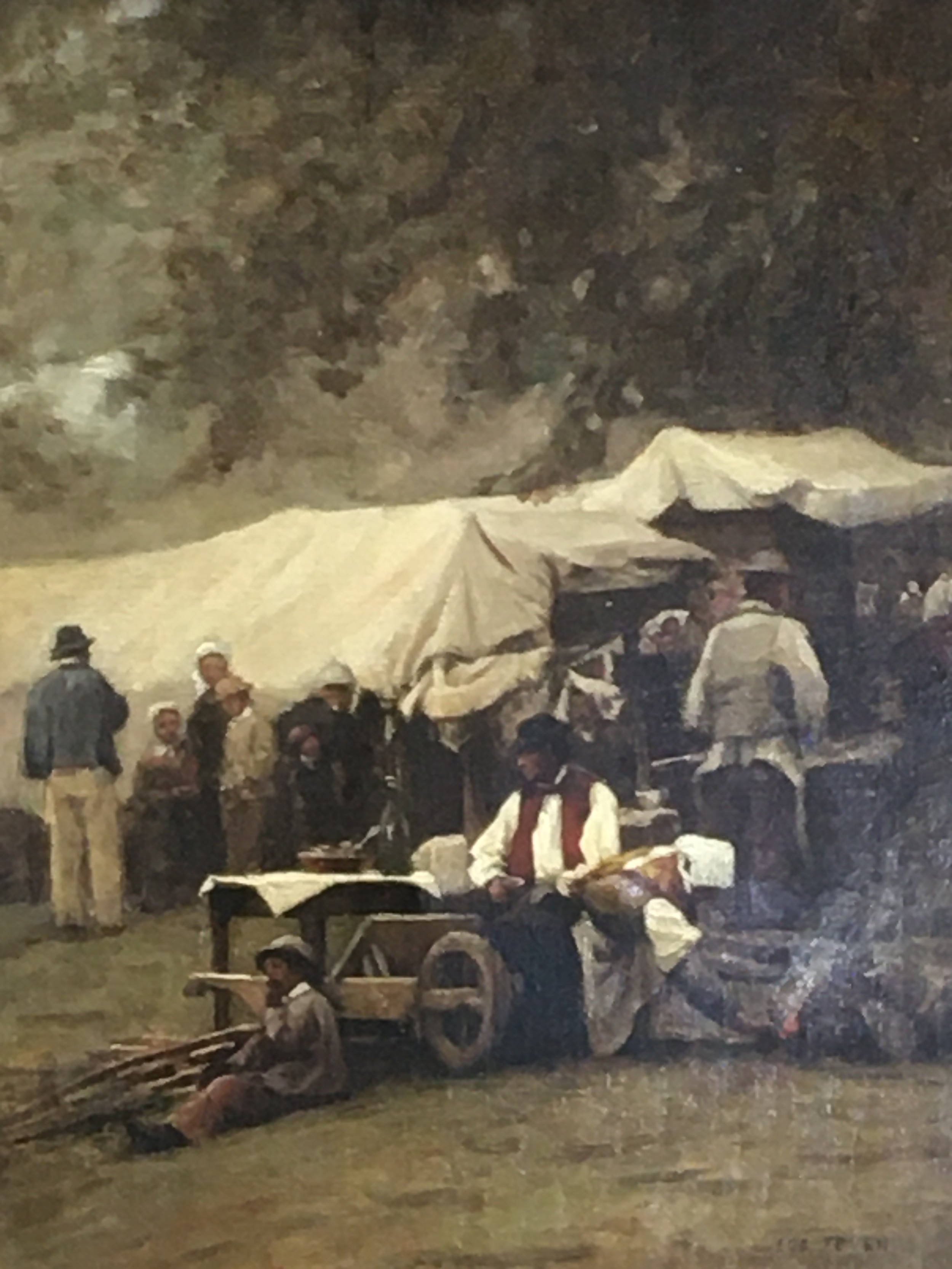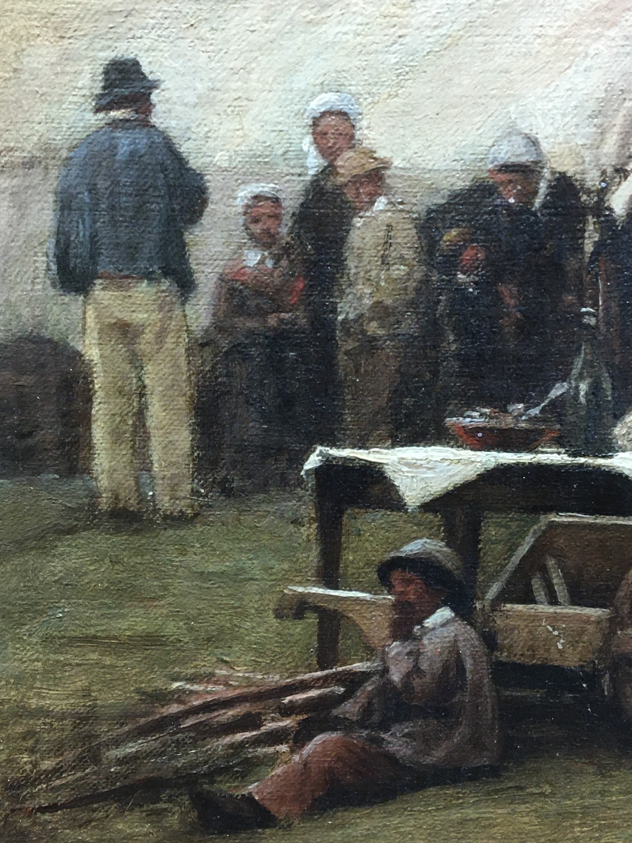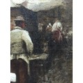 Born 1815-1908 Original Oil on Canvas Circa 1870 Signed Lower R/H "Villager" a Rural French Village Fete Scene.
