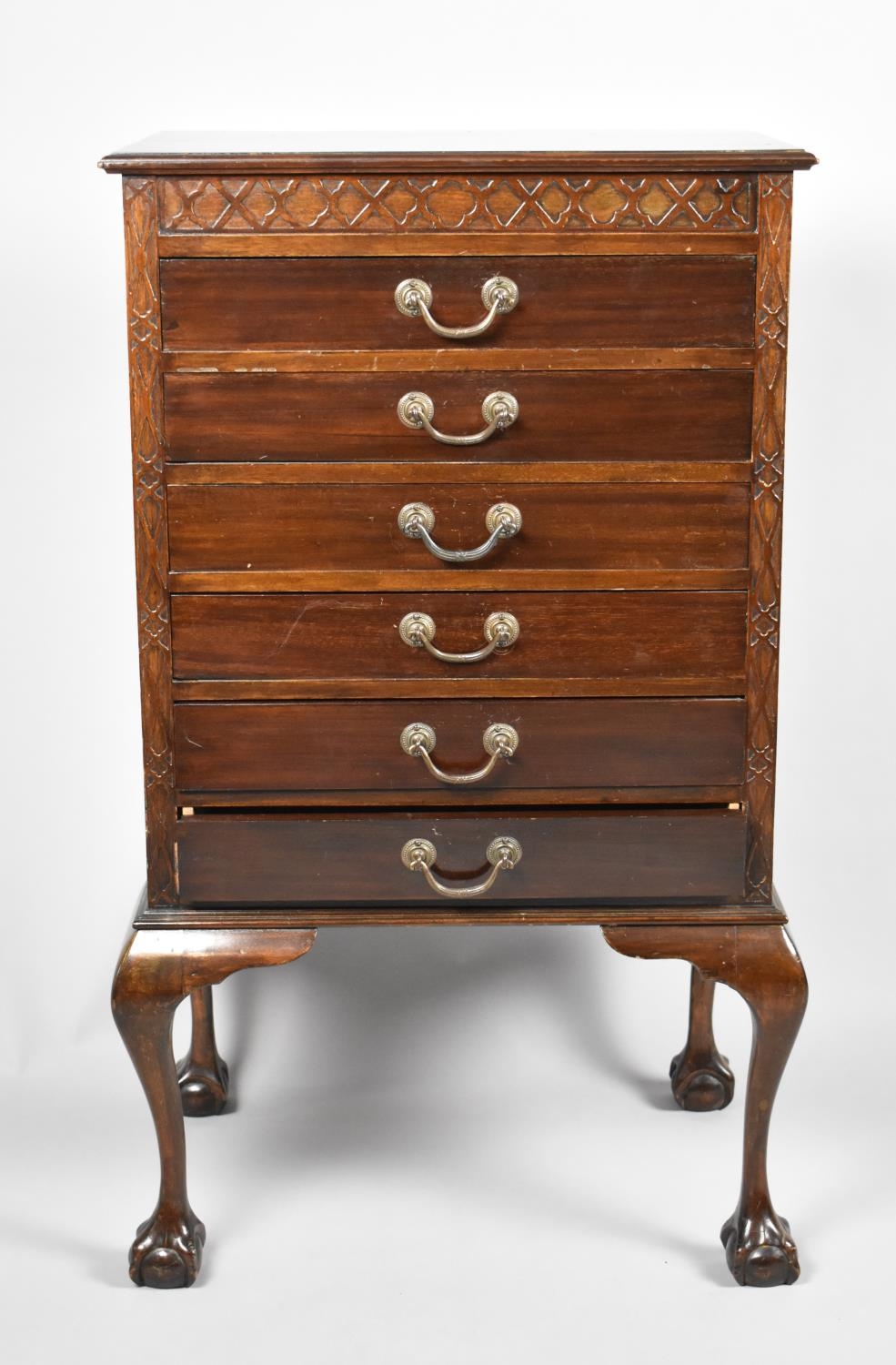 An Edwardian Mahogany Six Drawer Music Chest on Short Cabriole Supports with Claw and Ball Feet, 53cm x 37cm x 91.5cm high