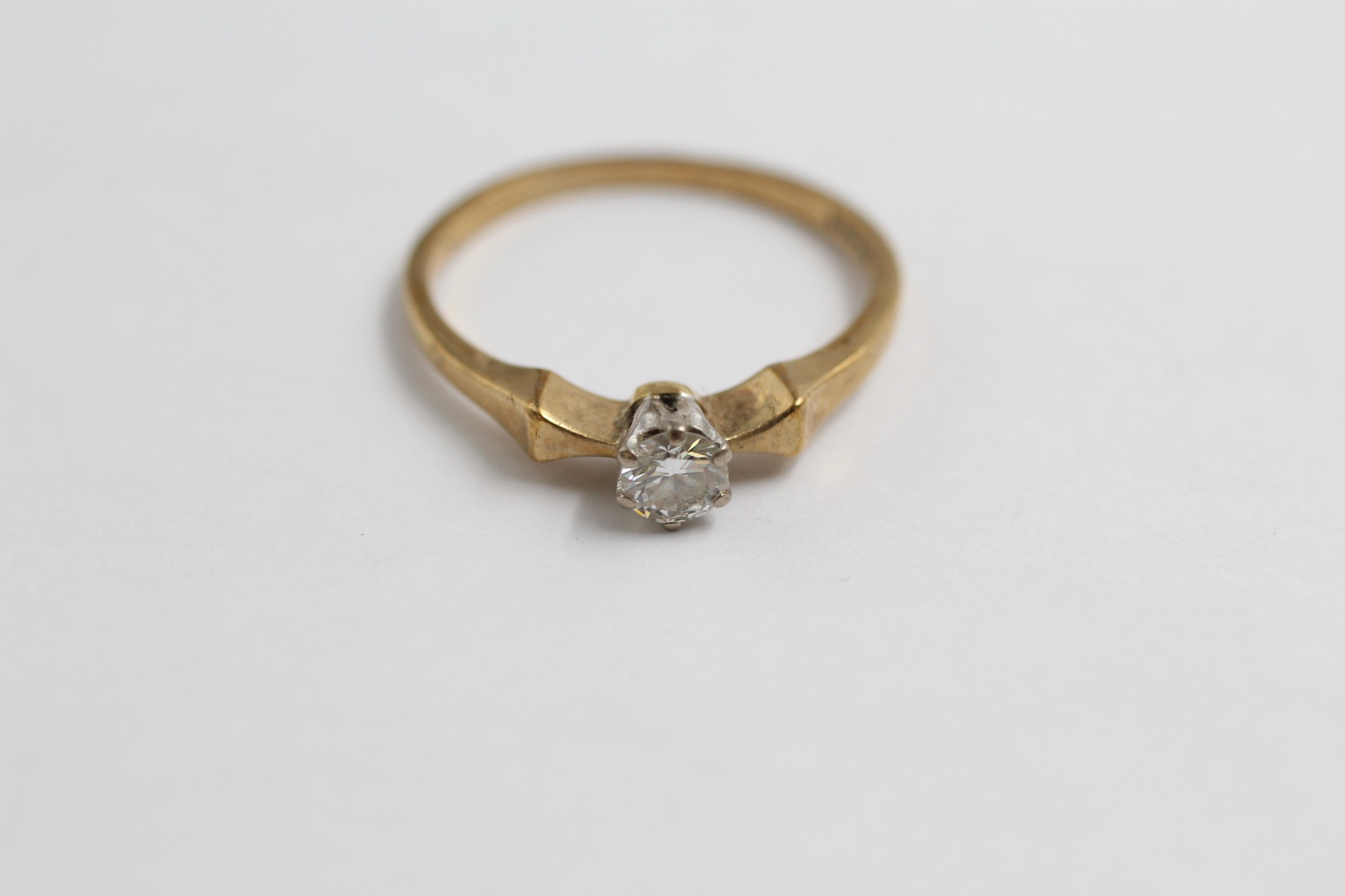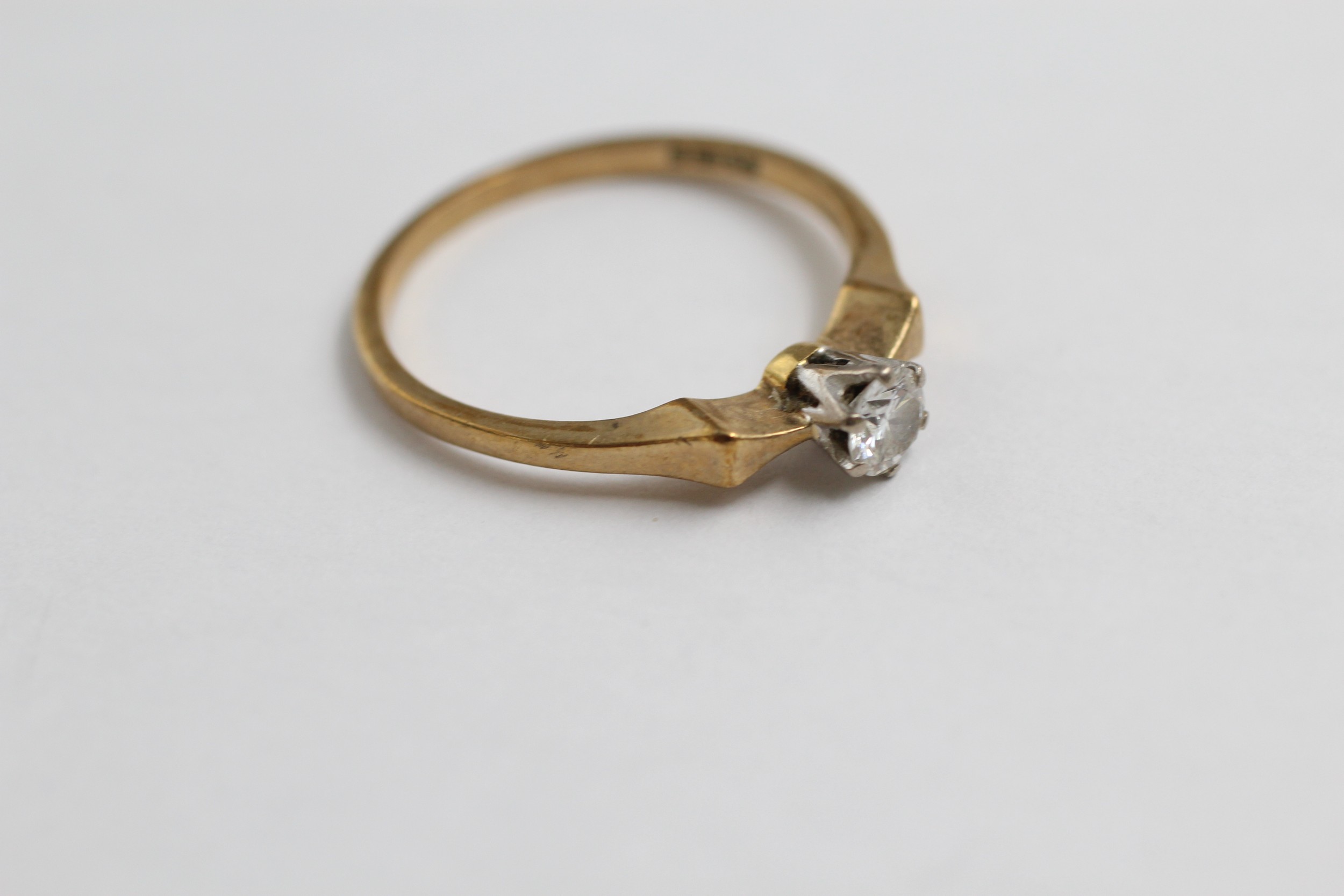 9ct Gold Round Brilliant Cut Diamond Single Stone Ring (1.8g)- Size O