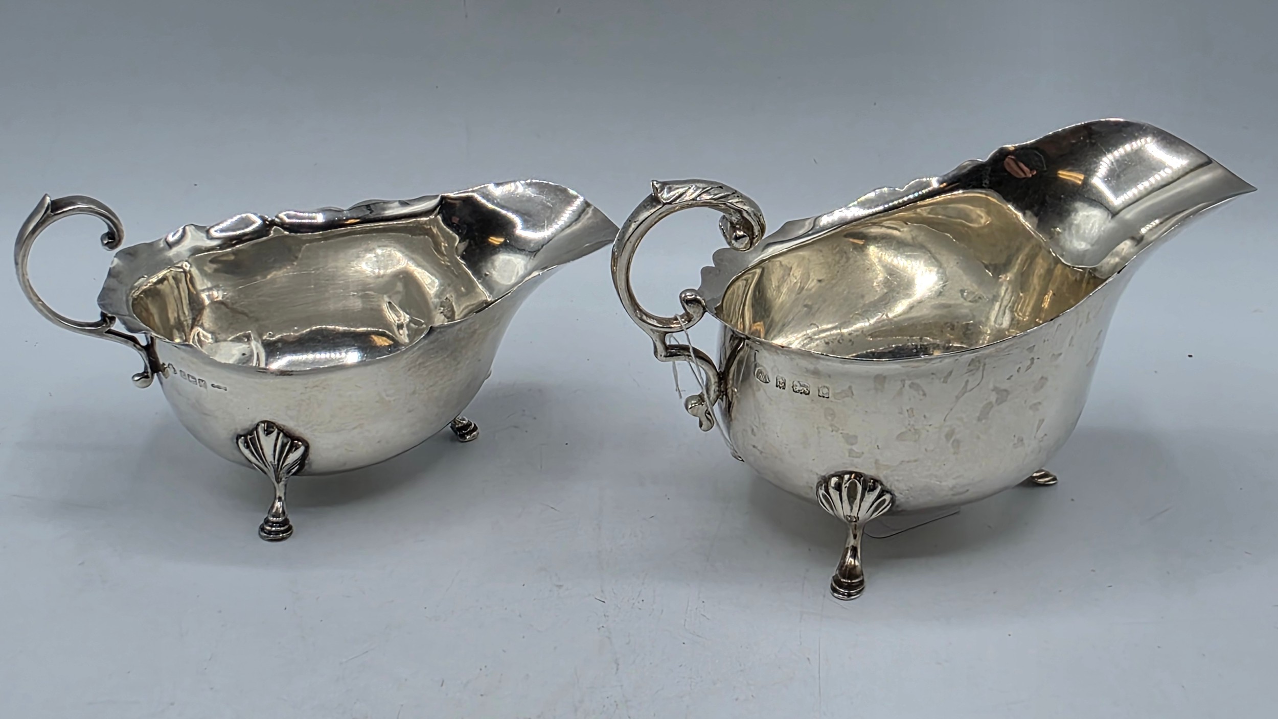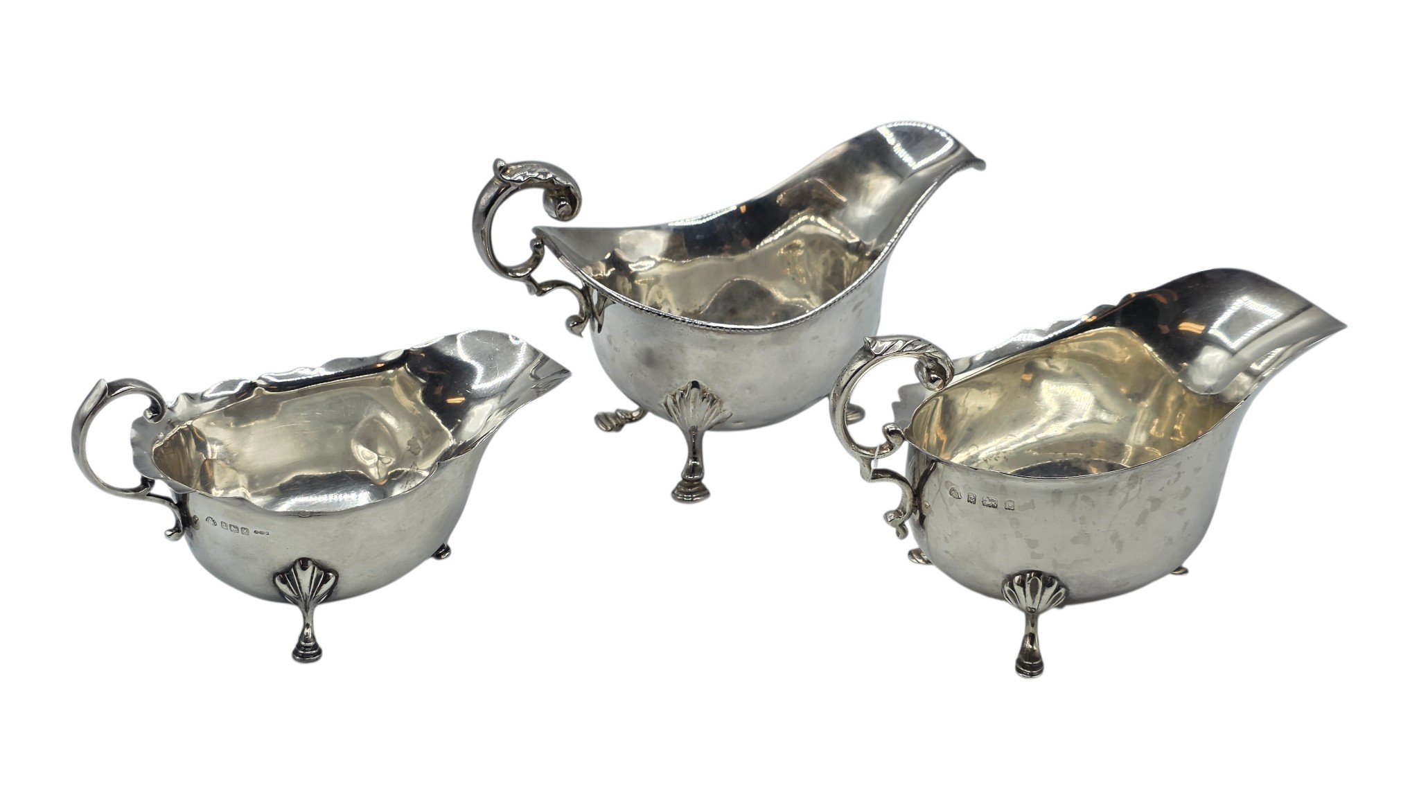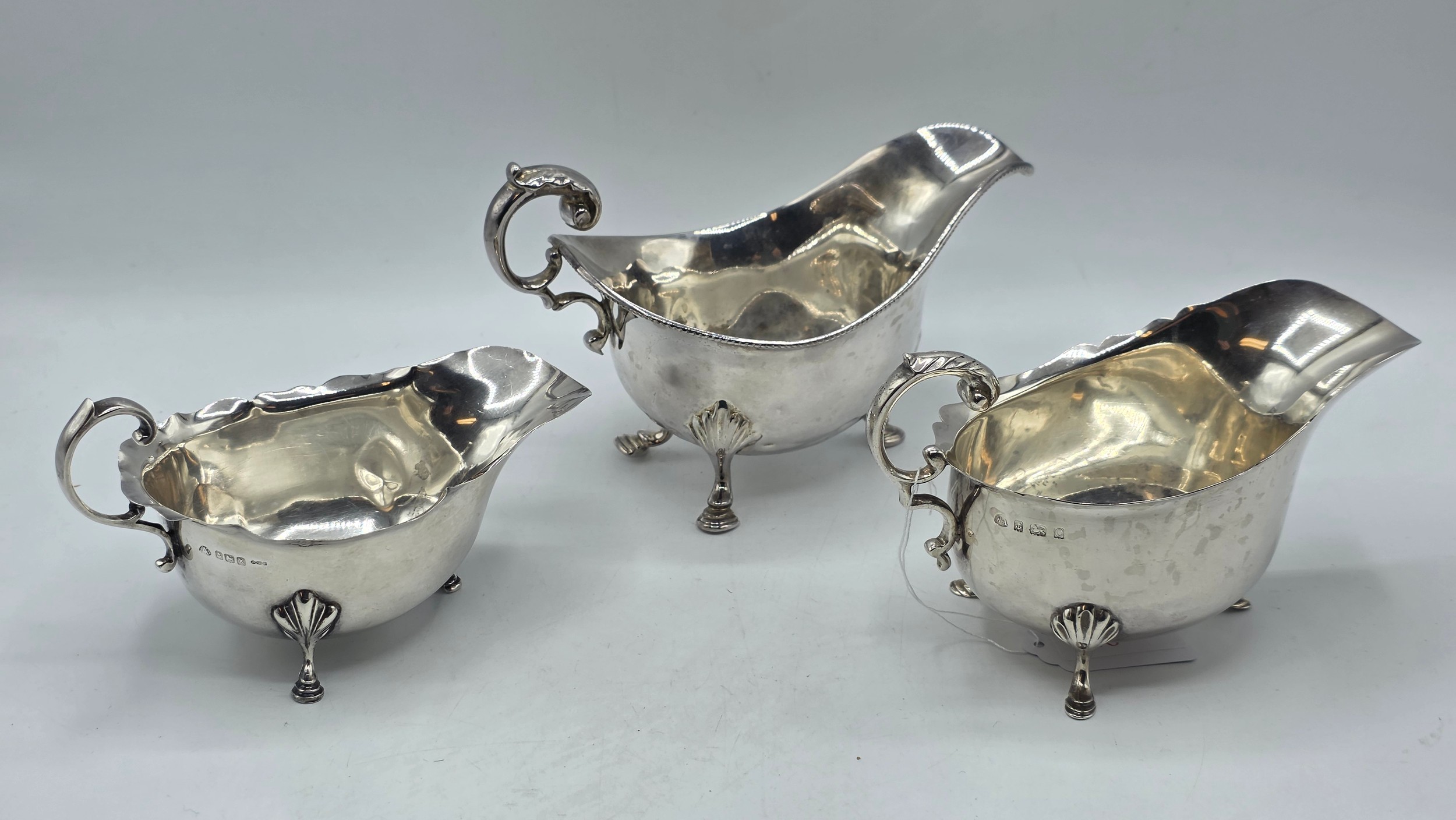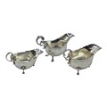 Three sterling silver sauce boats Various dates and makers. 469g.
