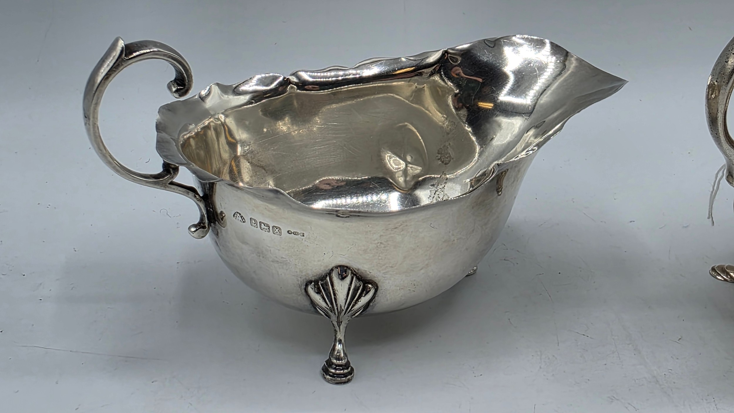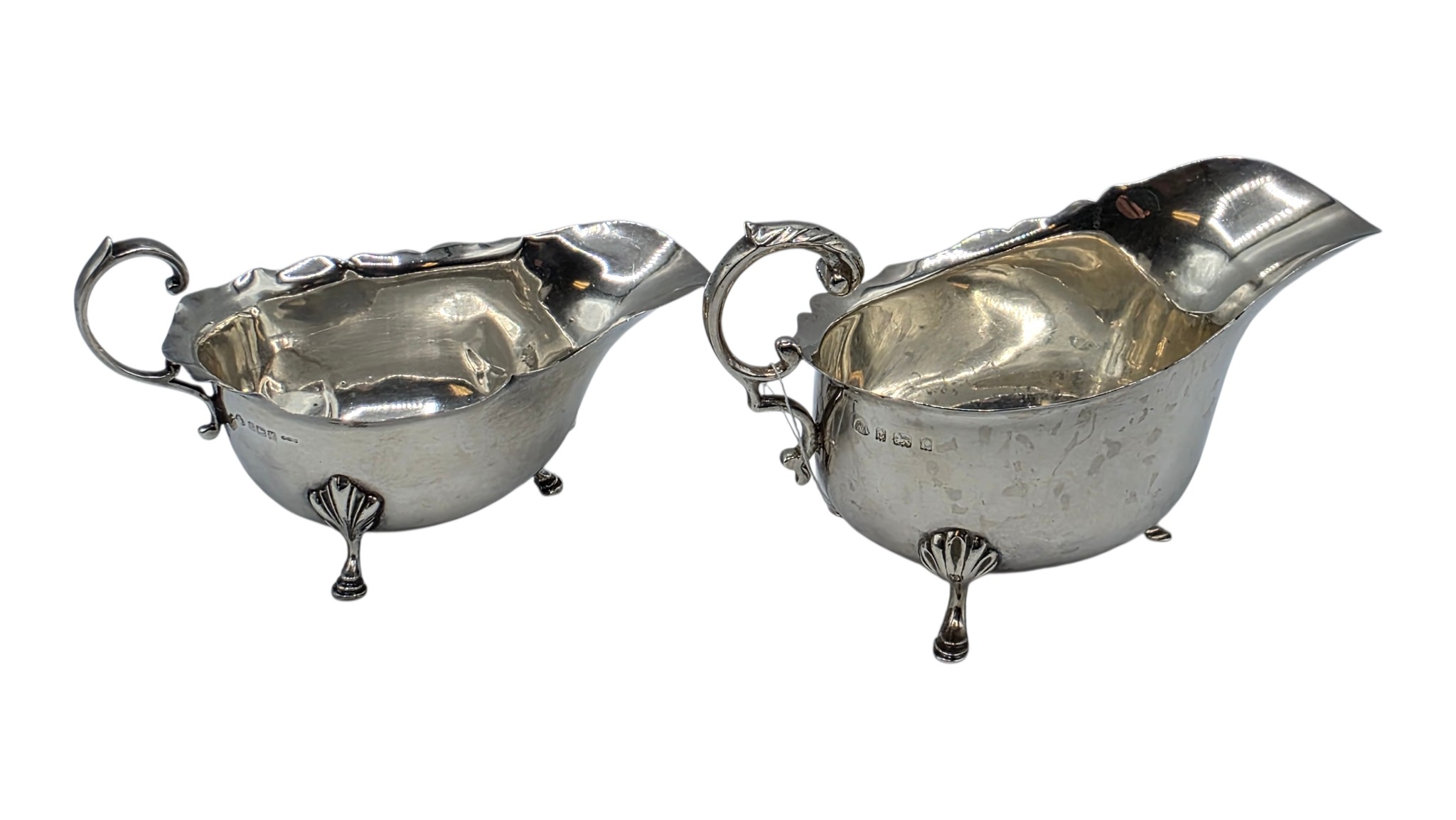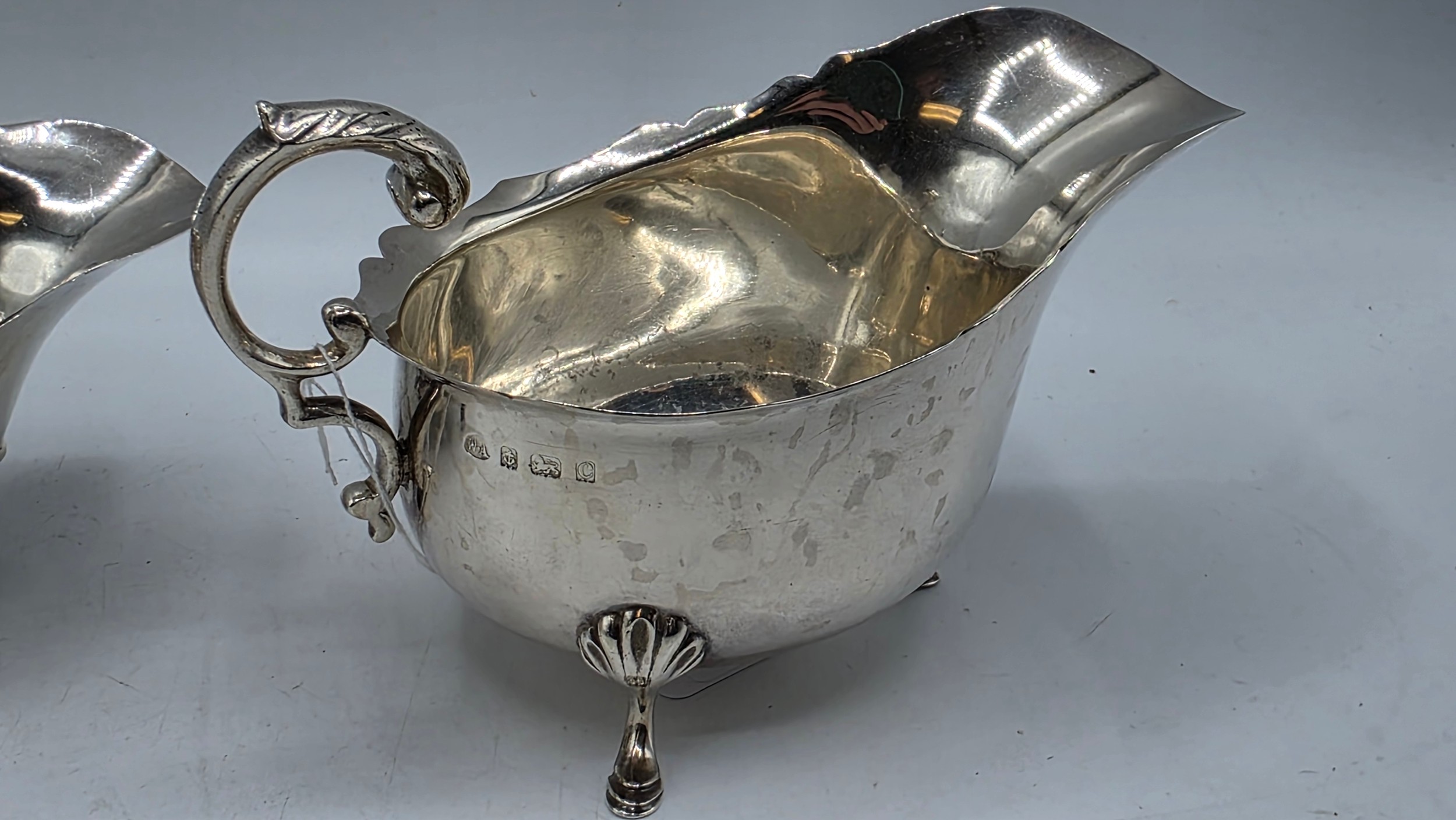 Three sterling silver sauce boats Various dates and makers. 469g.