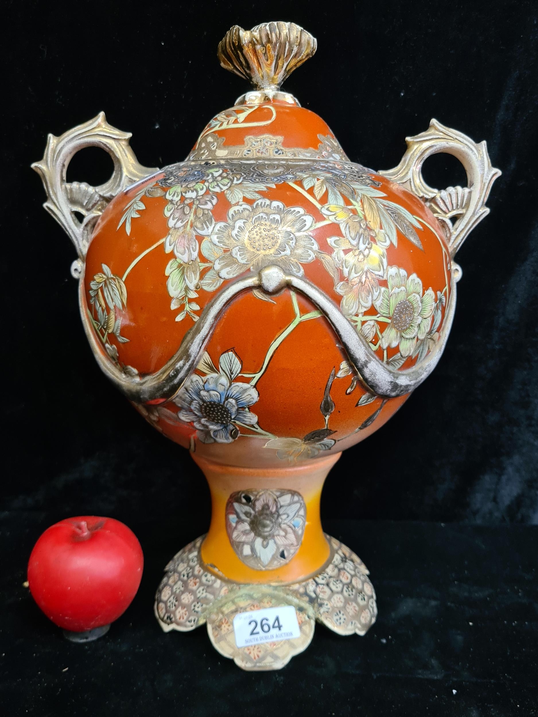 Star Lot : A stunning antique large lidded Japanese porcelain Satsuma vase. Some repairs to foot but does not take aways from this super piece.
